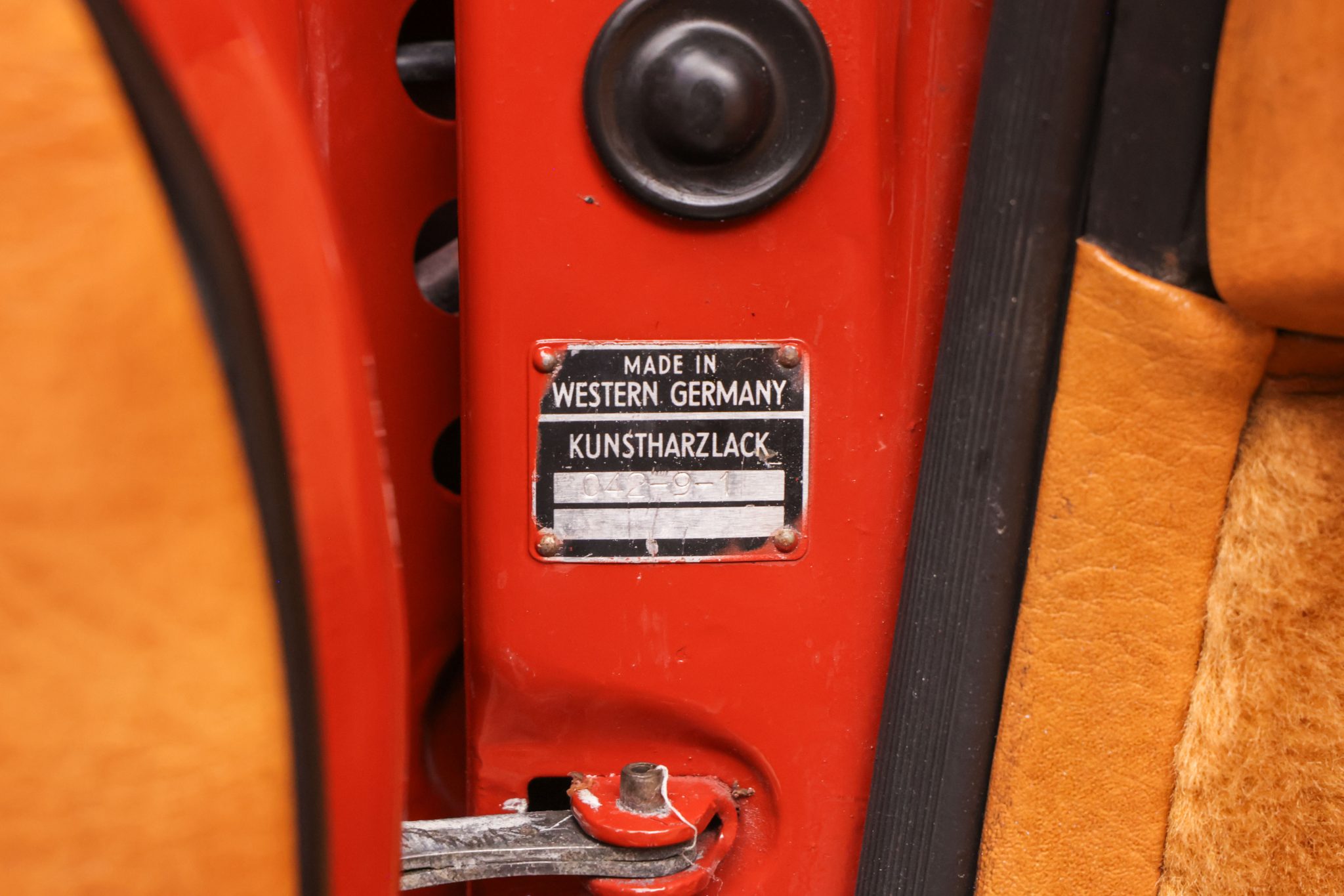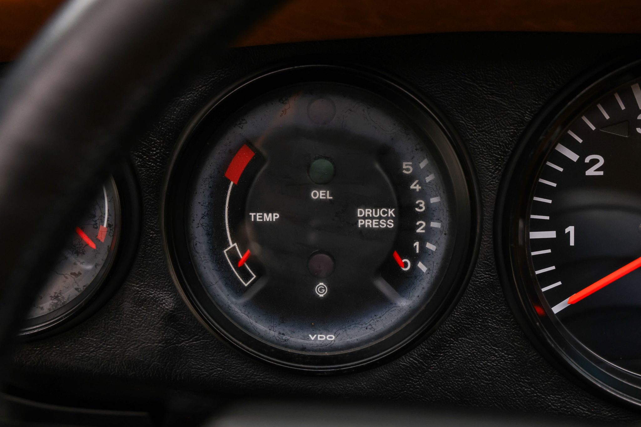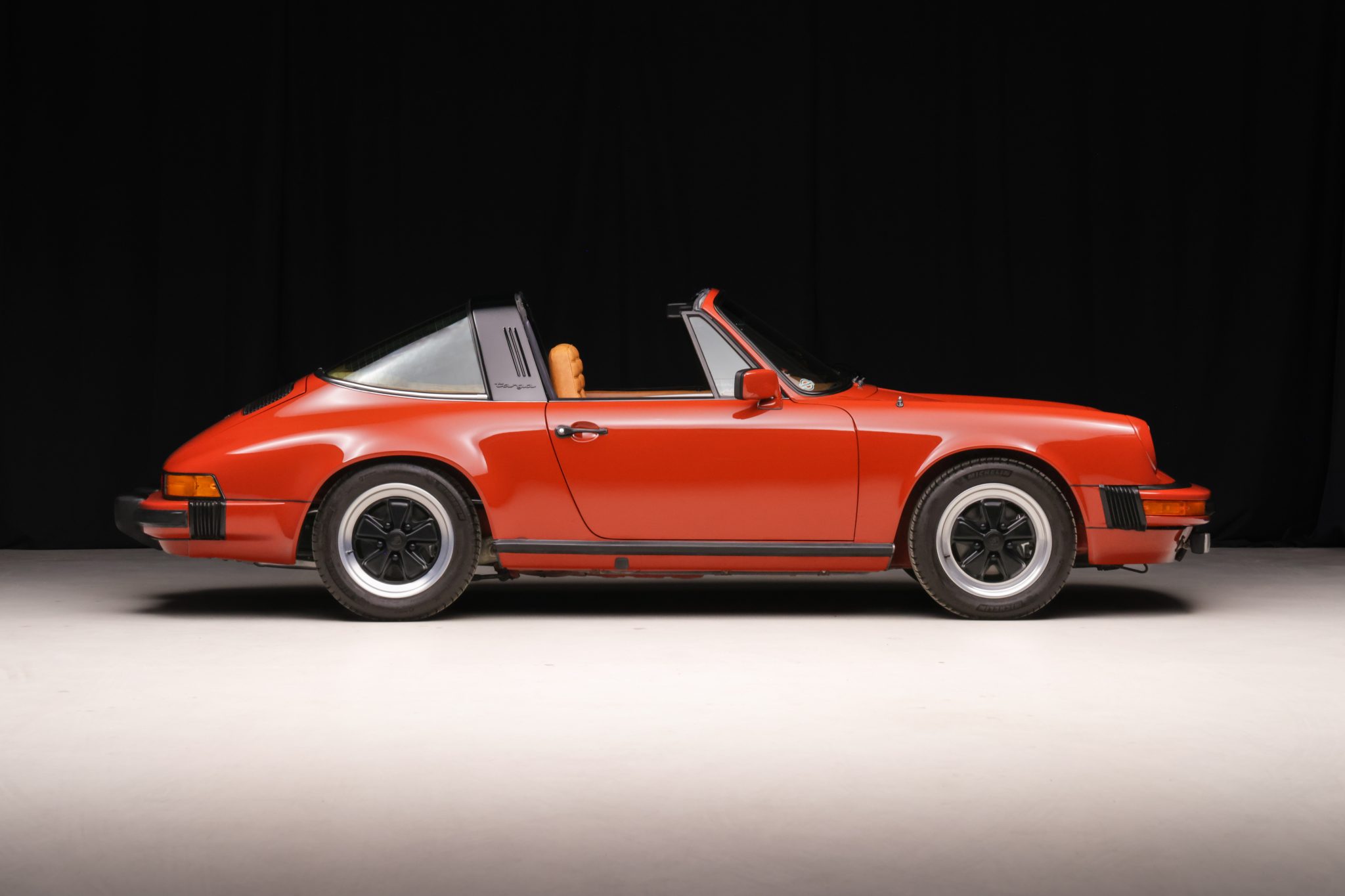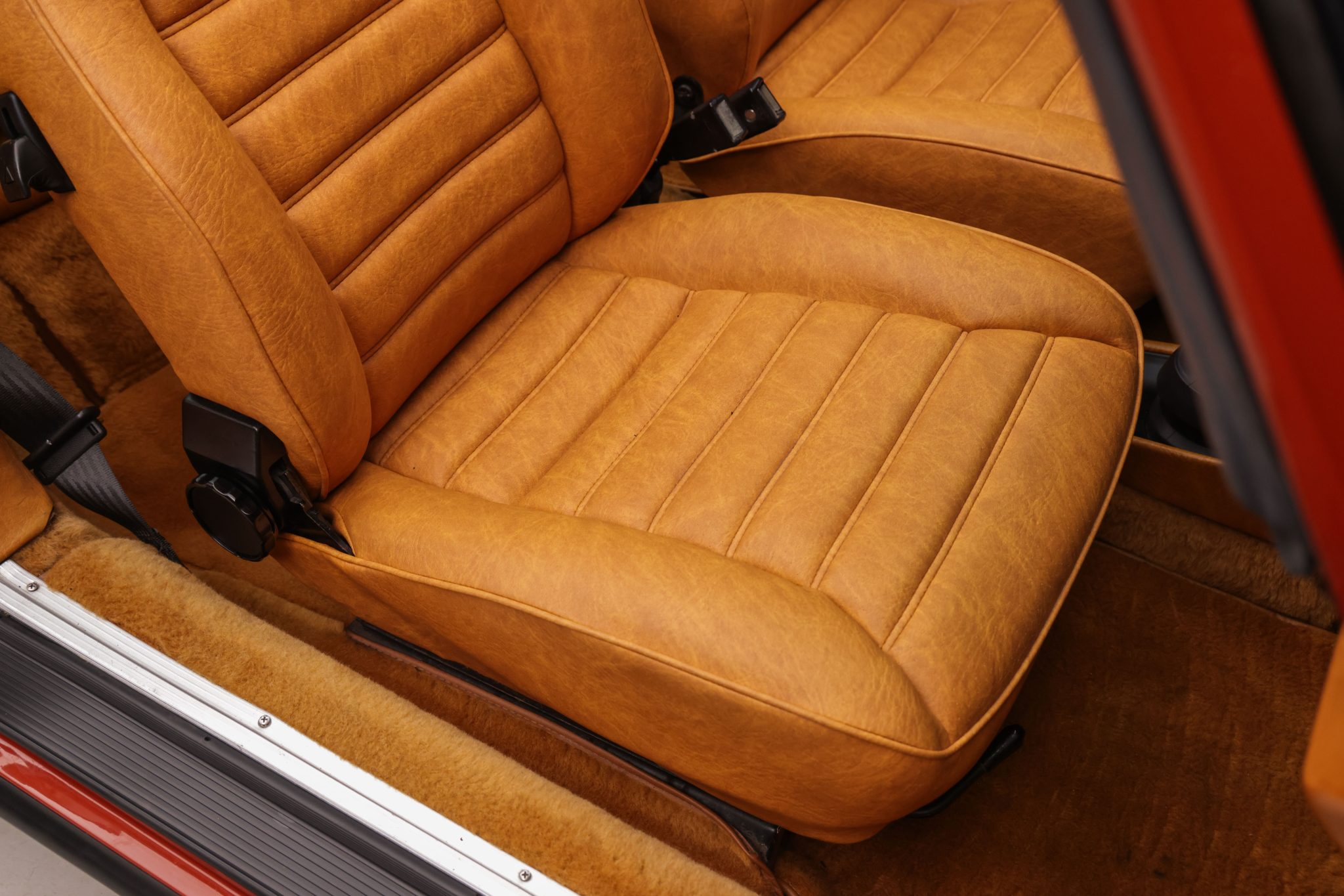 This 1978 Porsche 911SC Targa is finished in paint-to-sample Peru Red over Cork leatherette upholstery and is powered by a 3.0-liter flat-six paired with a five-speed manual transaxle. It features a removable roof panel, 16″ Fuchs wheels, fog lights, R134a-based air conditioning, and a cassette stereo. Subsequent work included installing replacement main bearings, resealing the engine, overhauling the brakes, performing lighting repairs, and replacing the exhaust, clutch disc, pressure plate, and several exterior and interior components