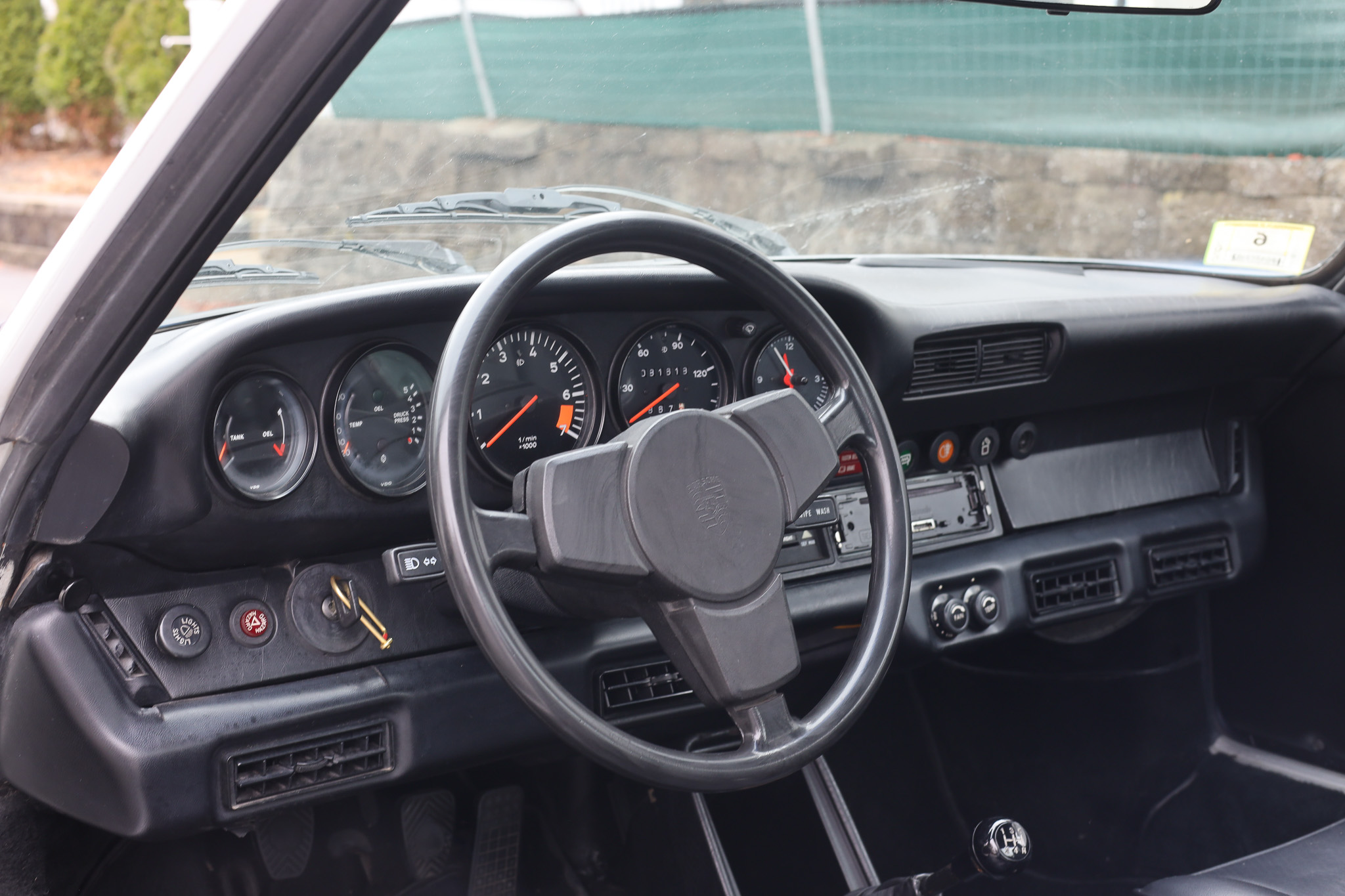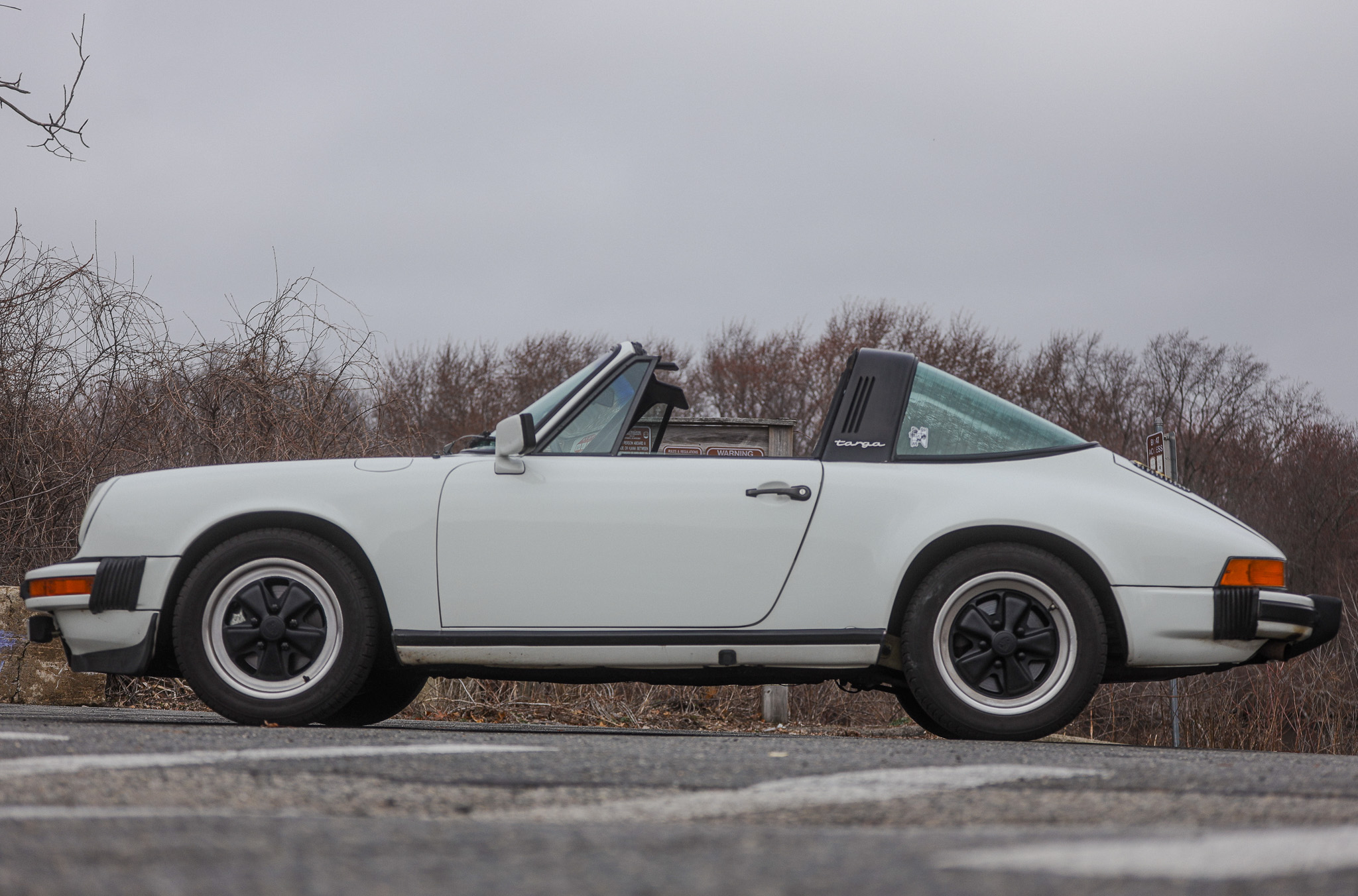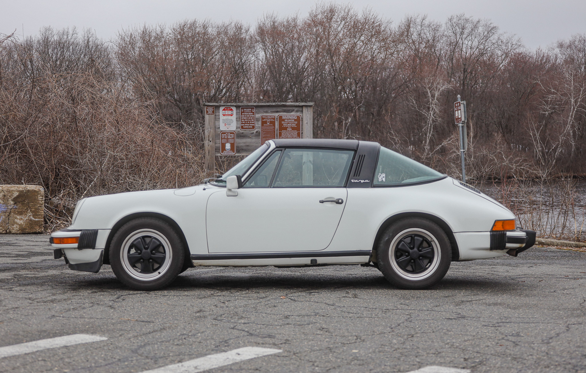 It is powered by a 3.0-liter flat-six paired with a five-speed manual transaxle and is finished in Grand Prix White over Black leather. Equipment includes 16″ Fuchs alloy wheels, a removable roof panel, fog lights, a rear window defroster, power windows, and RS-style door pulls.