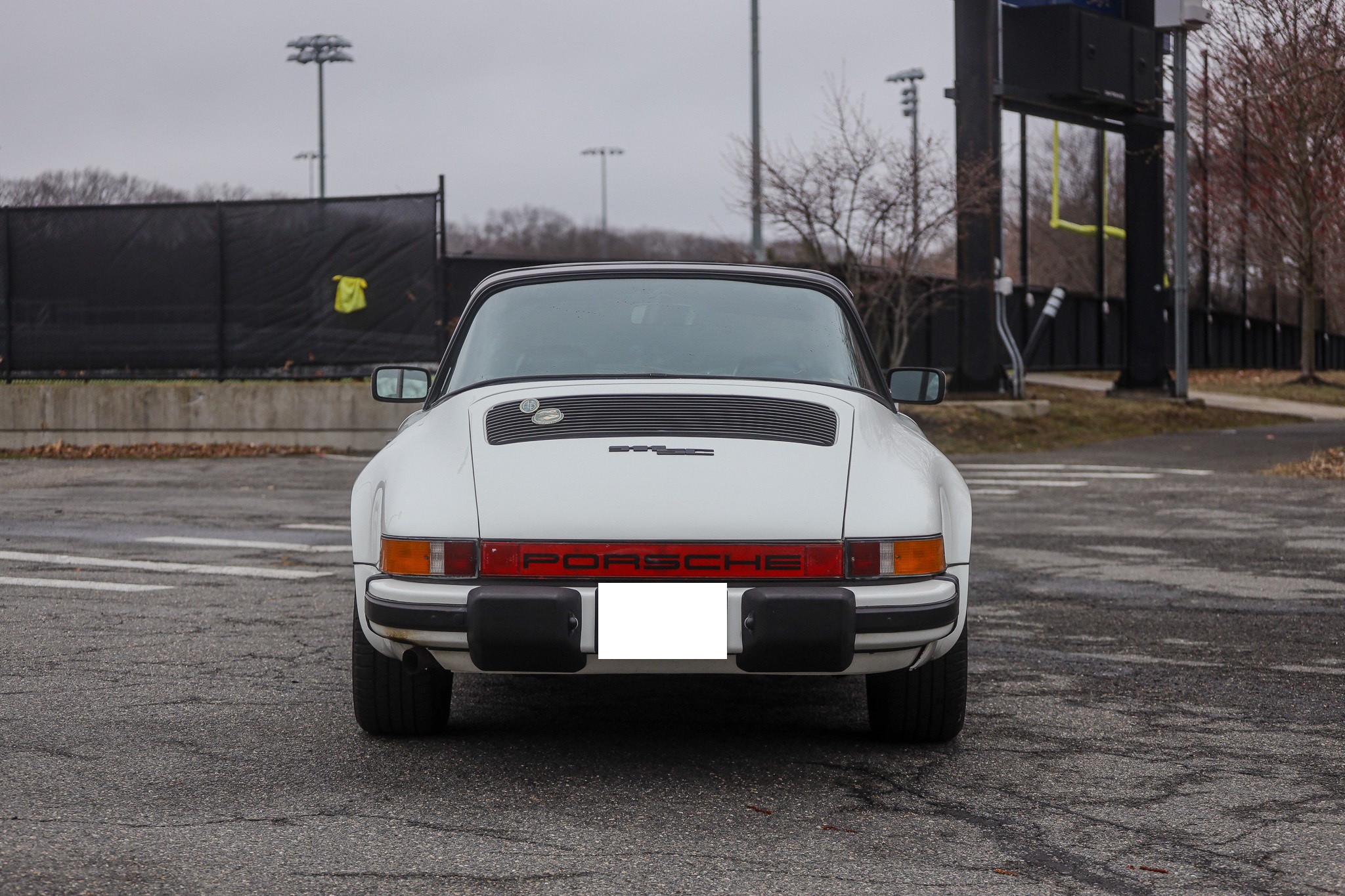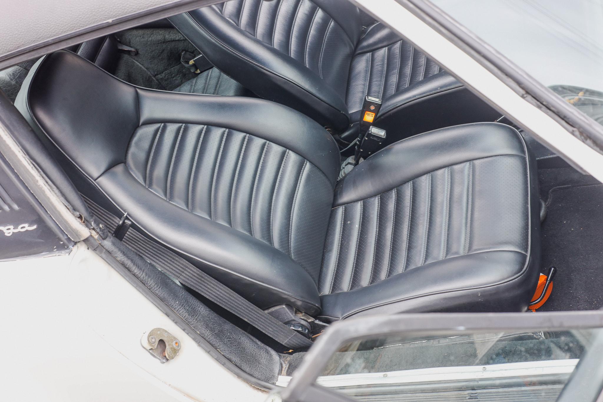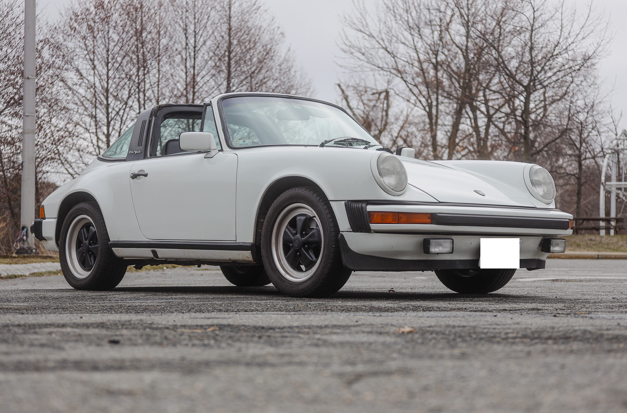 It is powered by a 3.0-liter flat-six paired with a five-speed manual transaxle and is finished in Grand Prix White over Black leather. Equipment includes 16″ Fuchs alloy wheels, a removable roof panel, fog lights, a rear window defroster, power windows, and RS-style door pulls.