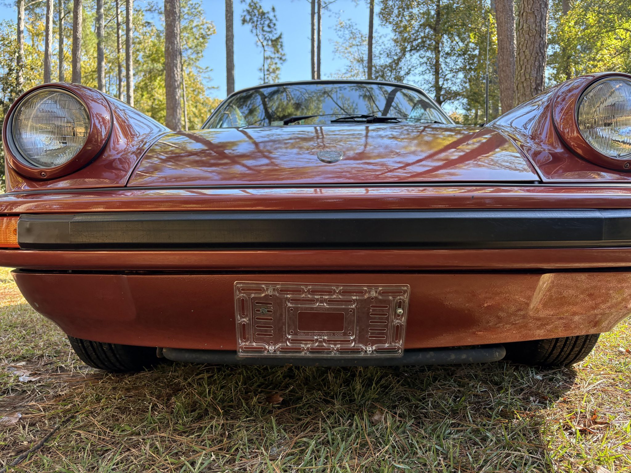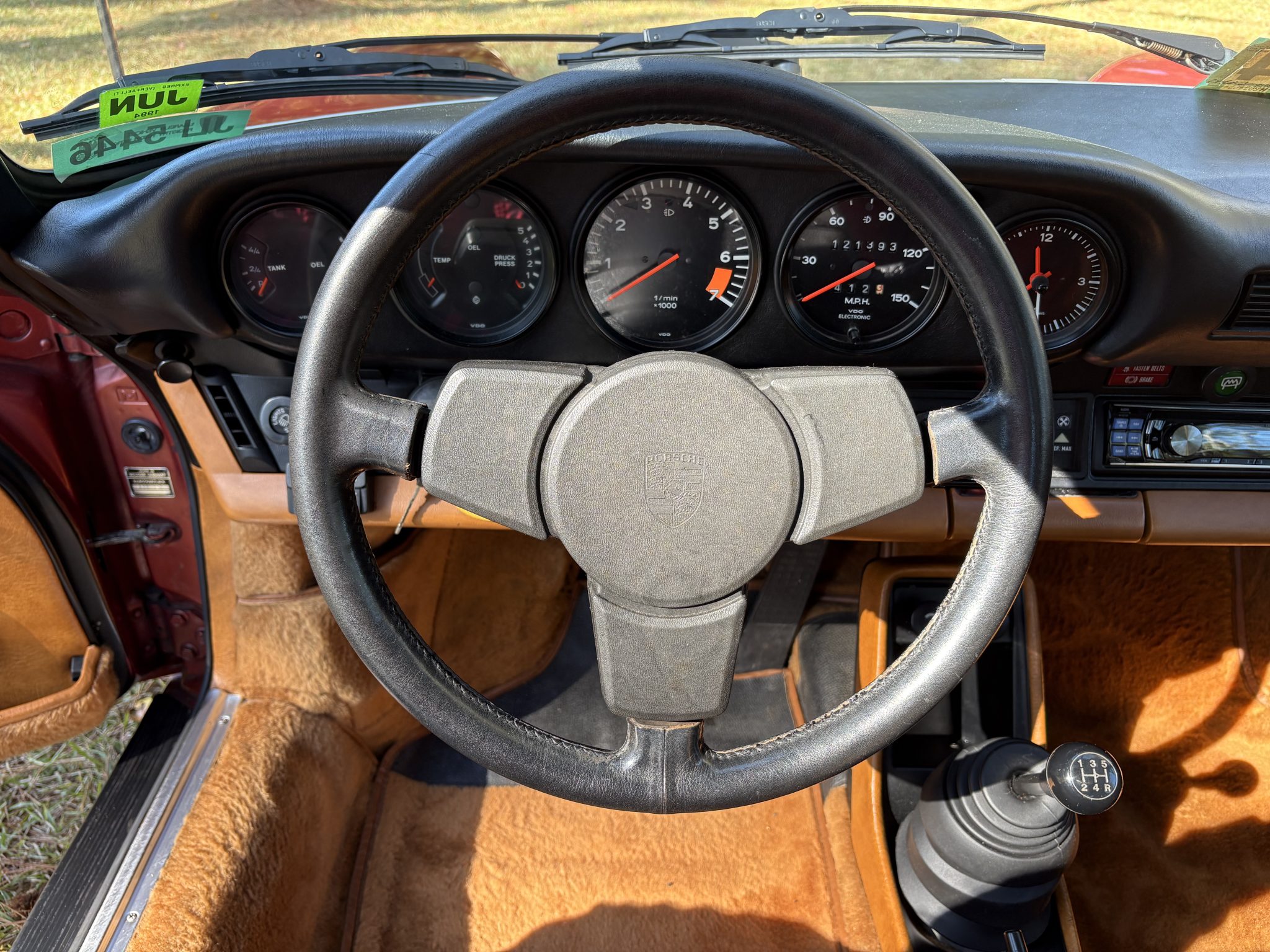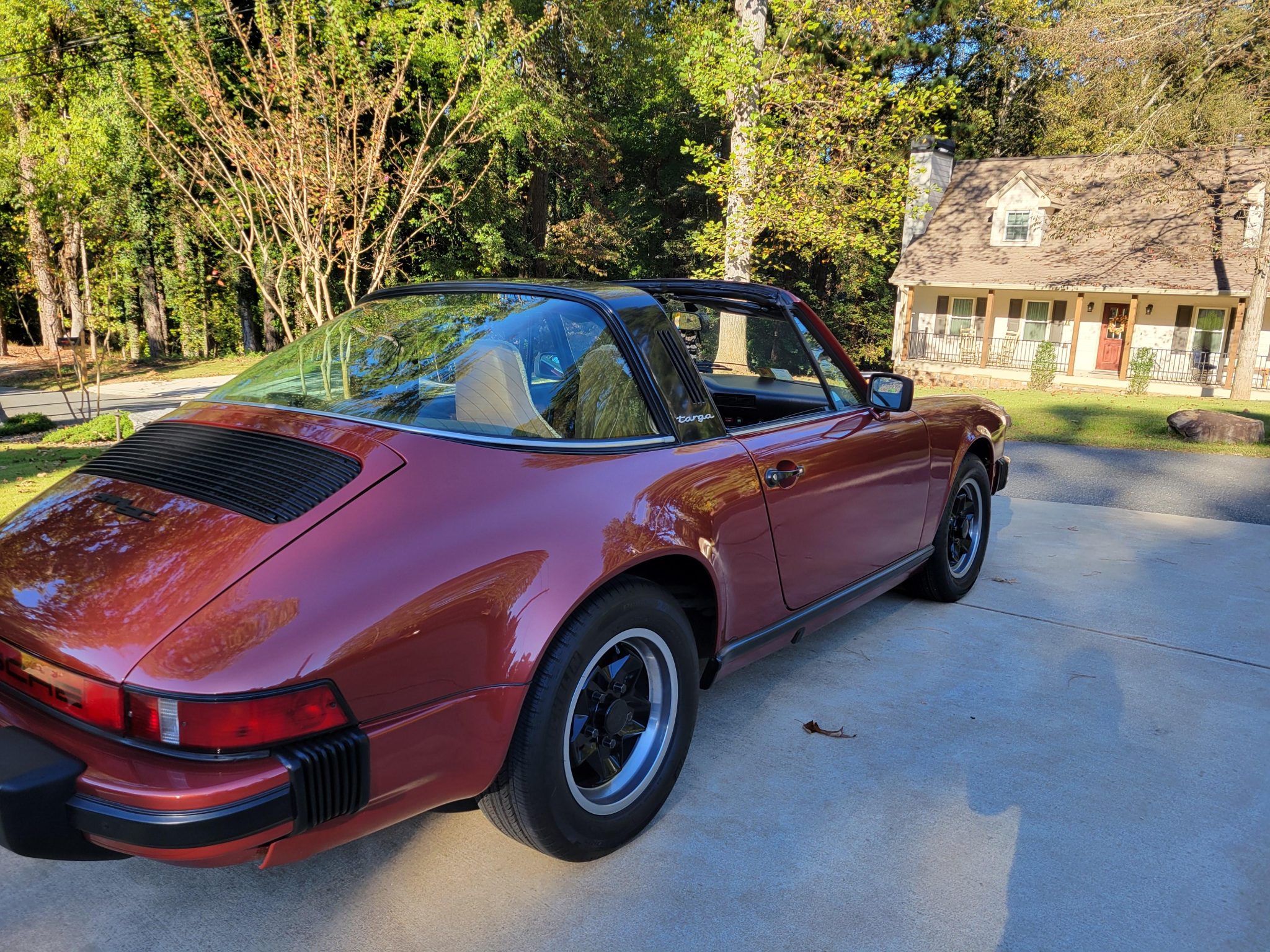 This 1978 Porsche 911SC Targa is finished in Sienna Metallic over Cork leather upholstery. Powered by a 3.0-liter flat-six paired with a five-speed manual transaxle, the car features 15″ ATS “cookie-cutter” alloy wheels, a removable roof panel, a leather-wrapped steering wheel, air conditioning, and an aftermarket stereo