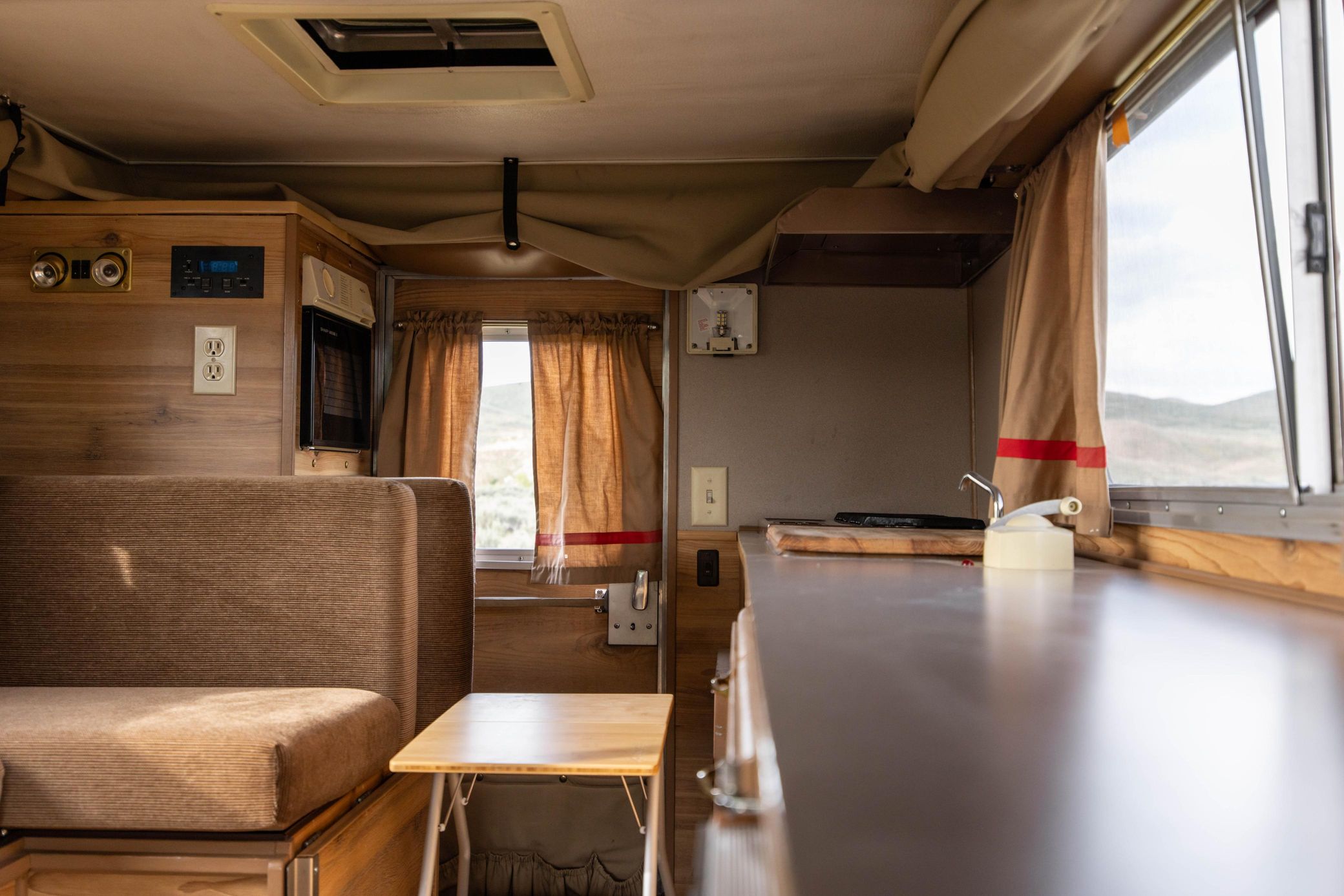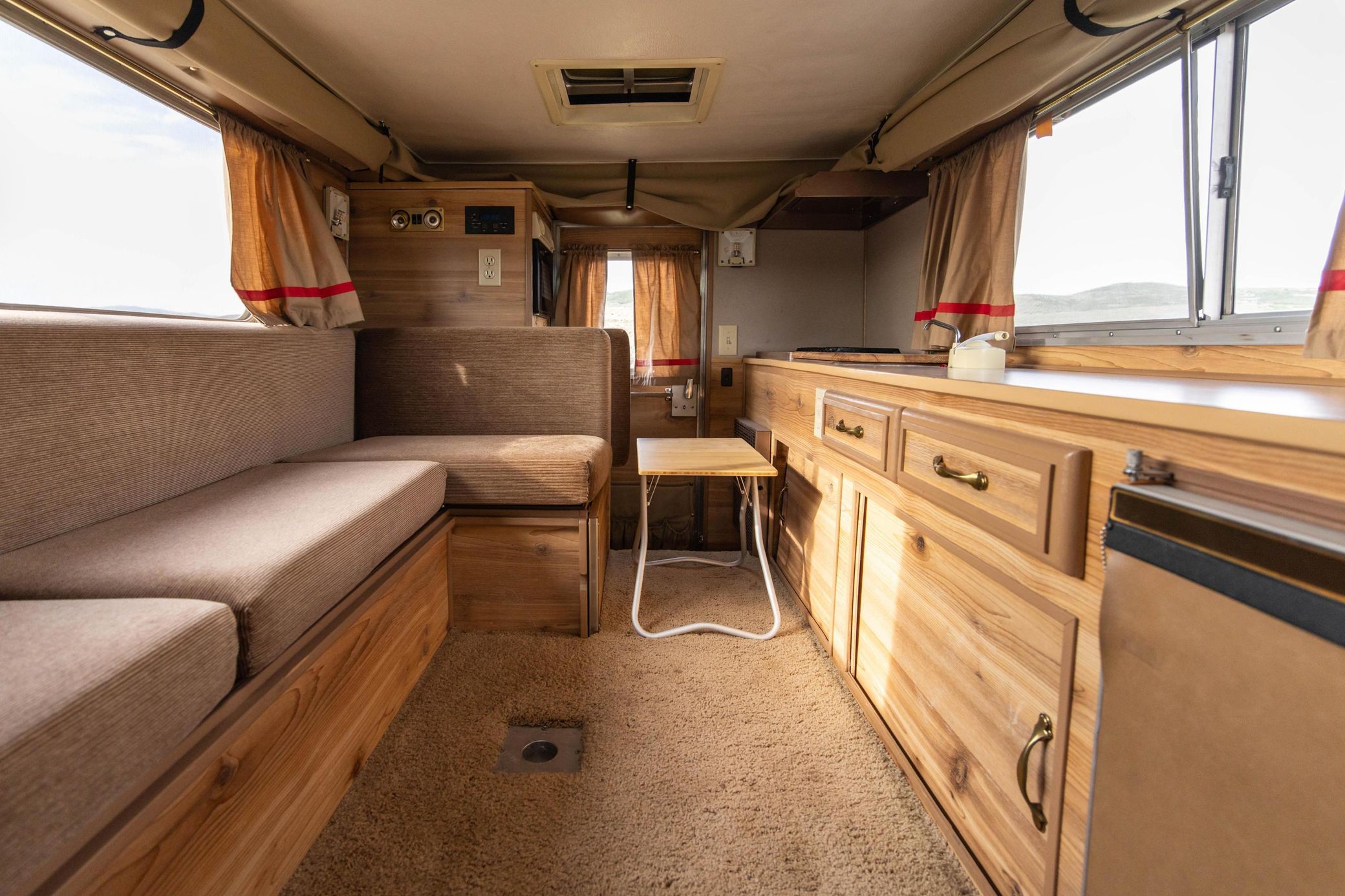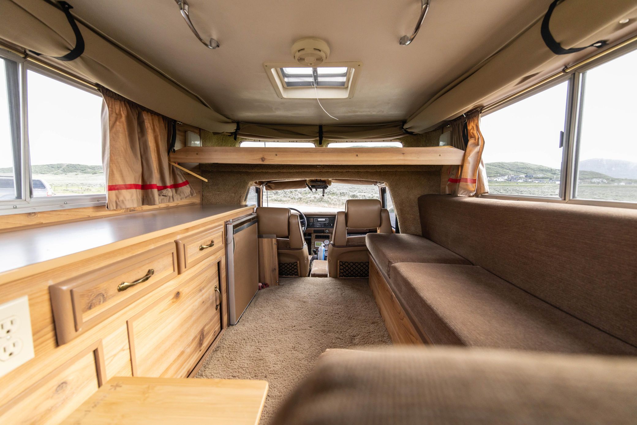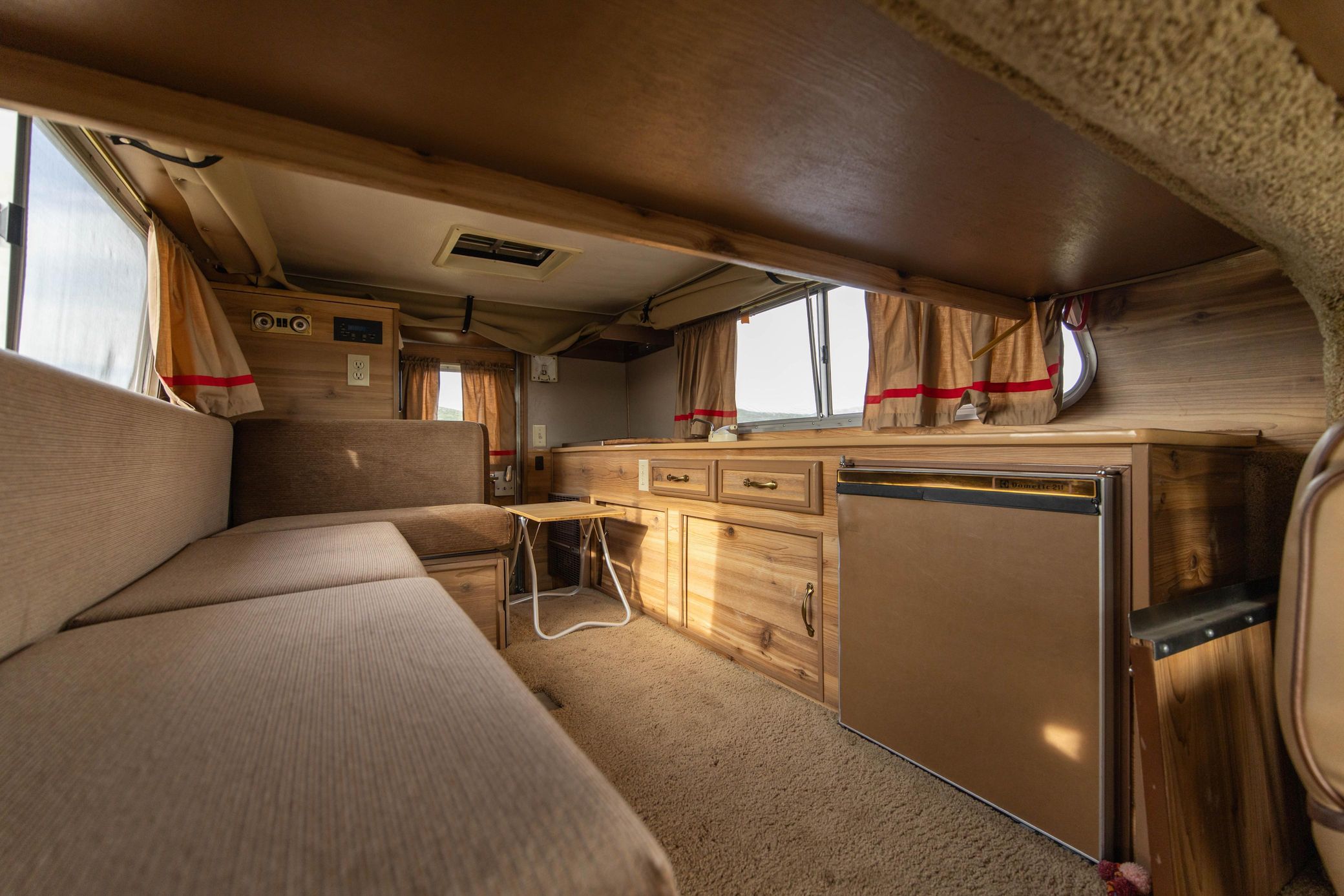 This Toyota Chinook is a compact motorhome built on a Toyota pickup chassis that was originally designed to be economical – but this particular example takes it to another level, as it features 4-wheel drive, a 20R 4-cylinder engine, a 5-speed manual transmission, AND lifted suspension, transforming it into an impressive overlanding camper rig. It also touts a beautiful color scheme and some great equipment, including Recaro front seats, air conditioning, a CB radio, and a long list of appliances.