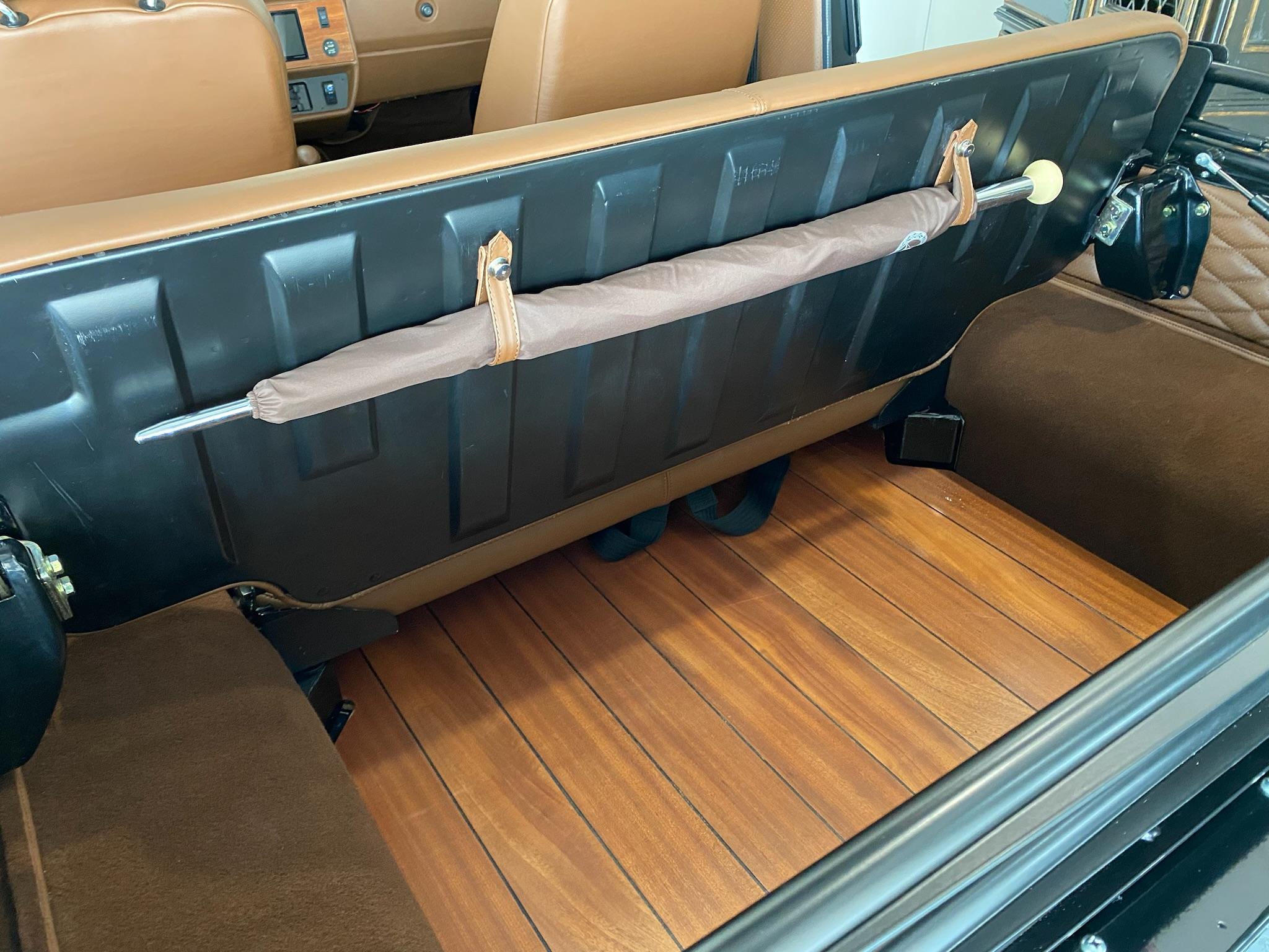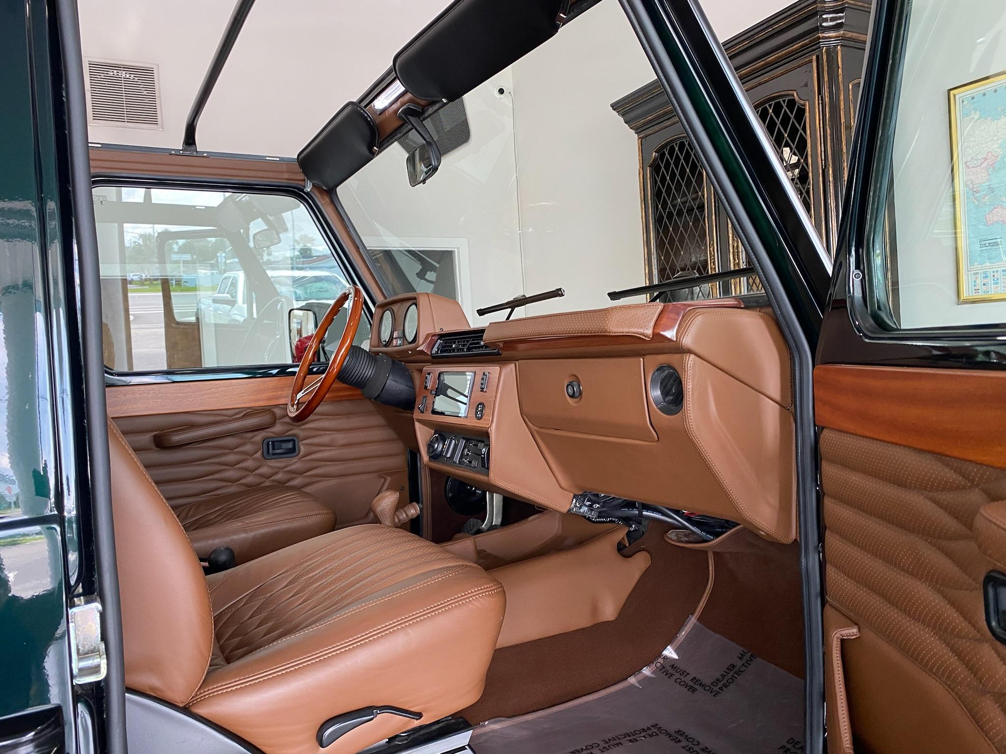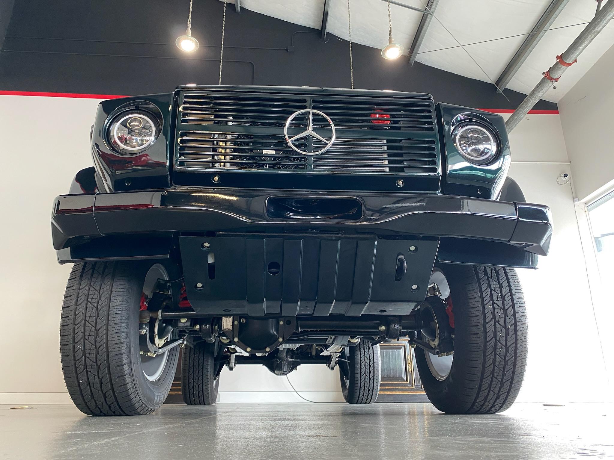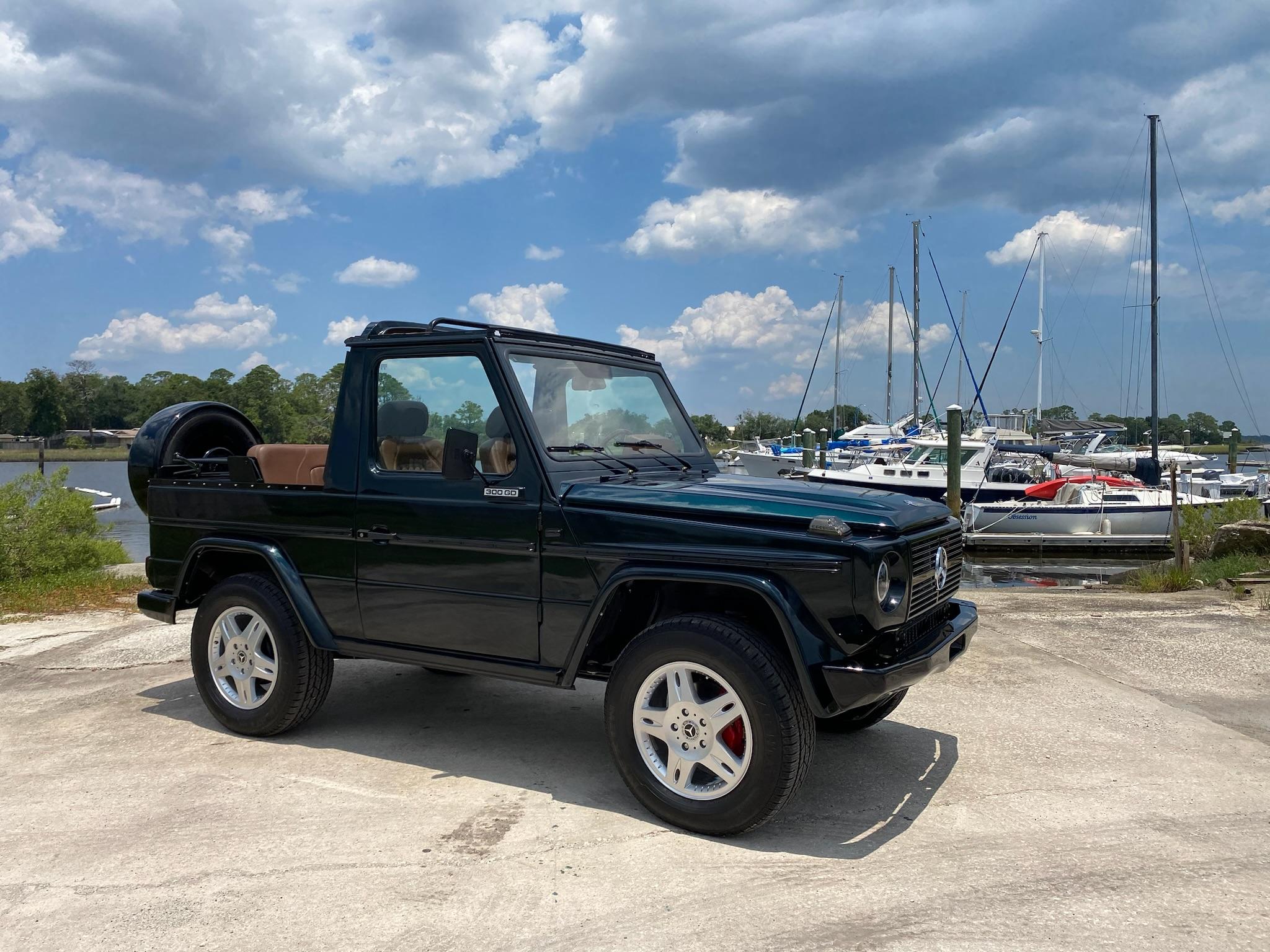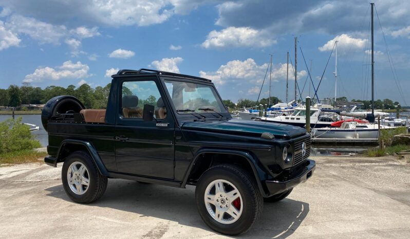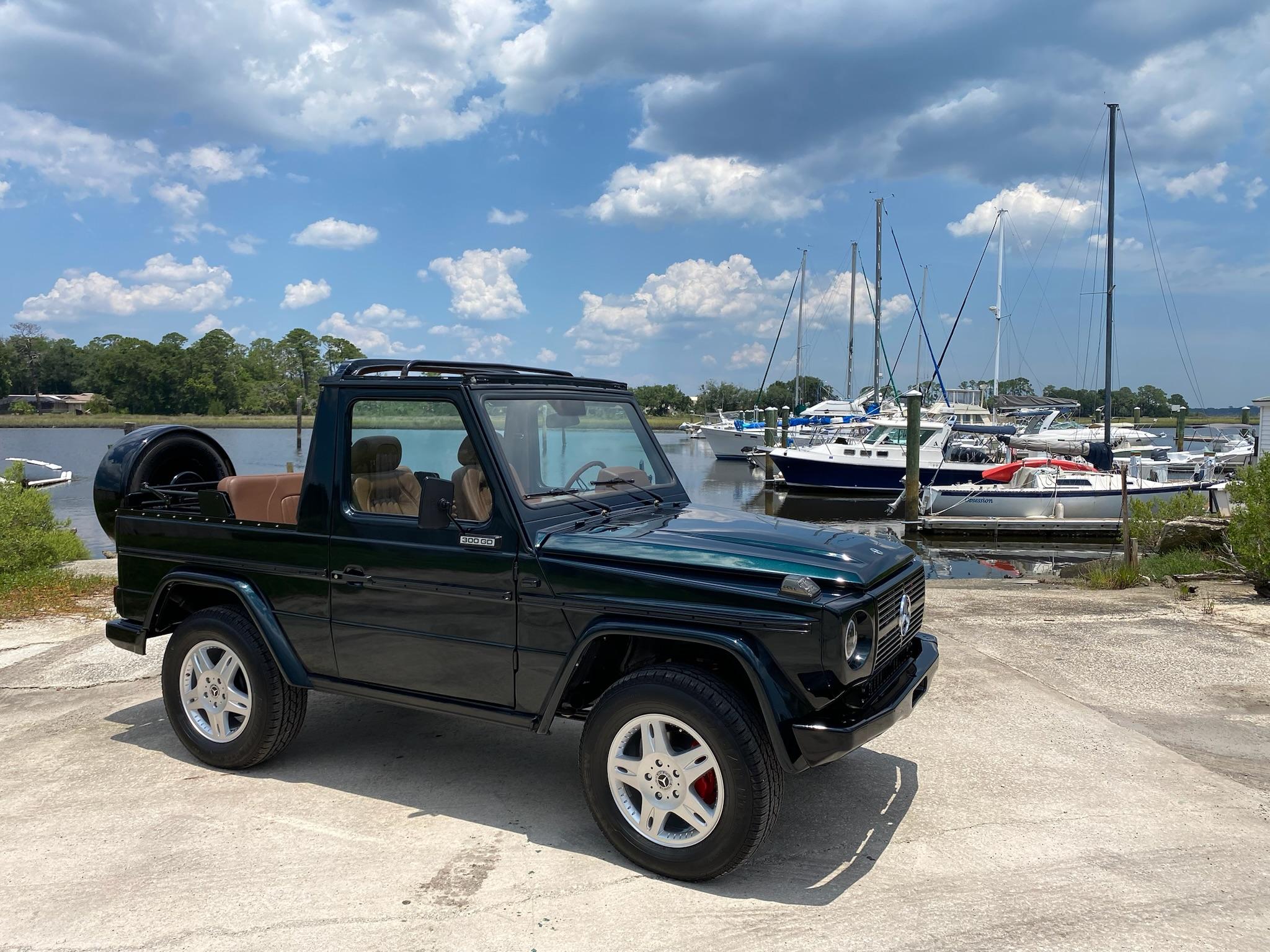 Finished in Dark Emerald Green over Saddle leather, the truck is powered by a 3.0-liter turbodiesel inline-five linked with a five-speed manual transmission, a dual-range transfer case, and locking front and rear differentials. Equipment includes a black soft top, a revised turbocharger, front disc brakes, 18″ Ashtaroth wheels, air conditioning, a wood-rimmed steering wheel, and a Blaupunkt touchscreen infotainment system. This W460 300GD shows 34k miles