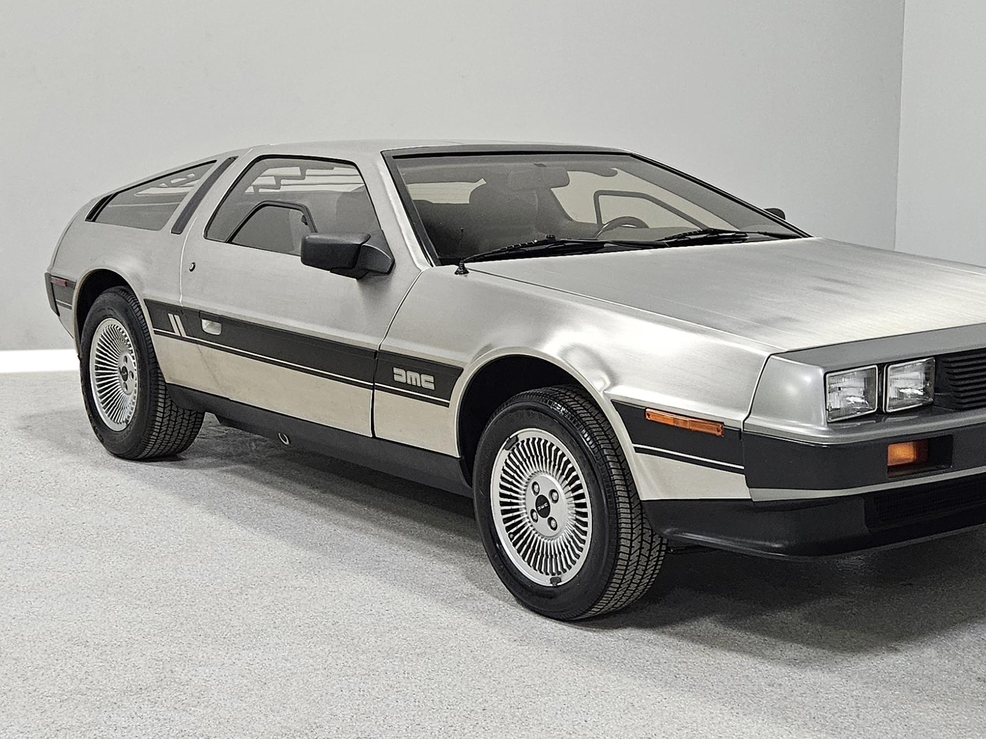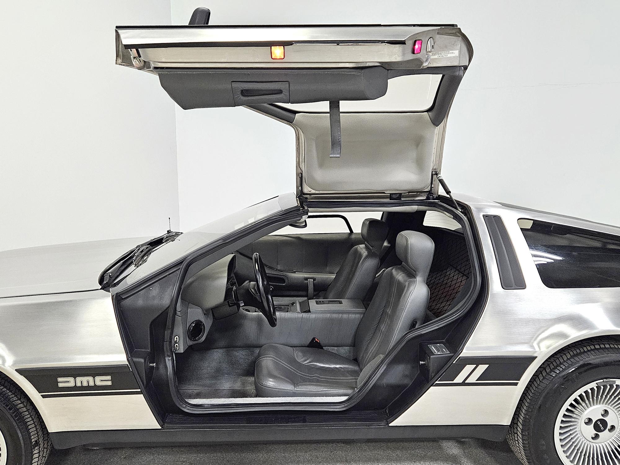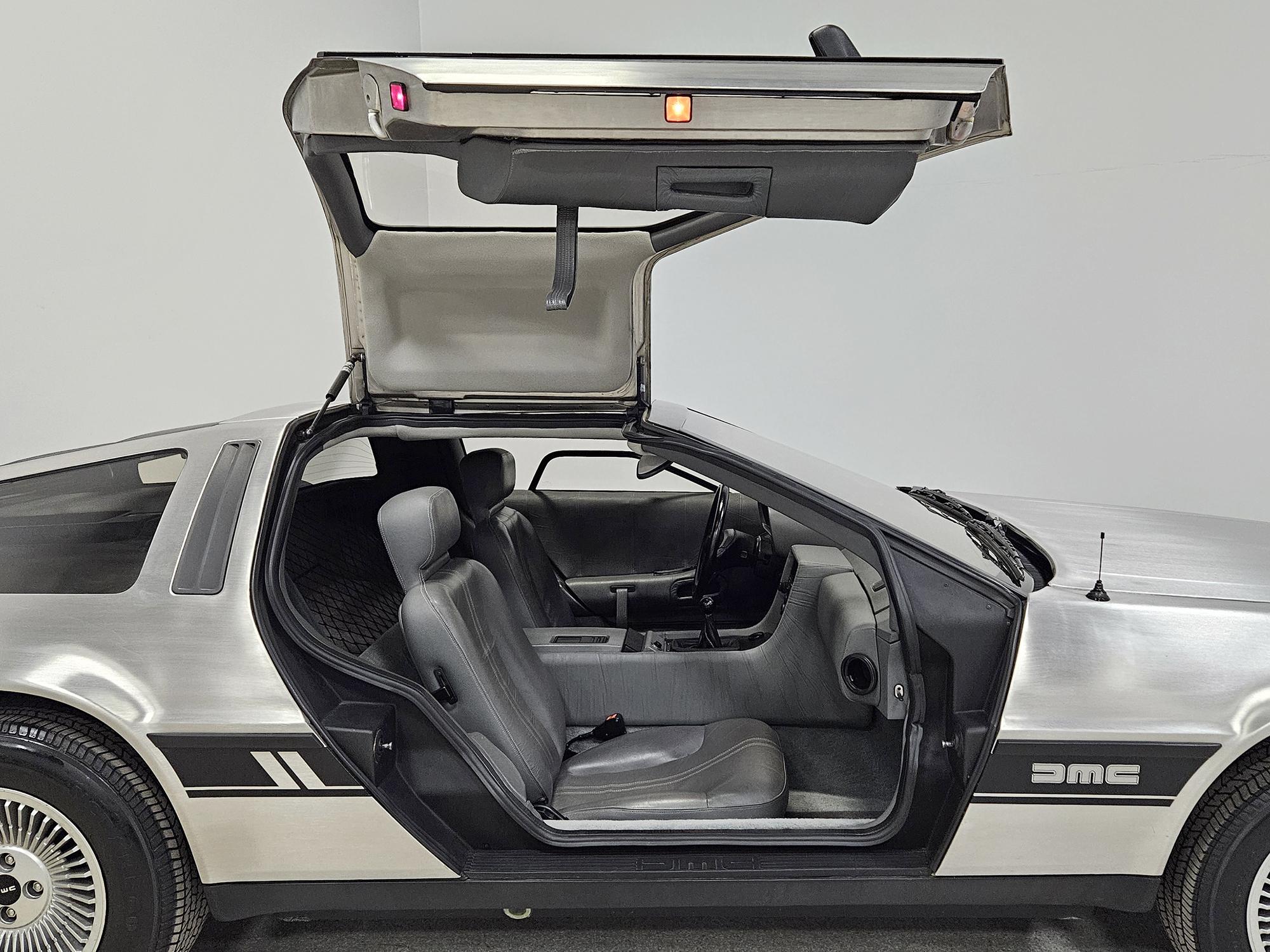 Powered by a 2.85-liter V6 paired with a five-speed manual transaxle, the car features unfinished stainless steel body panels over a gray leather interior. Equipment includes gullwing doors, rear window louvers, 14″ and 15″ turbine-style aluminum wheels, four-wheel disc brakes, power windows, air conditioning, and a cassette stereo. Work performed since 2021 is said to have included rebuilding the brake calipers and replacing the ball joints, tie rods, and battery.