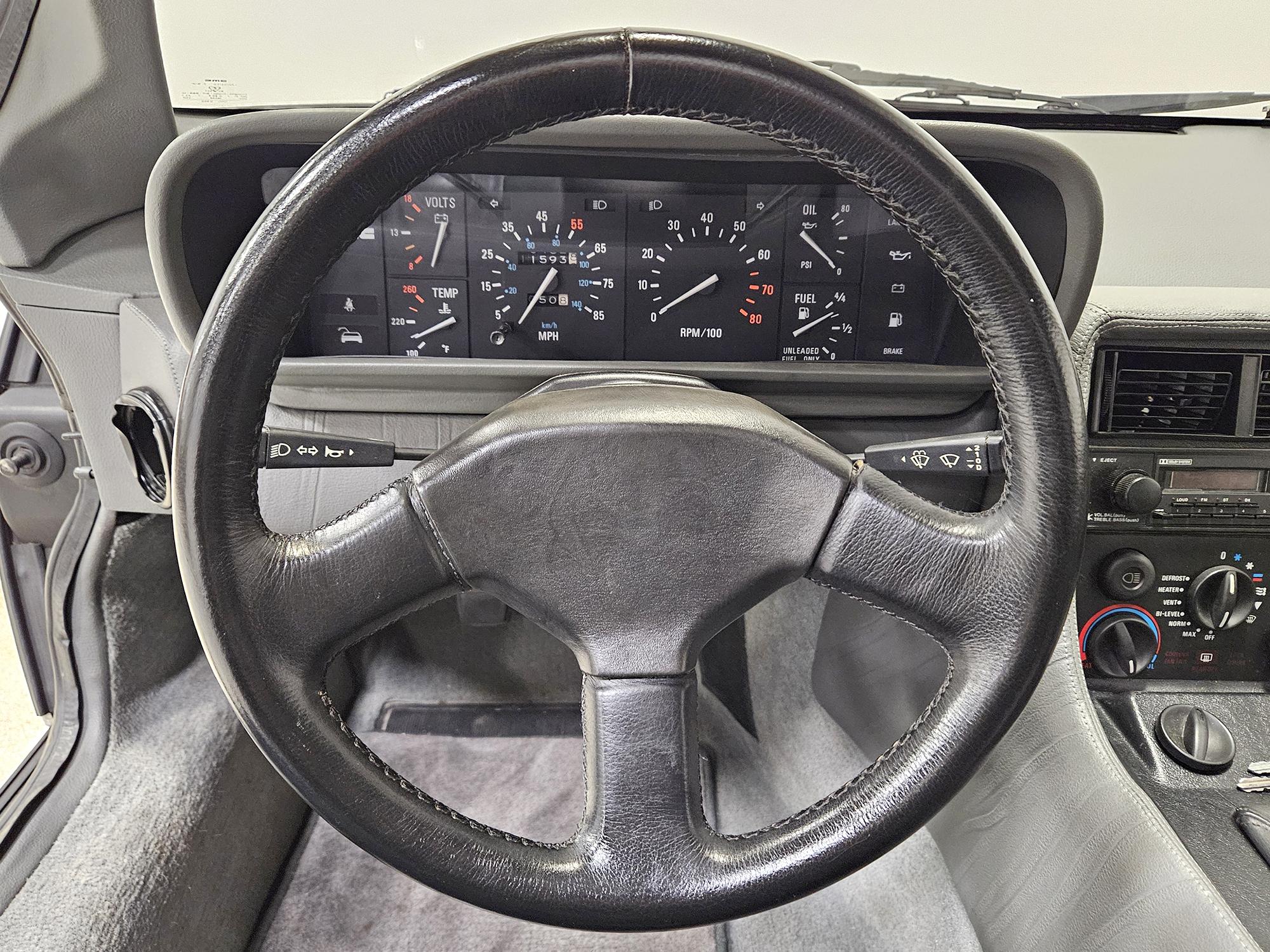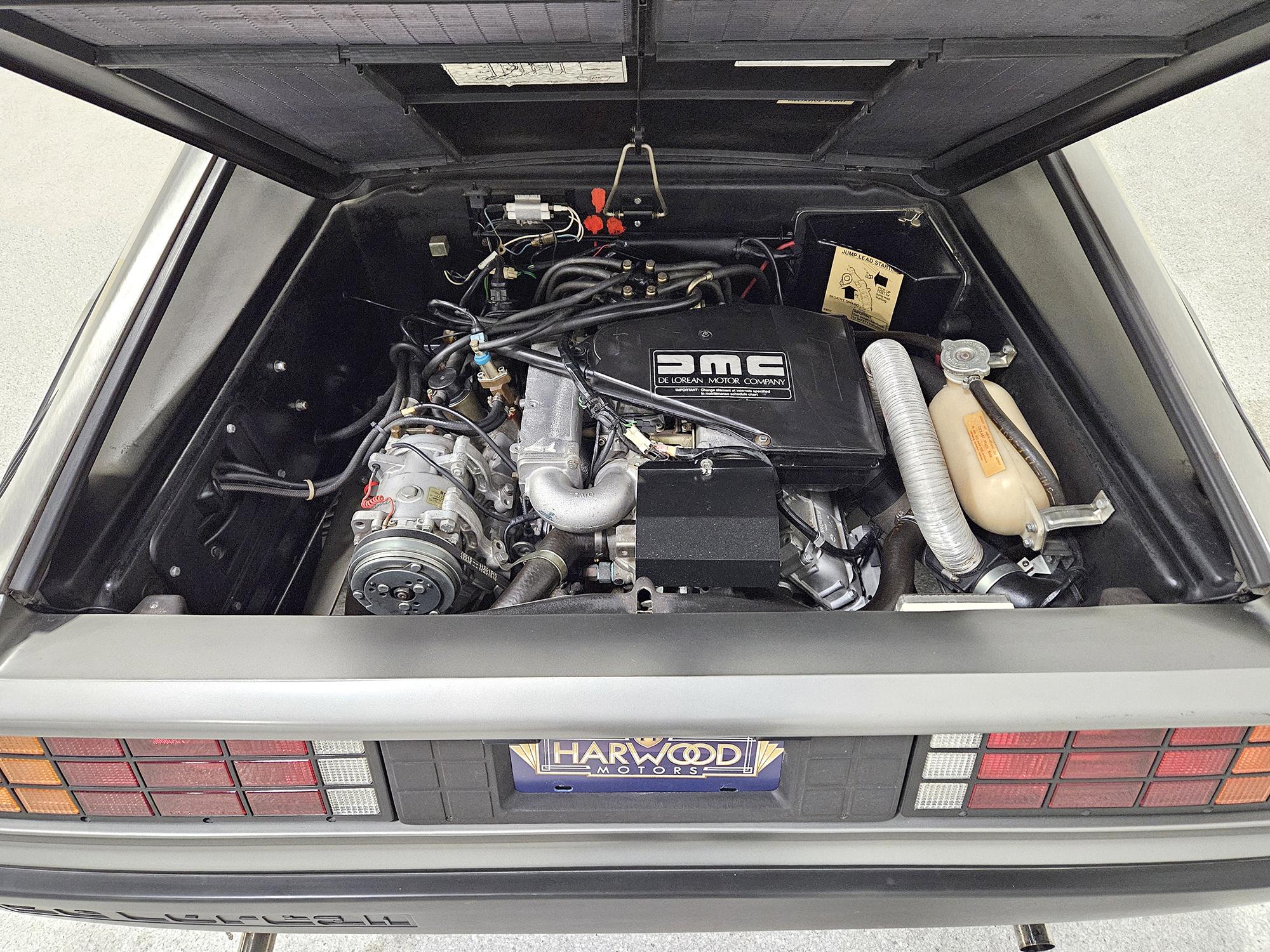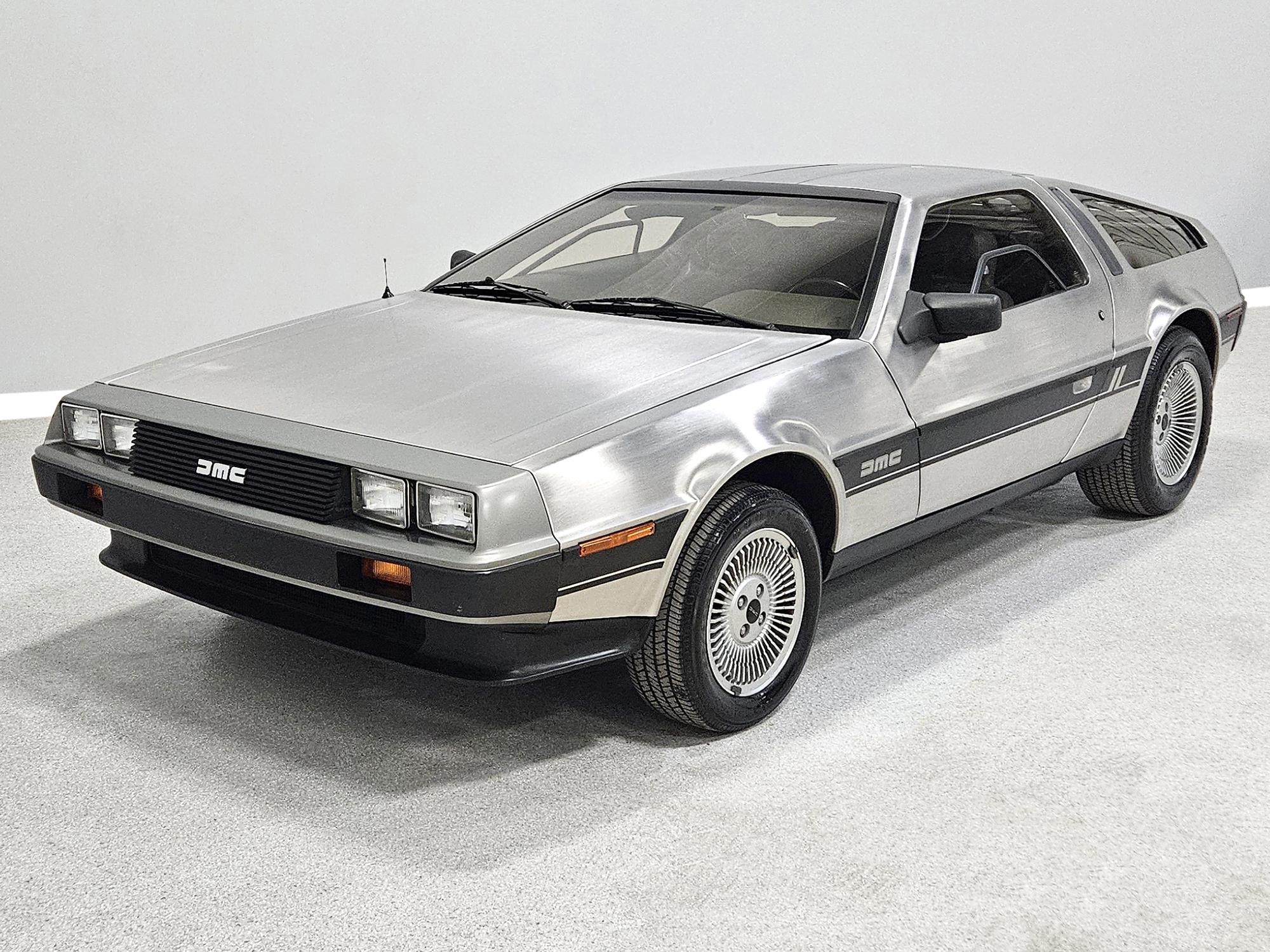 Powered by a 2.85-liter V6 paired with a five-speed manual transaxle, the car features unfinished stainless steel body panels over a gray leather interior. Equipment includes gullwing doors, rear window louvers, 14″ and 15″ turbine-style aluminum wheels, four-wheel disc brakes, power windows, air conditioning, and a cassette stereo. Work performed since 2021 is said to have included rebuilding the brake calipers and replacing the ball joints, tie rods, and battery.