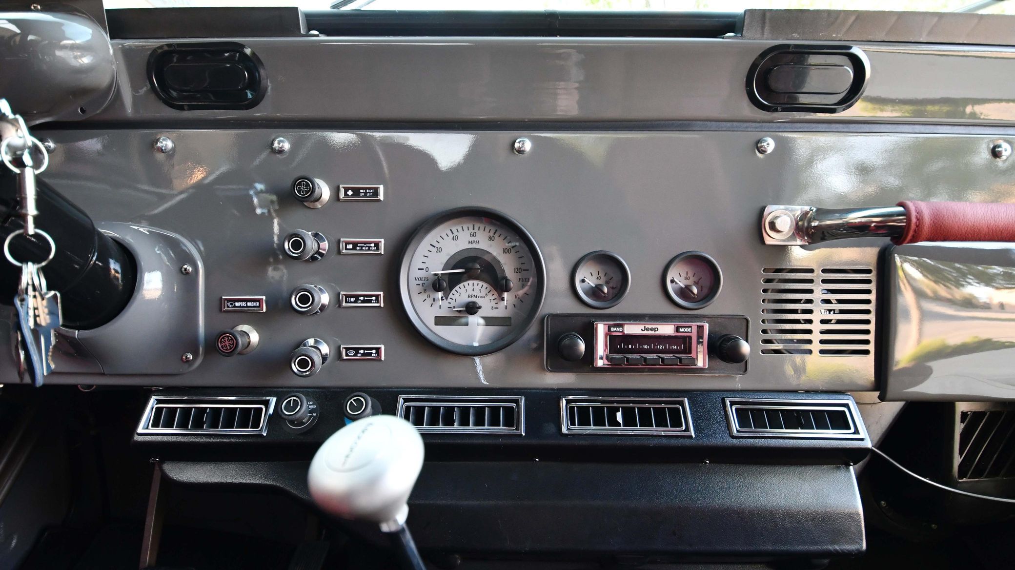 This Scrambler has been extensively restored and modernized – and it now boasts a 387-cubic-inch V8, a handsome new paint job, an updated interior, and many more touches intended to improve both the livability and the off-road performance.