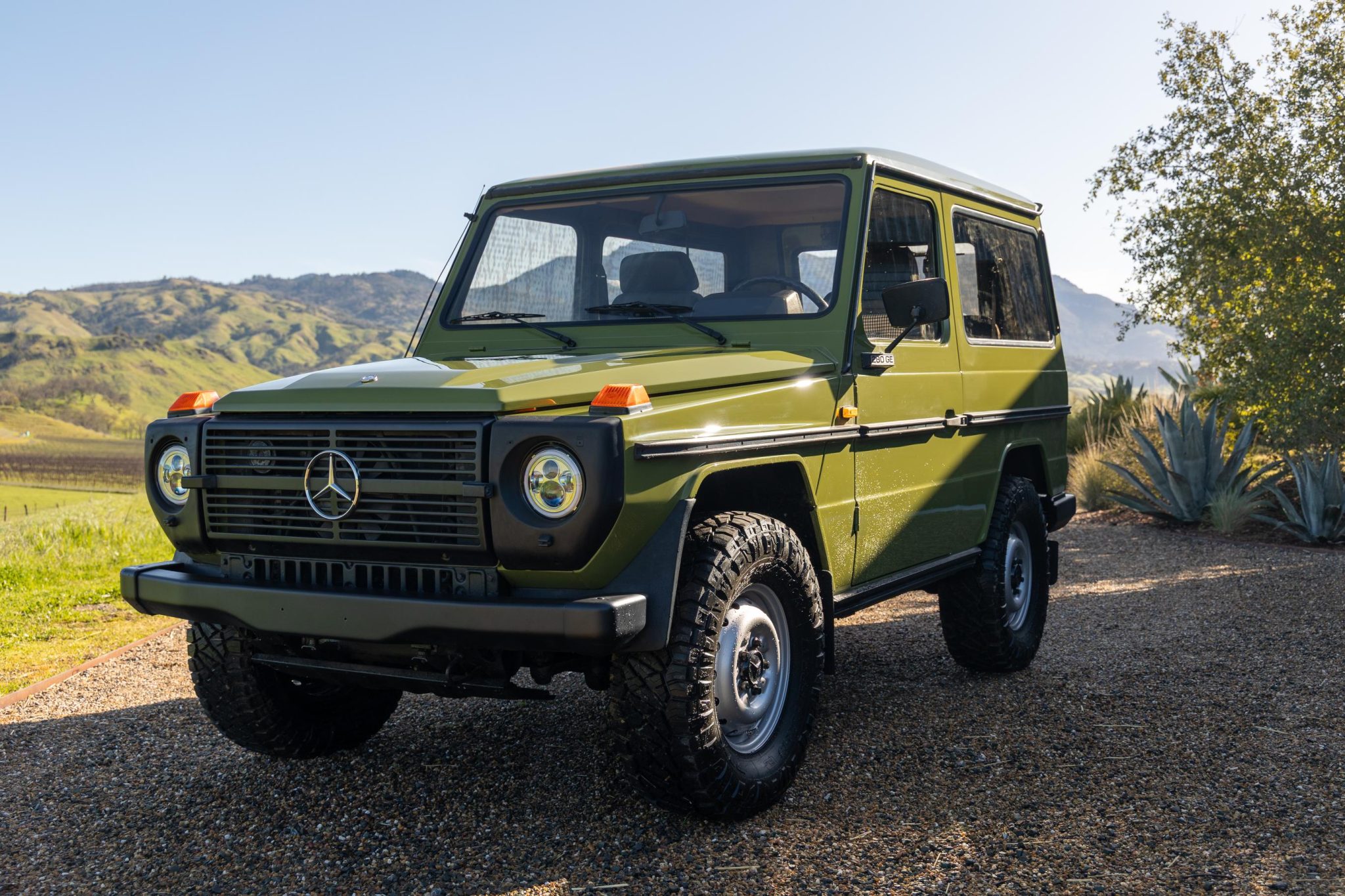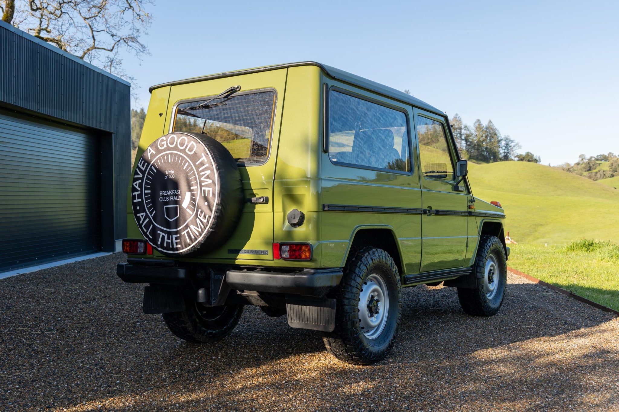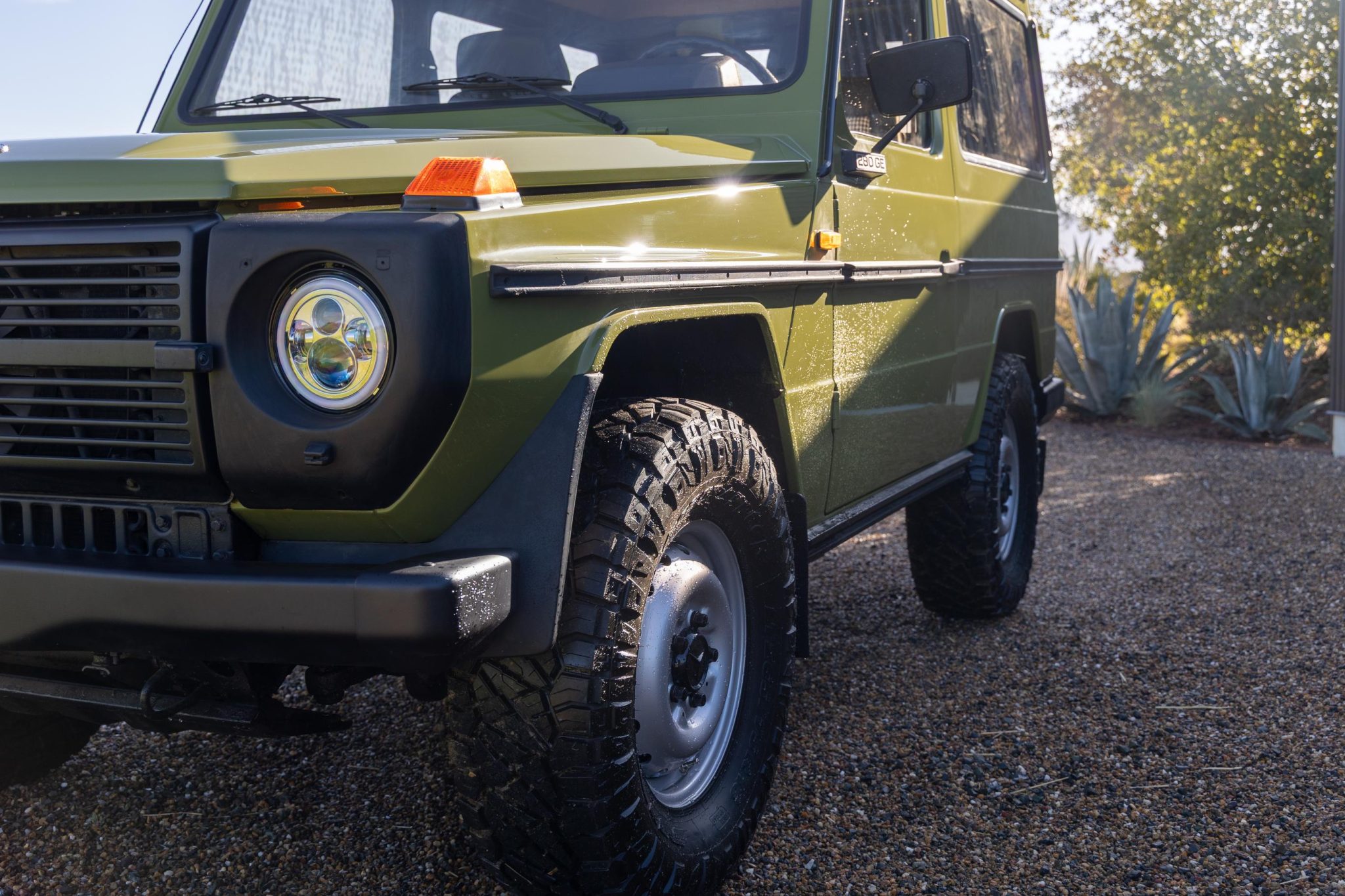 This 1981 Mercedes-Benz 280GE is a three-door station wagon Refinished in green over a black interior, it is powered by a 2.8-liter inline-six linked with a four-speed automatic transmission and a dual-range transfer case. Equipment includes 16″ steel wheels, a rear-mounted spare, LED headlights, and a rear wiper and defroster in addition to Recaro front seats, a rear bench, a Behr air conditioner, a heater, and an aftermarket stereo.