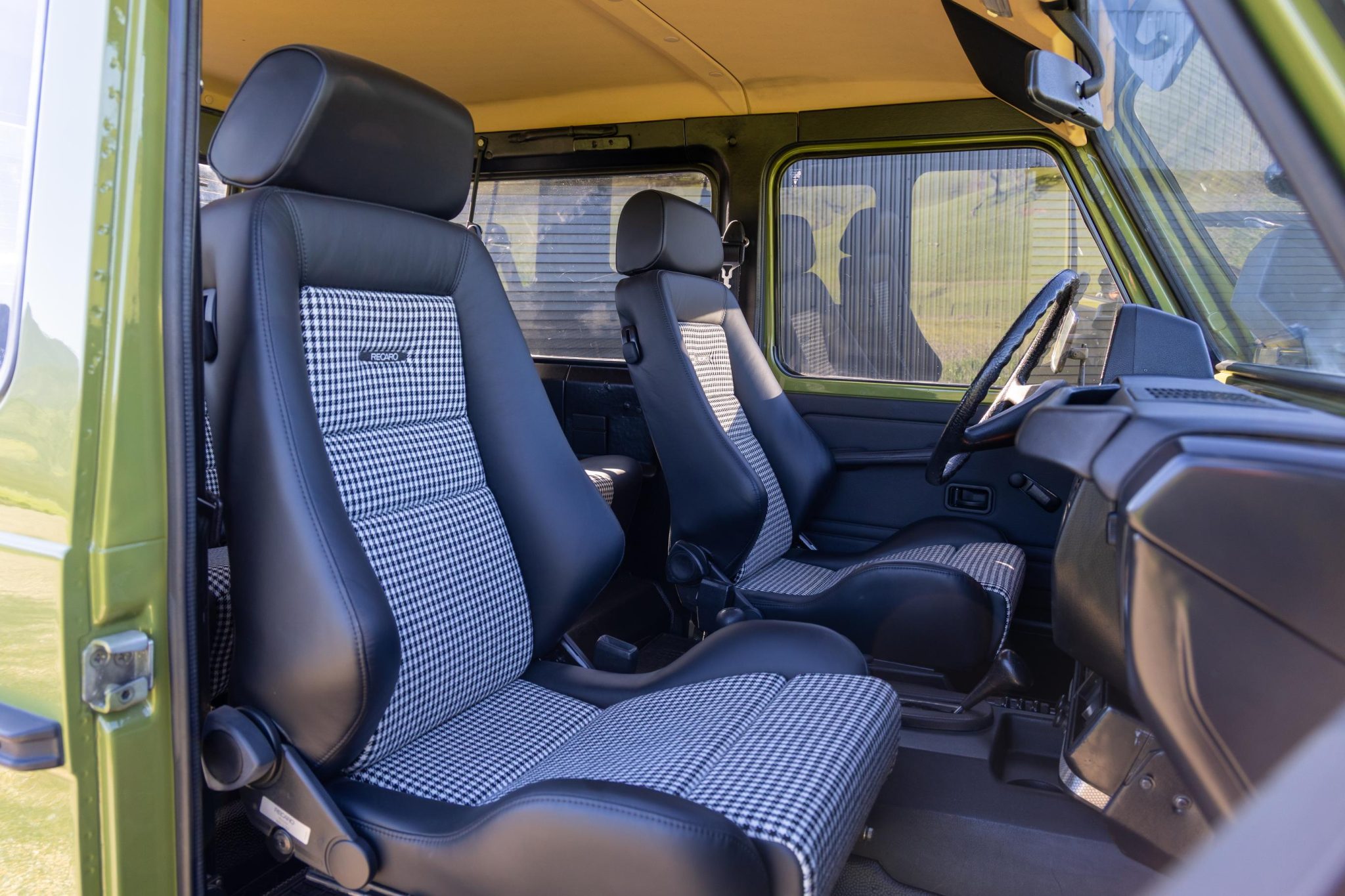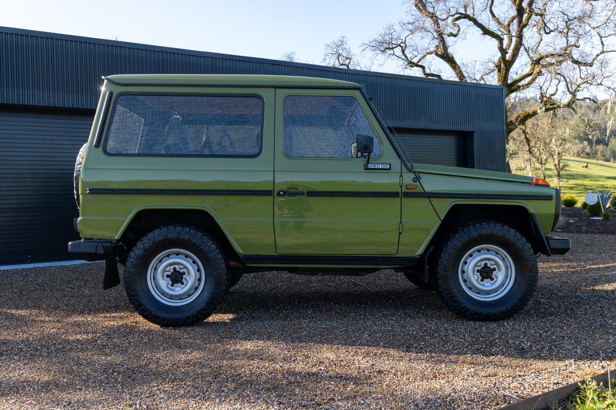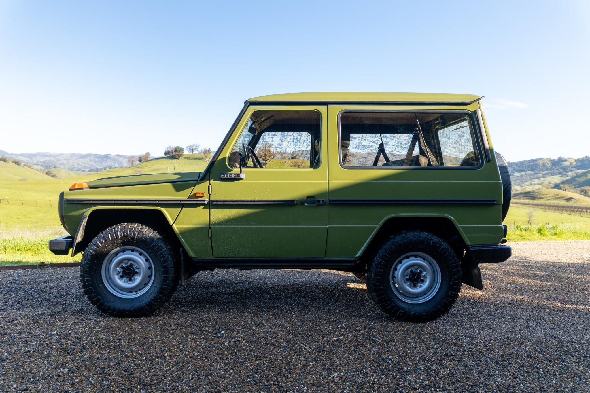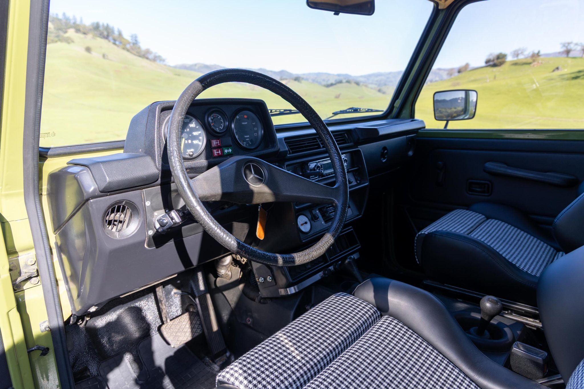 This 1981 Mercedes-Benz 280GE is a three-door station wagon Refinished in green over a black interior, it is powered by a 2.8-liter inline-six linked with a four-speed automatic transmission and a dual-range transfer case. Equipment includes 16″ steel wheels, a rear-mounted spare, LED headlights, and a rear wiper and defroster in addition to Recaro front seats, a rear bench, a Behr air conditioner, a heater, and an aftermarket stereo.