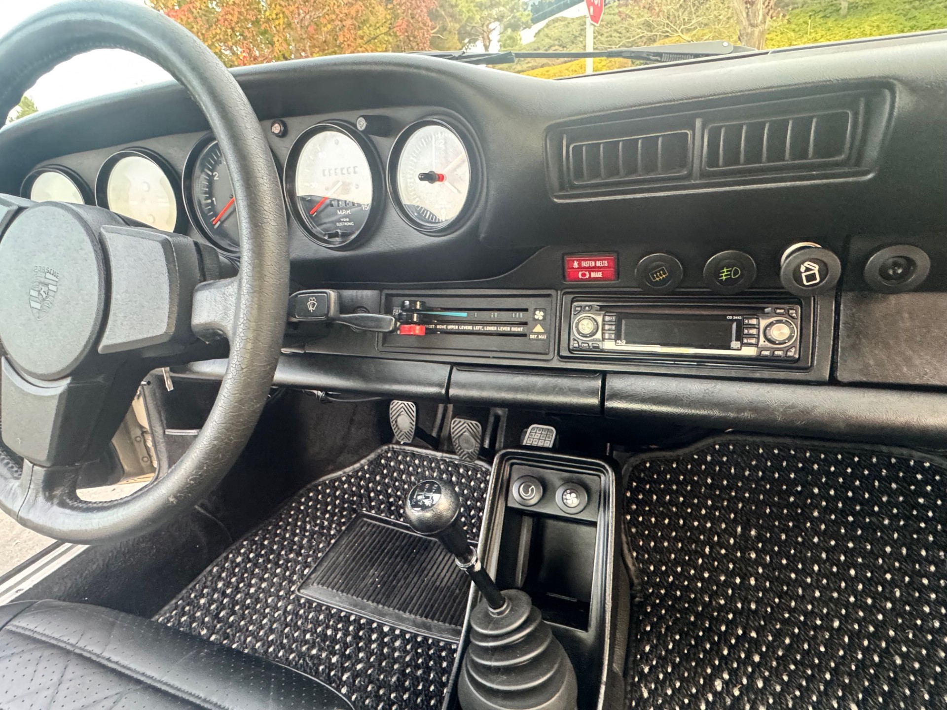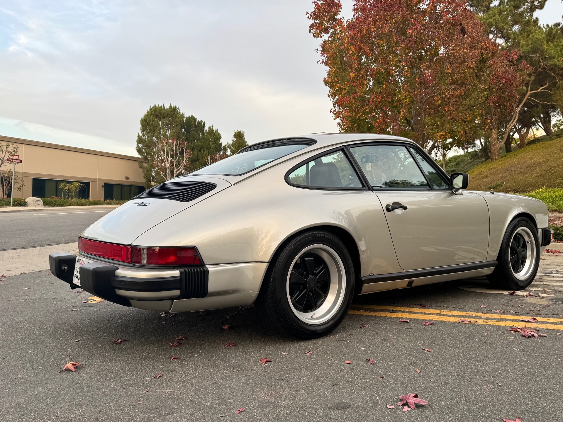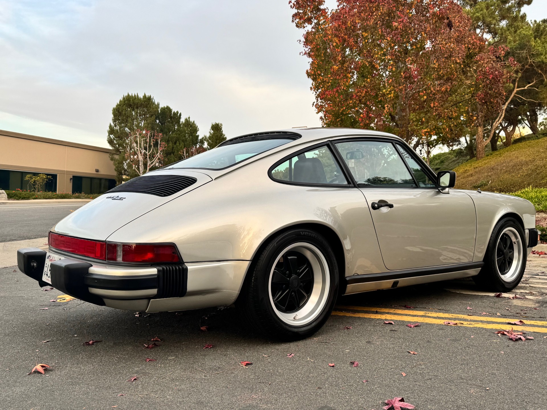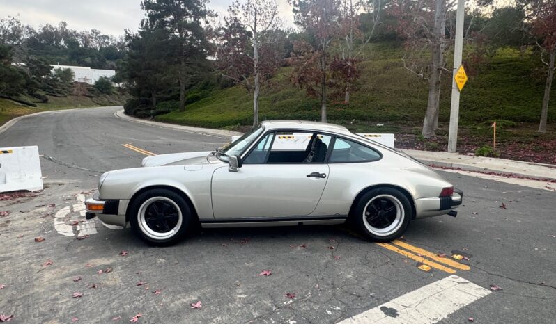 This 1981 Porsche 911SC is powered by a 3.0-liter flat-six that was rebuilt in 2020. Shifting is through a five-speed manual transaxle, and the car is finished in Pewter Metallic over a black leather interior. Equipment includes sport shocks, 16″ Fuchs alloy wheels, a sunroof, fog lights, cruise control, power windows, and an aftermarket stereo.