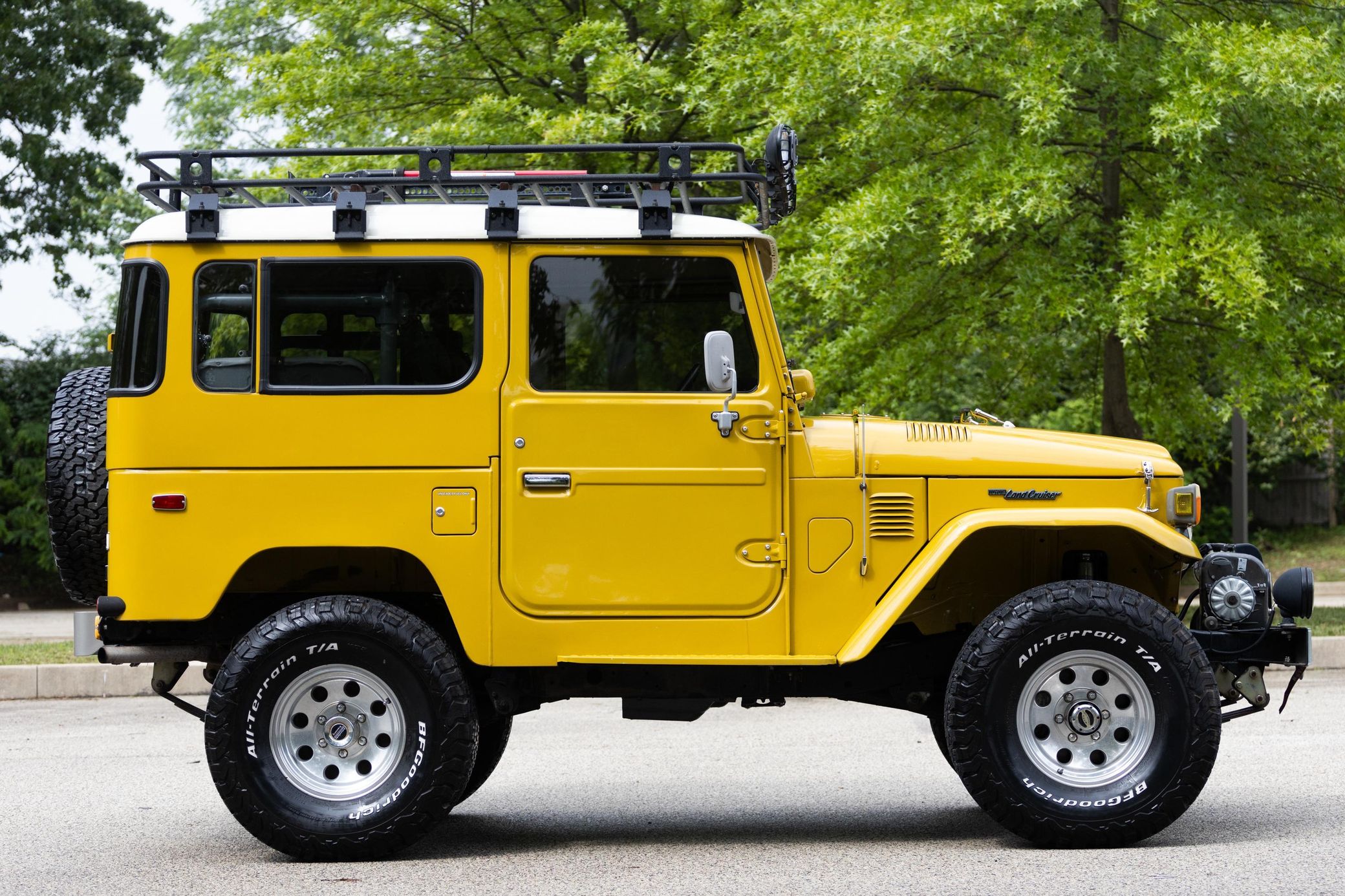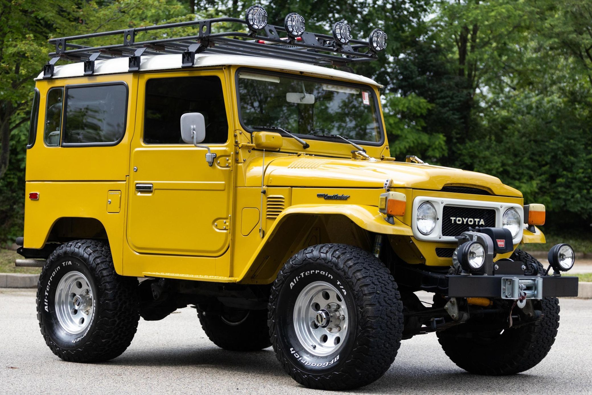This particular FJ40 is a U.S.-market example finished in a desirable color, and it features several cool modifications like 15-inch American Racing wheels, Bilstein 5100 Series shocks, WARN Industries locking front hubs and winch, a roof basket, air conditioning, and an upgraded sound system. Power comes from a 4.2-liter straight-6, rated at about 135 horsepower and 210 lb-ft of torque. Output is sent to the rear or the four wheels via a 4-speed manual transmission and a 2-speed transfer case.