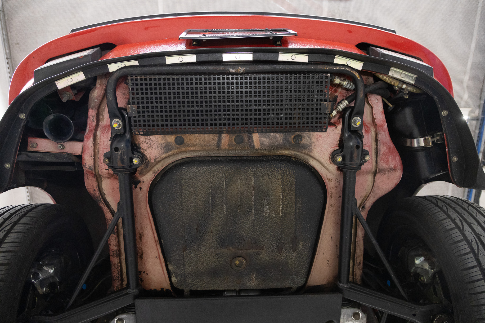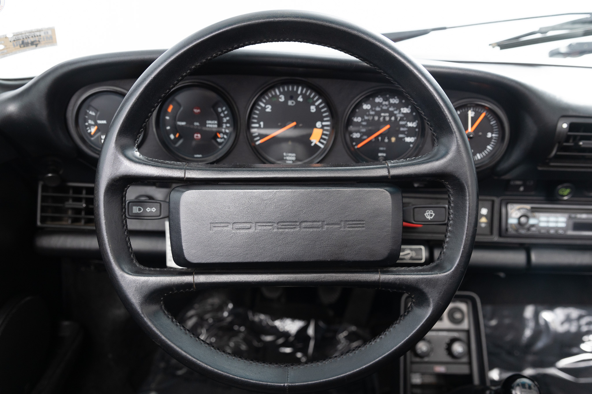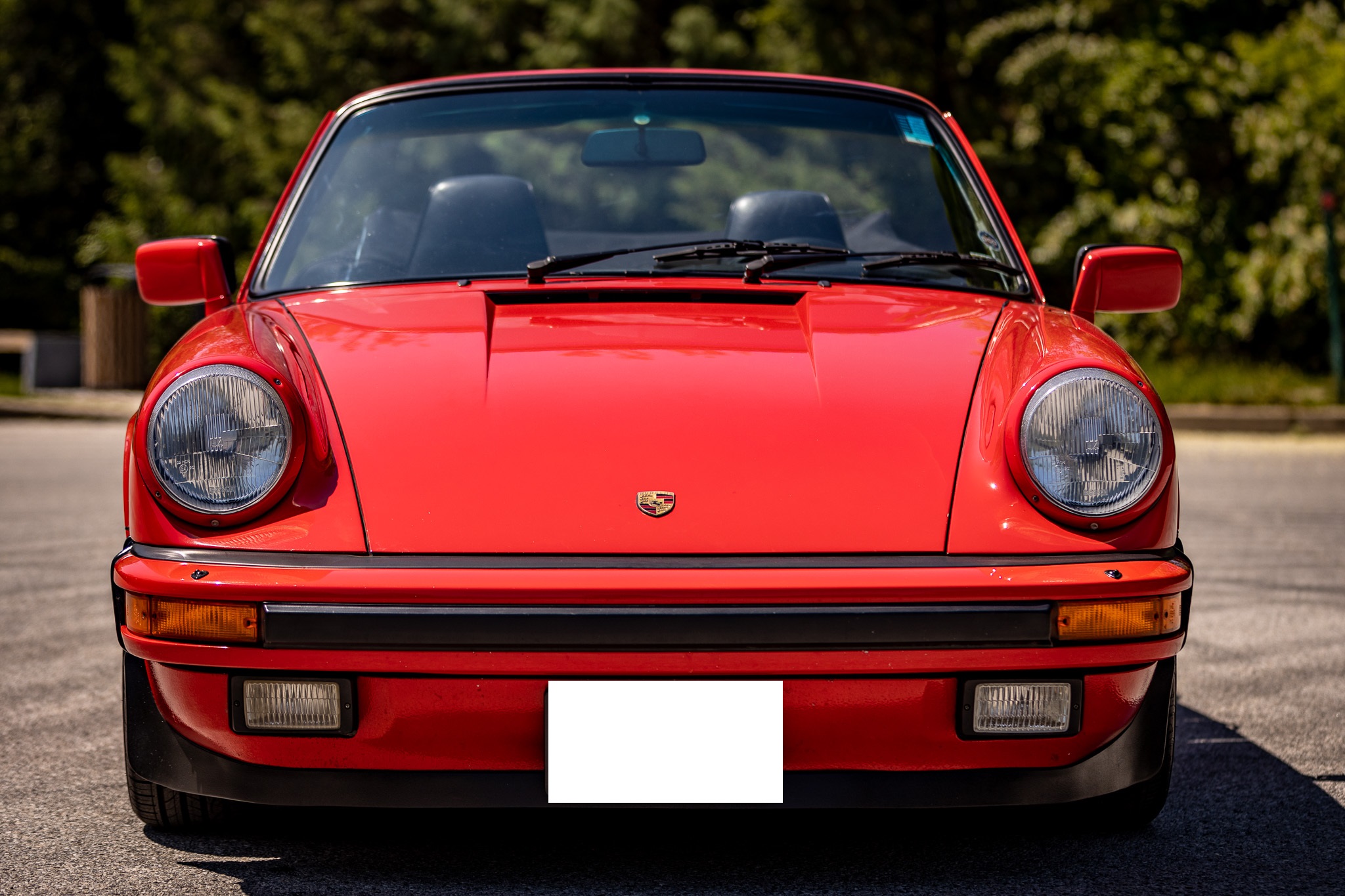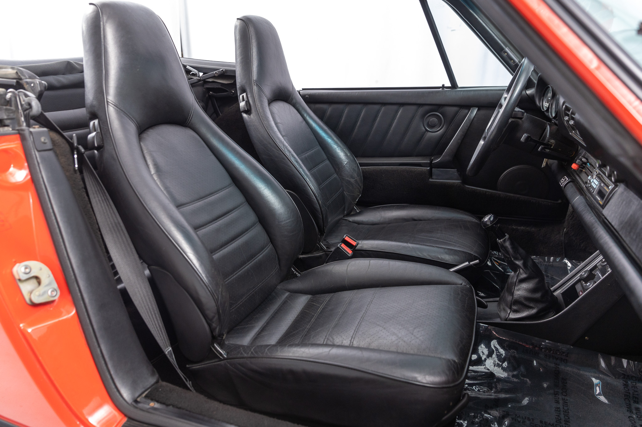 This 1986 Porsche 911 Carrera cabriolet is powered by a 3.2-liter flat-six paired with a 915 five-speed manual transaxle and is finished in Guards Red over black leather upholstery. Additional equipment includes 16″ Fuchs alloy wheels, H4 headlights, a manually operated black soft top, SSI heat exchangers, an M&K exhaust system, an Alpine head unit, a power-adjustable driver’s seat, and air conditioning.