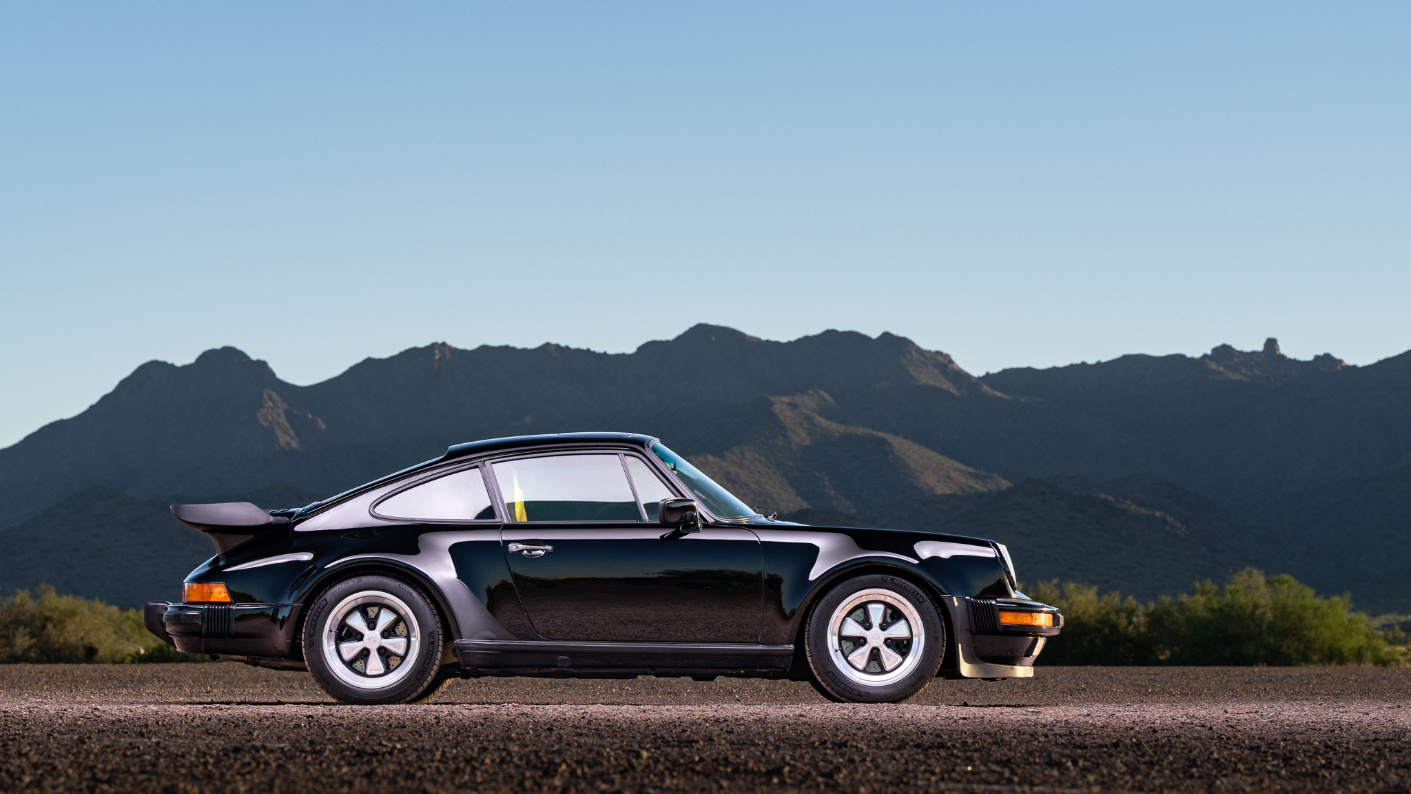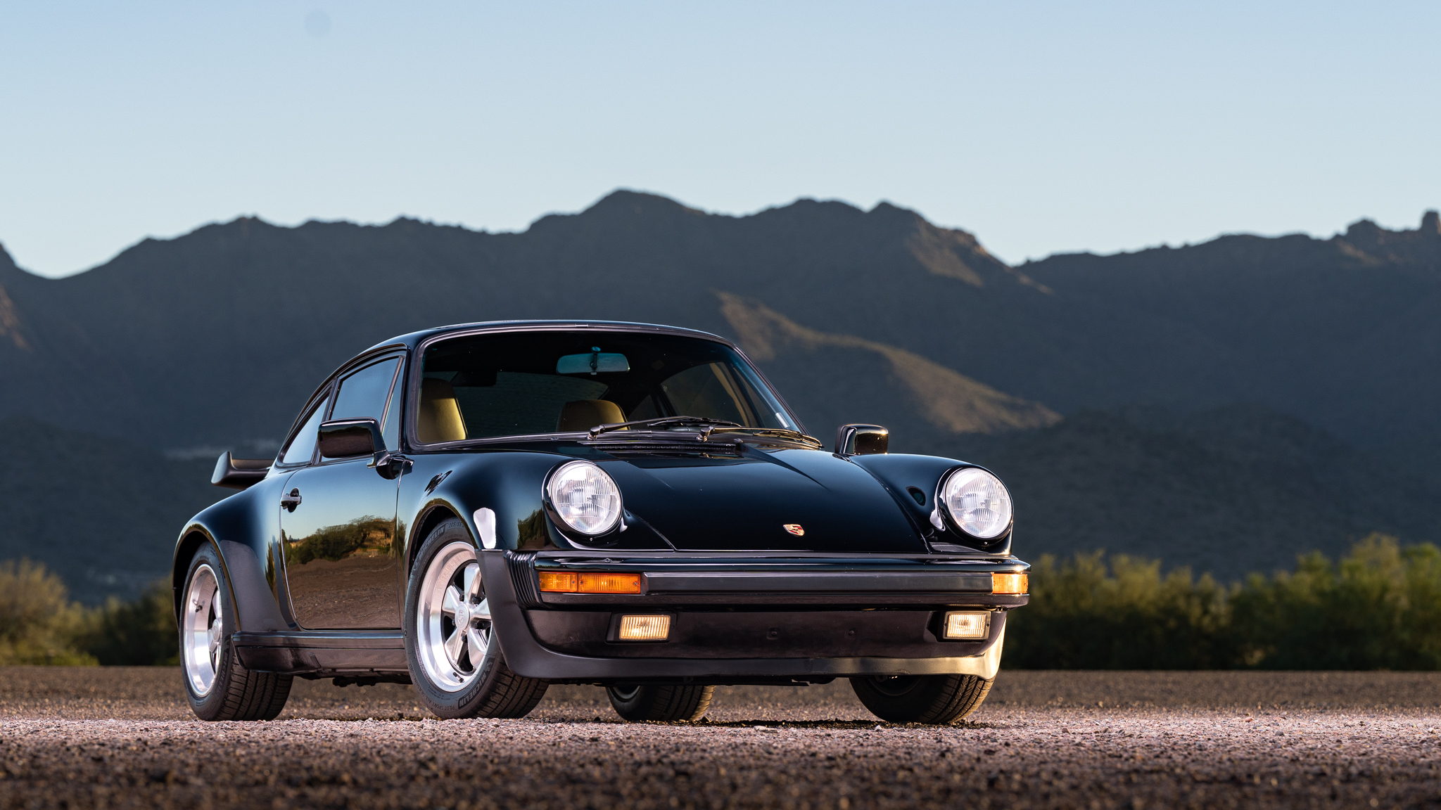 This 1986 Porsche 911 Carrera coupe was optioned with the M491 “Turbo Look” package. Work between 2013 and 2025 included resealing the 3.2-liter M930/21 flat-six and the Type 915 five-speed manual transaxle as well as adjusting the valves, repairing the electrical system, installing a replacement clutch, and refreshing the interior. It wears a repaint in Black, and additional equipment includes a custom sound system, a power-operated sunroof, Euro-spec H4 headlights, silver 16″ Fuchs wheels, and R134a-based air conditioning. Work in preparation for the sale included paint correction, fluids services, and dry ice cleaning the underside along with replacing the tires, shifter kit, engine oil level sensor, and lower valve cover gaskets.