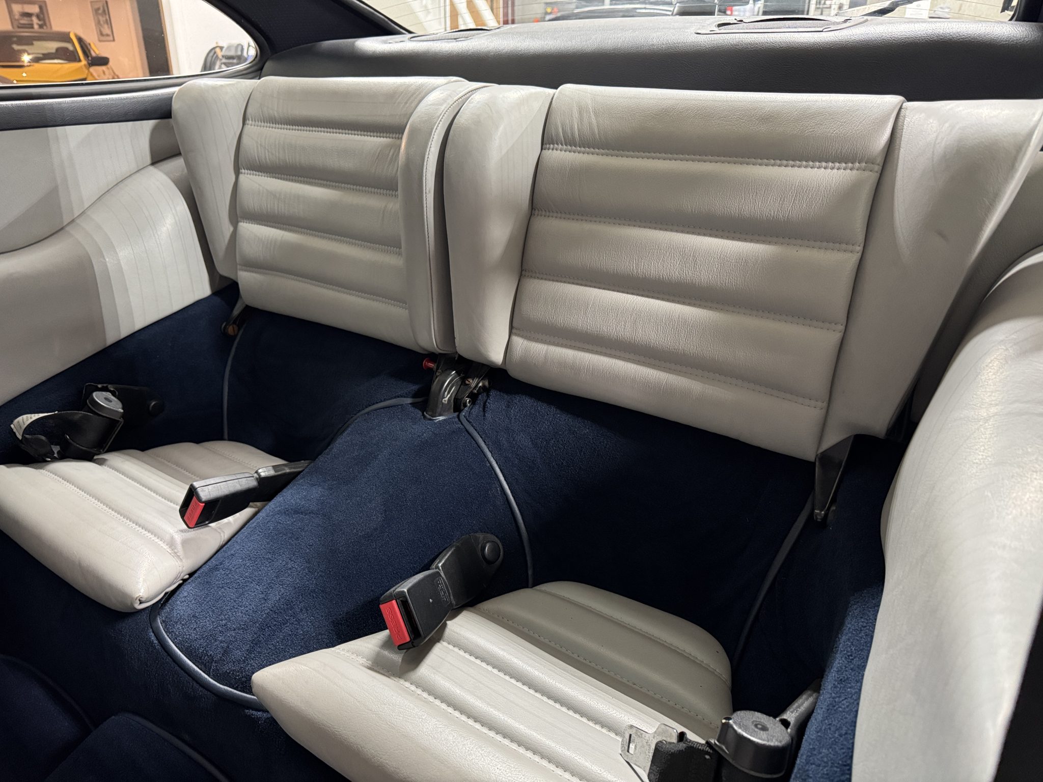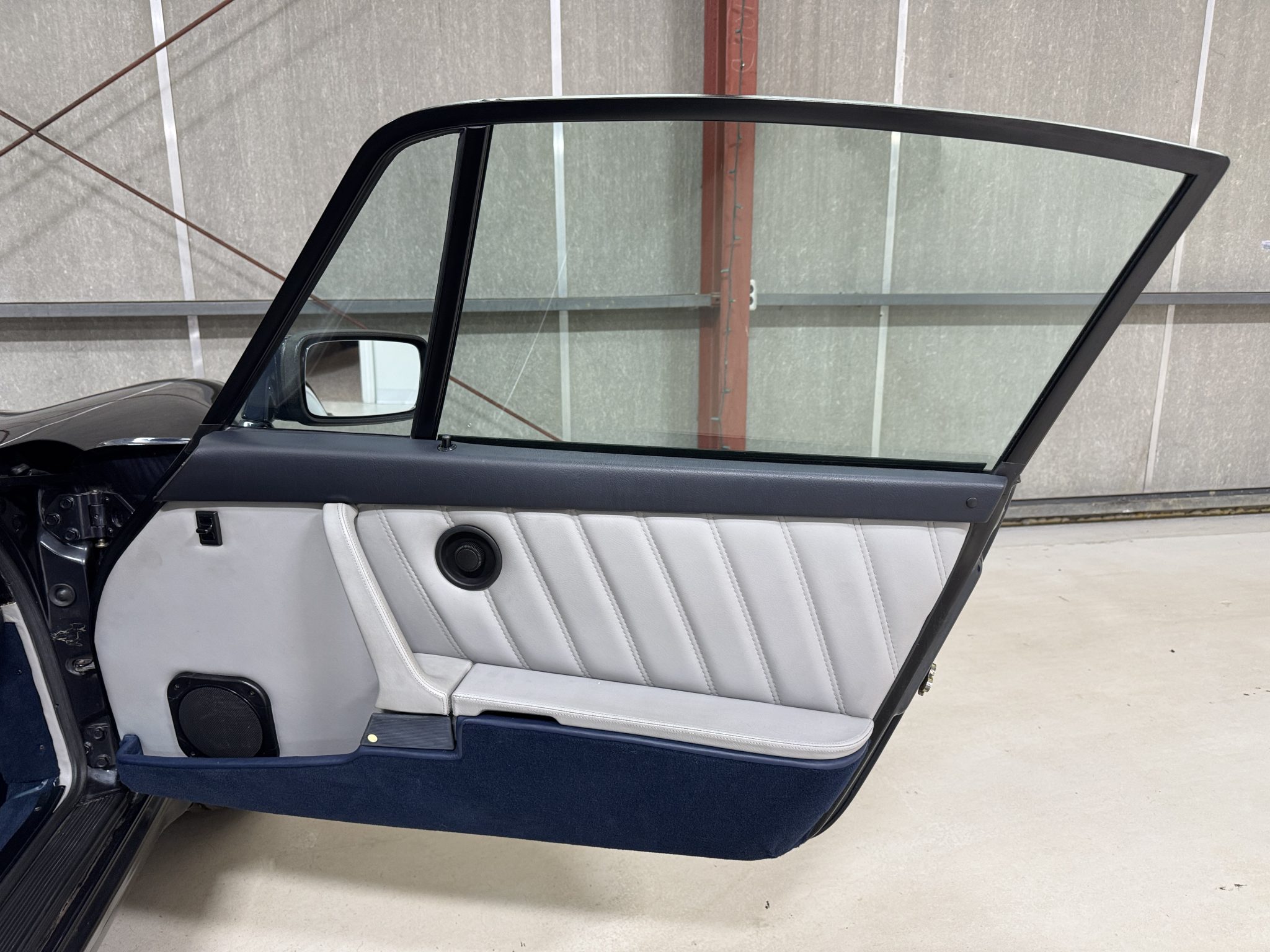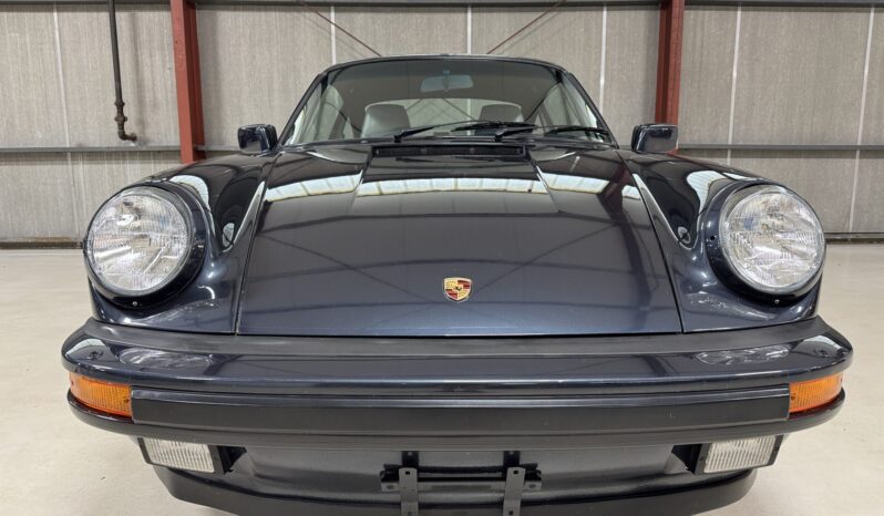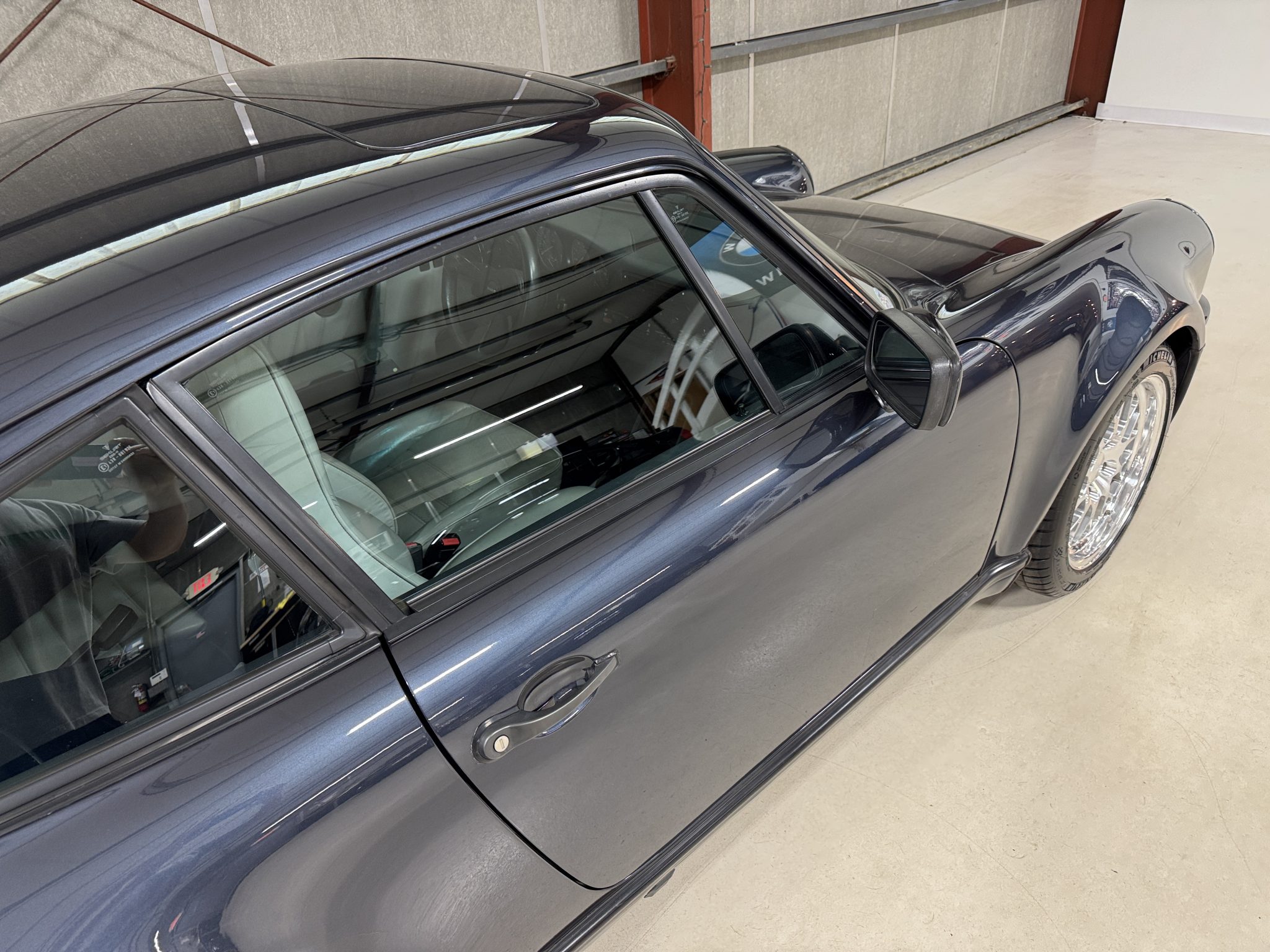 This 1987 Porsche 911 Turbo coupe is finished in metallic blue over gray leather upholstery and is powered by a turbocharged 3.3-liter flat-six that has been modified with a K27 turbocharger, an Andial fuel-enrichment system, and an aftermarket intercooler, airbox, exhaust, and camshafts. Shifting is through a four-speed manual transaxle with a WEVO shifter, and further equipment includes a limited-slip differential, revised suspension components, and staggered-width 17” Fikse wheels along with a sunroof, a tea tray rear spoiler, a MOMO steering wheel, a Blaupunkt cassette stereo, and power-adjustable front seats.