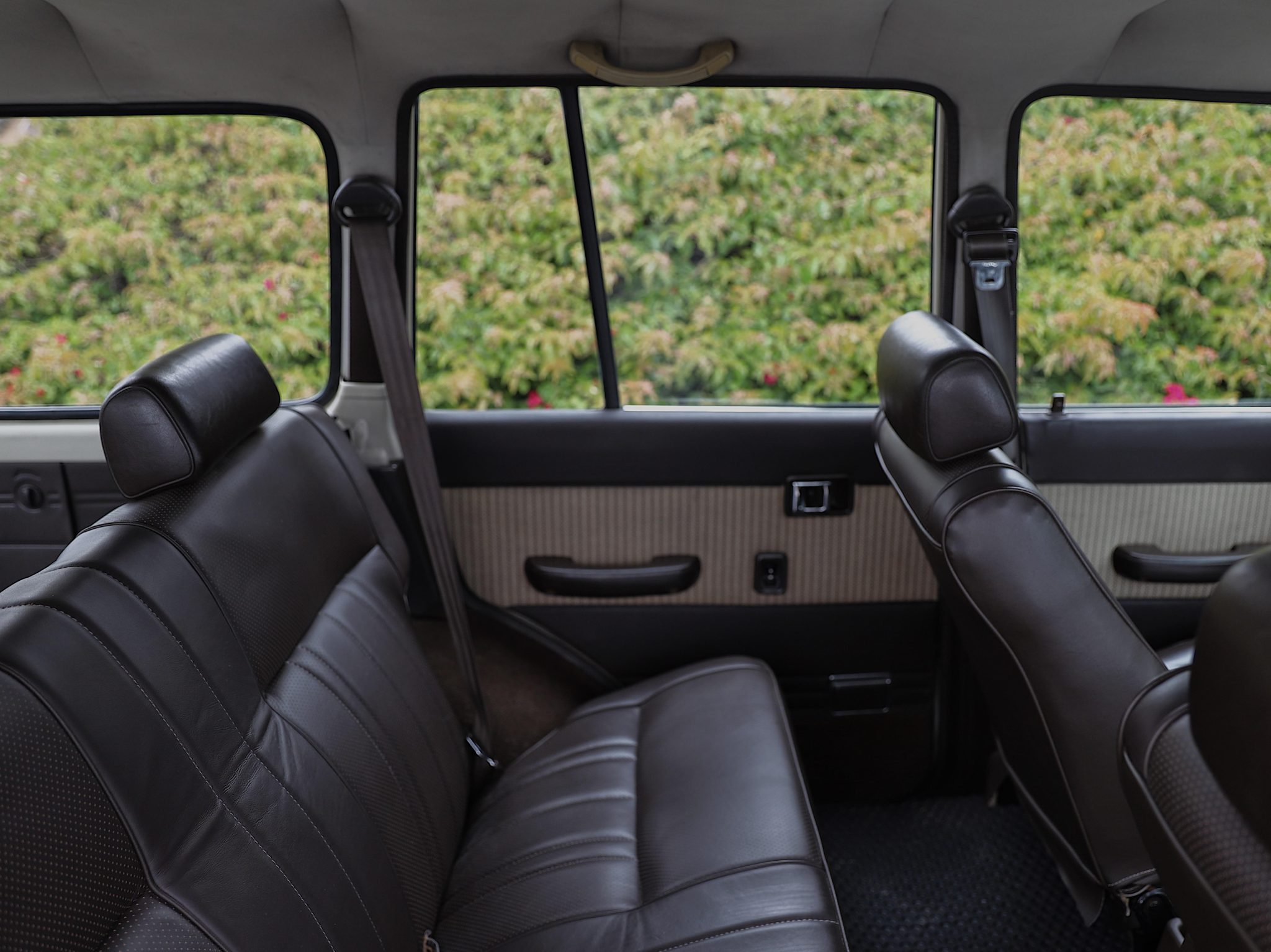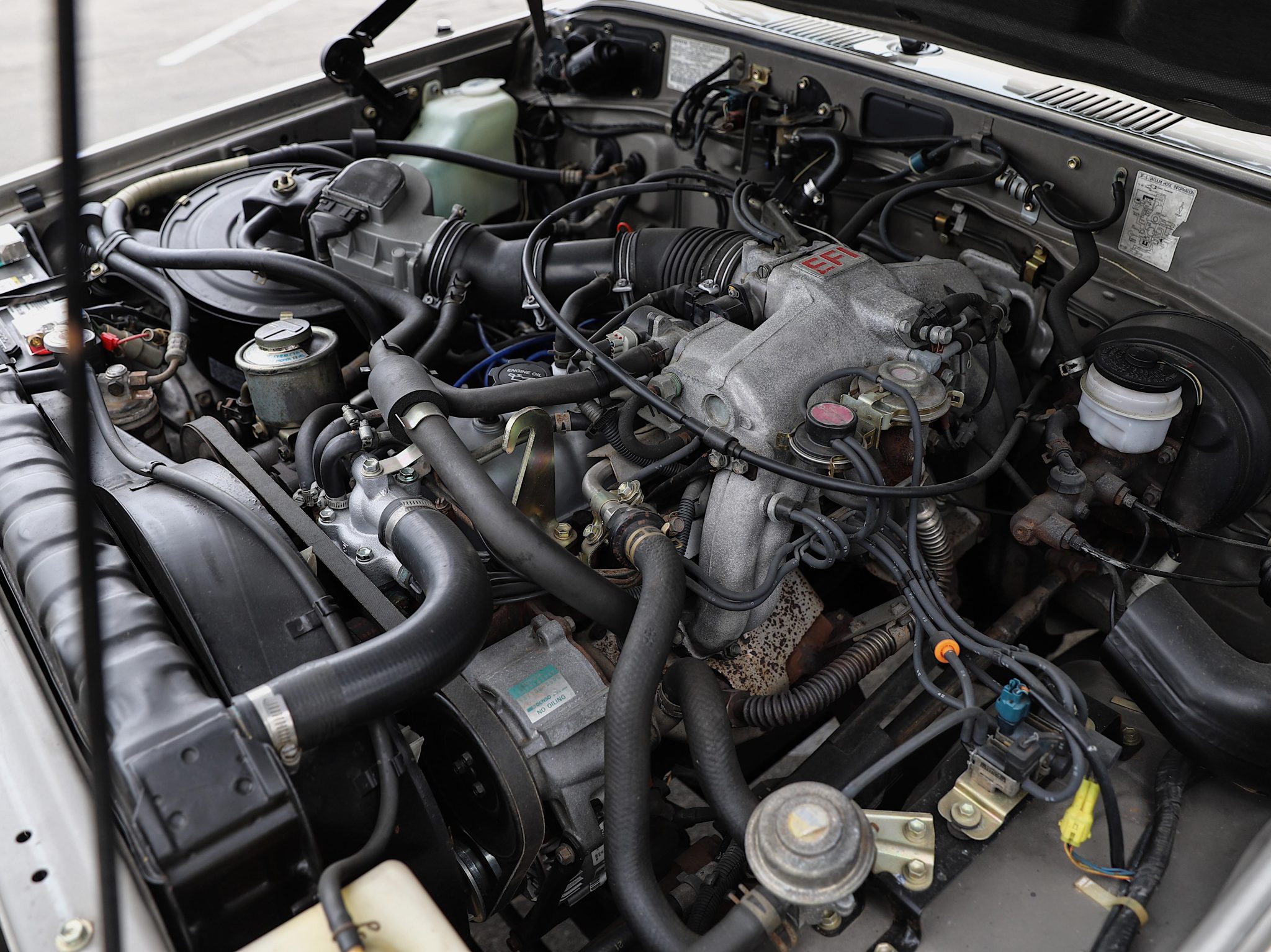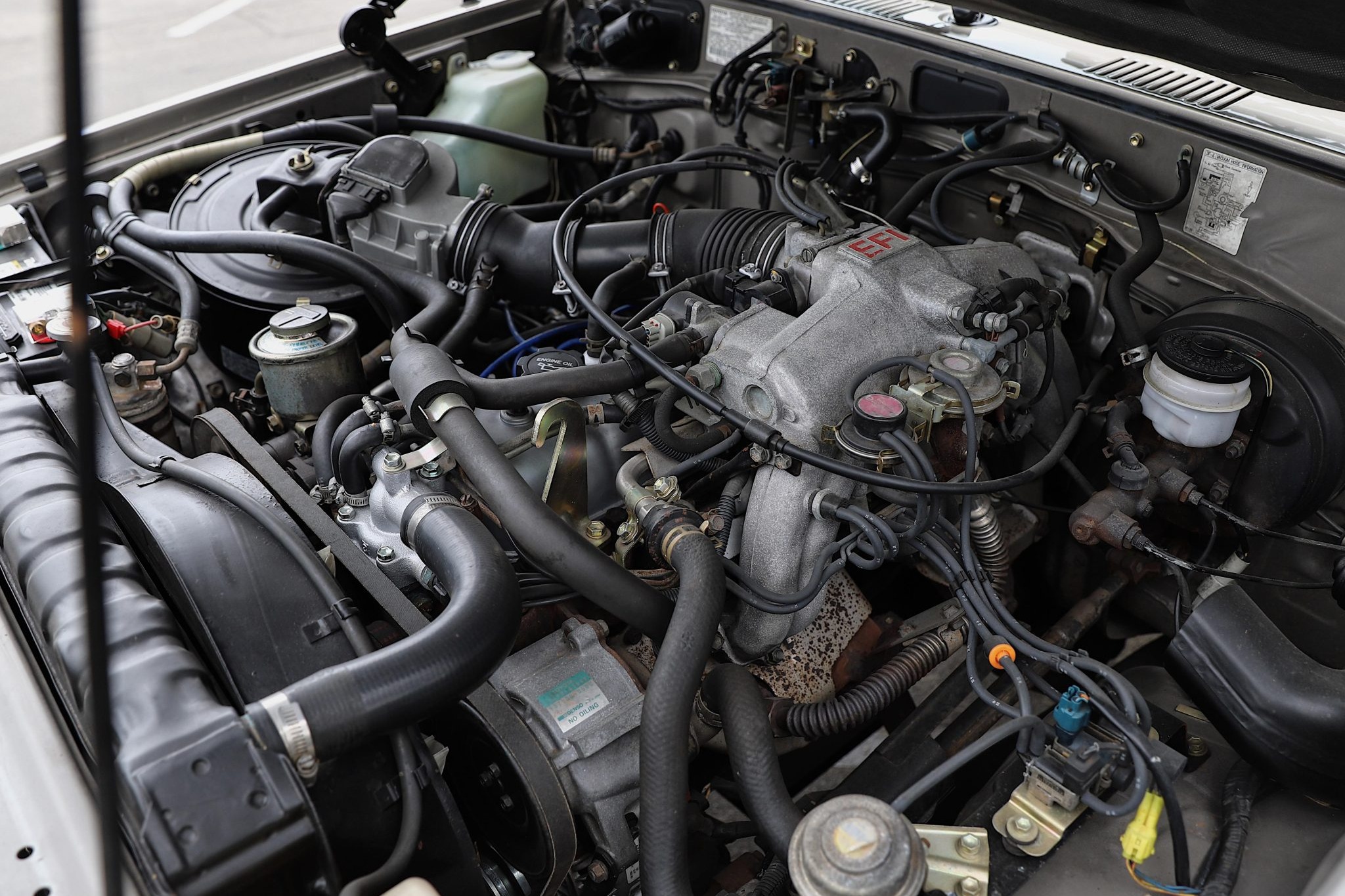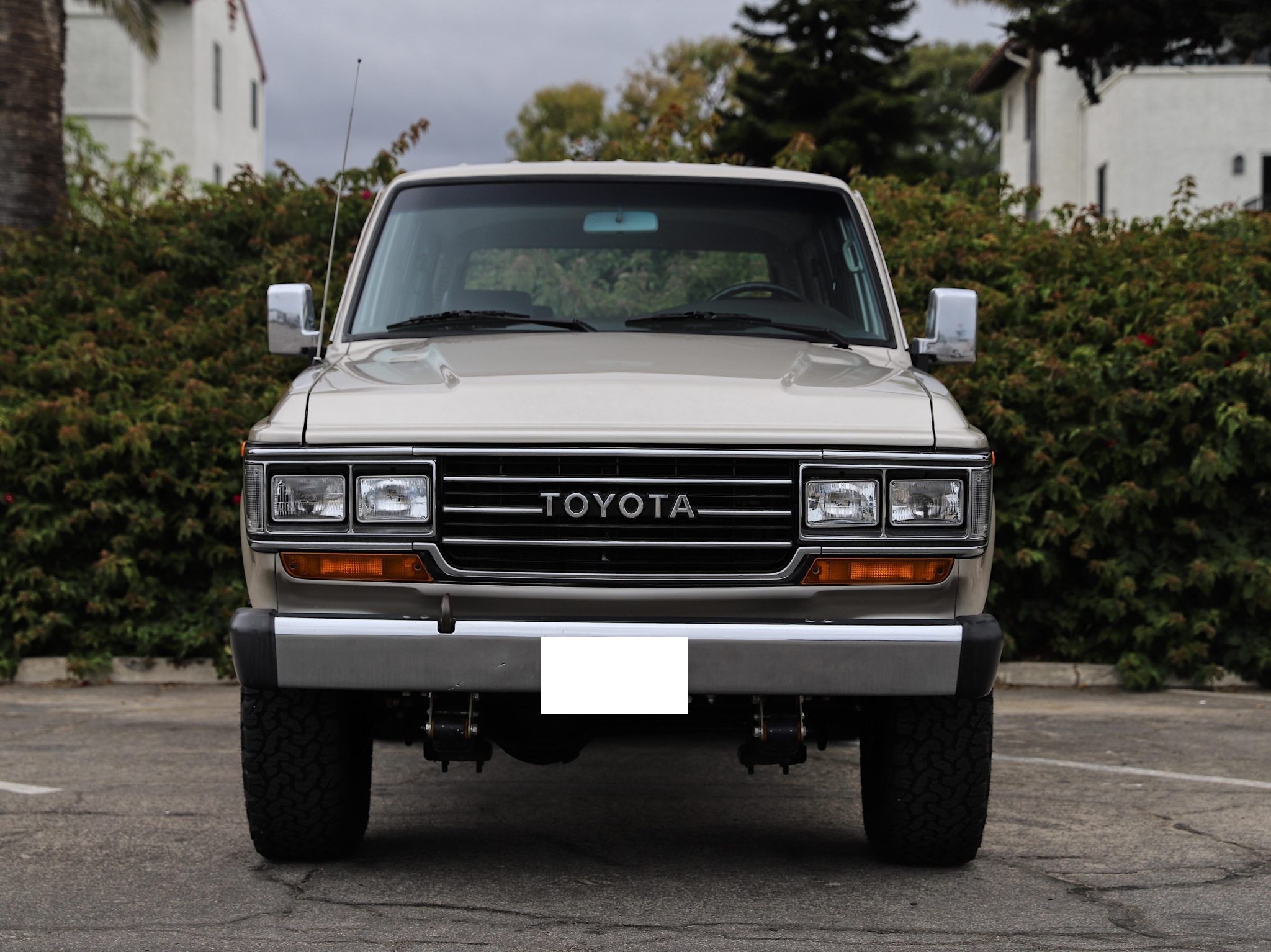 Finished in Beige Metallic over brown upholstery, the truck is powered by a 4.0L 3F-E inline-six linked with a four-speed automatic transmission and a two-speed transfer case. Equipment includes electronic fuel injection, power steering, manually locking front hubs, an Old Man Emu 2″ suspension lift, front disc brakes, 15″ steel wheels, 31″ BFGoodrich tires, chrome bumpers, air conditioning, power windows, a rearview camera, and Kenwood touchscreen infotainment.