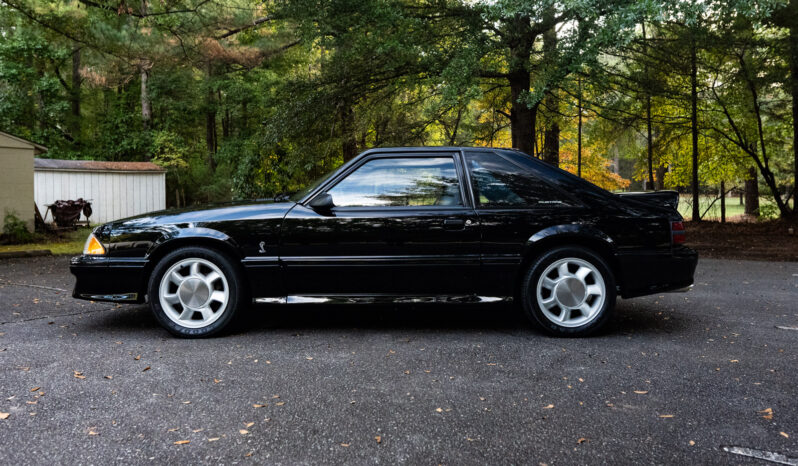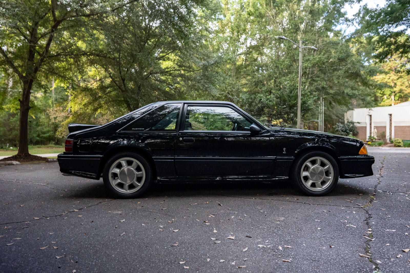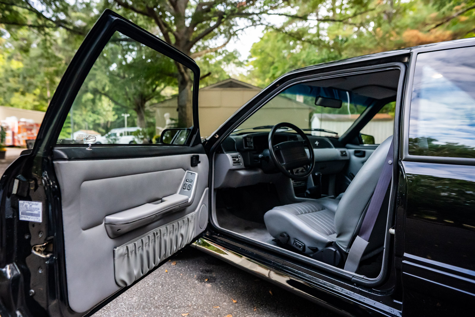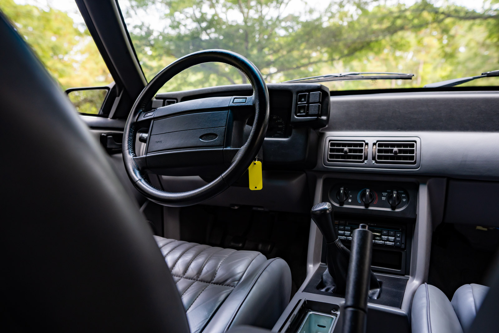 This 1993 Ford Mustang SVT Cobra shows 32k miles and is powered by a 302ci V8 linked with a five-speed manual transmission and a limited-slip differential. Finished in black over Opal Grey leather, the car is equipped with 17″ turbine-style alloy wheels, four-wheel disc brakes, a revised body kit, a rear spoiler, fog lights, air conditioning, a CD stereo, and power windows, door locks, and mirrors.
