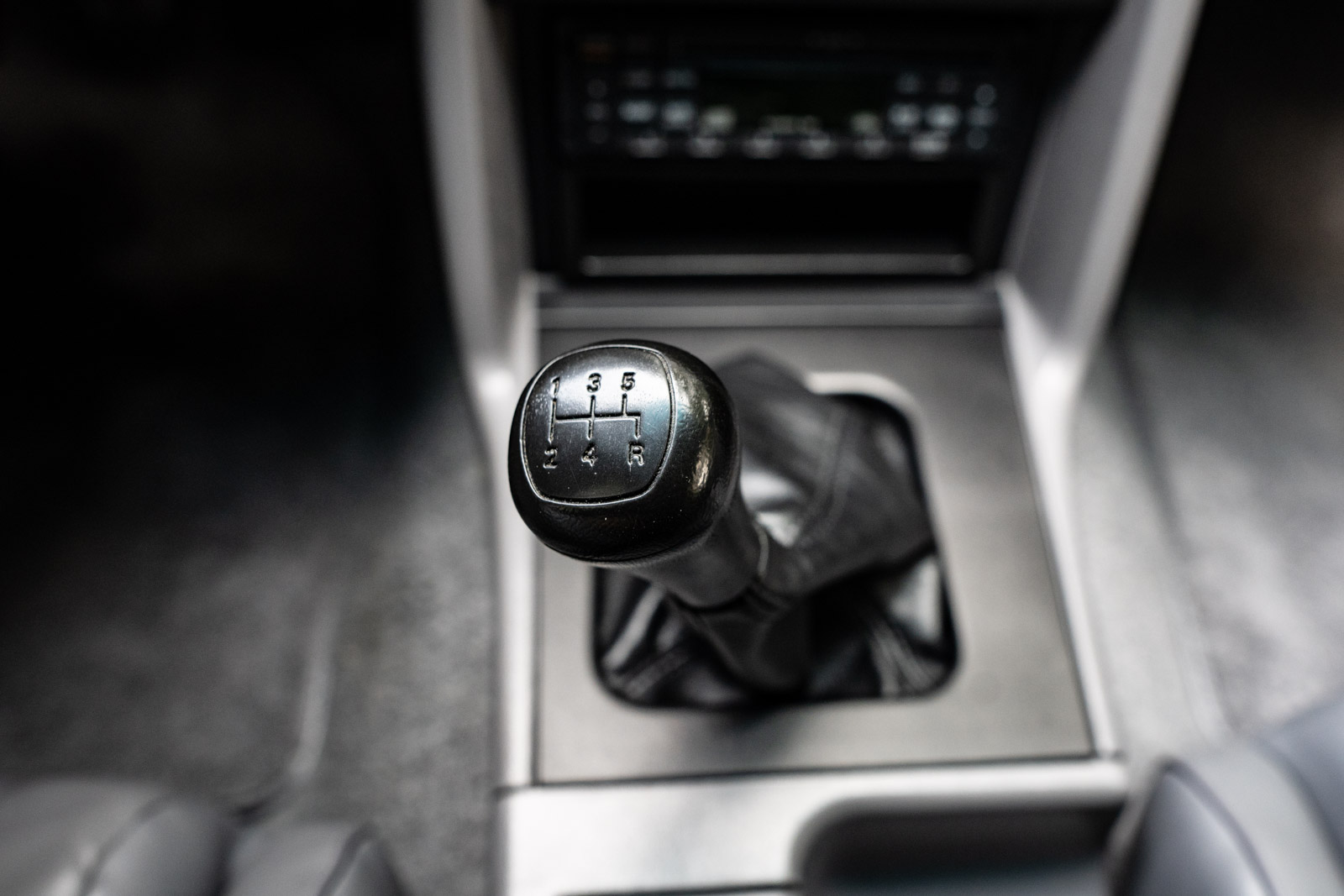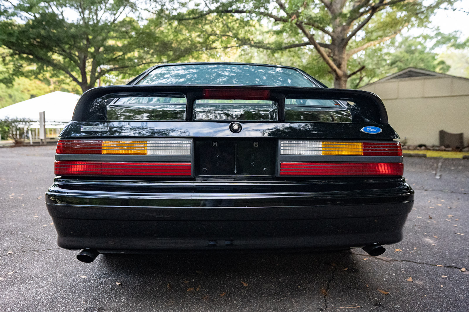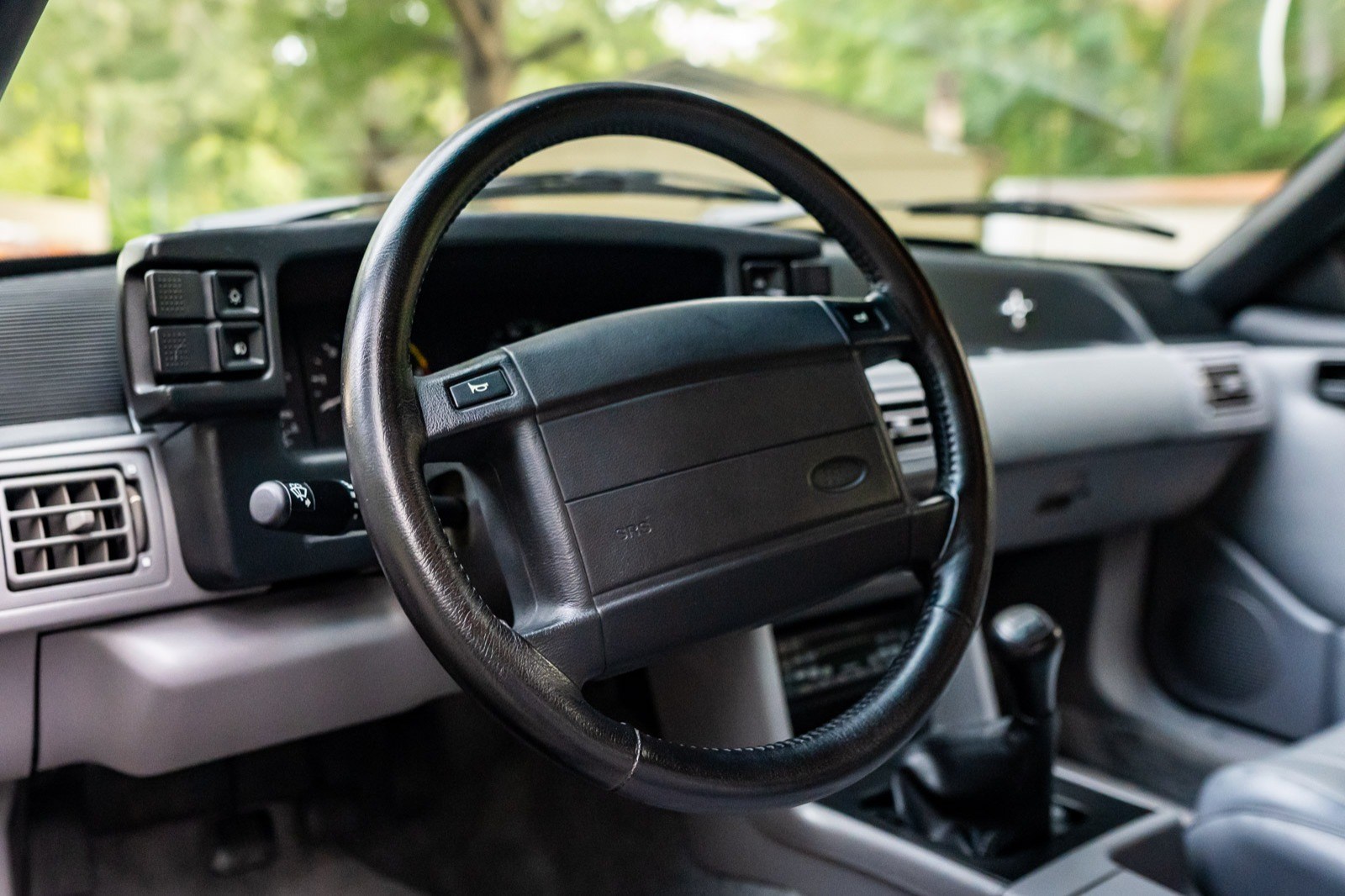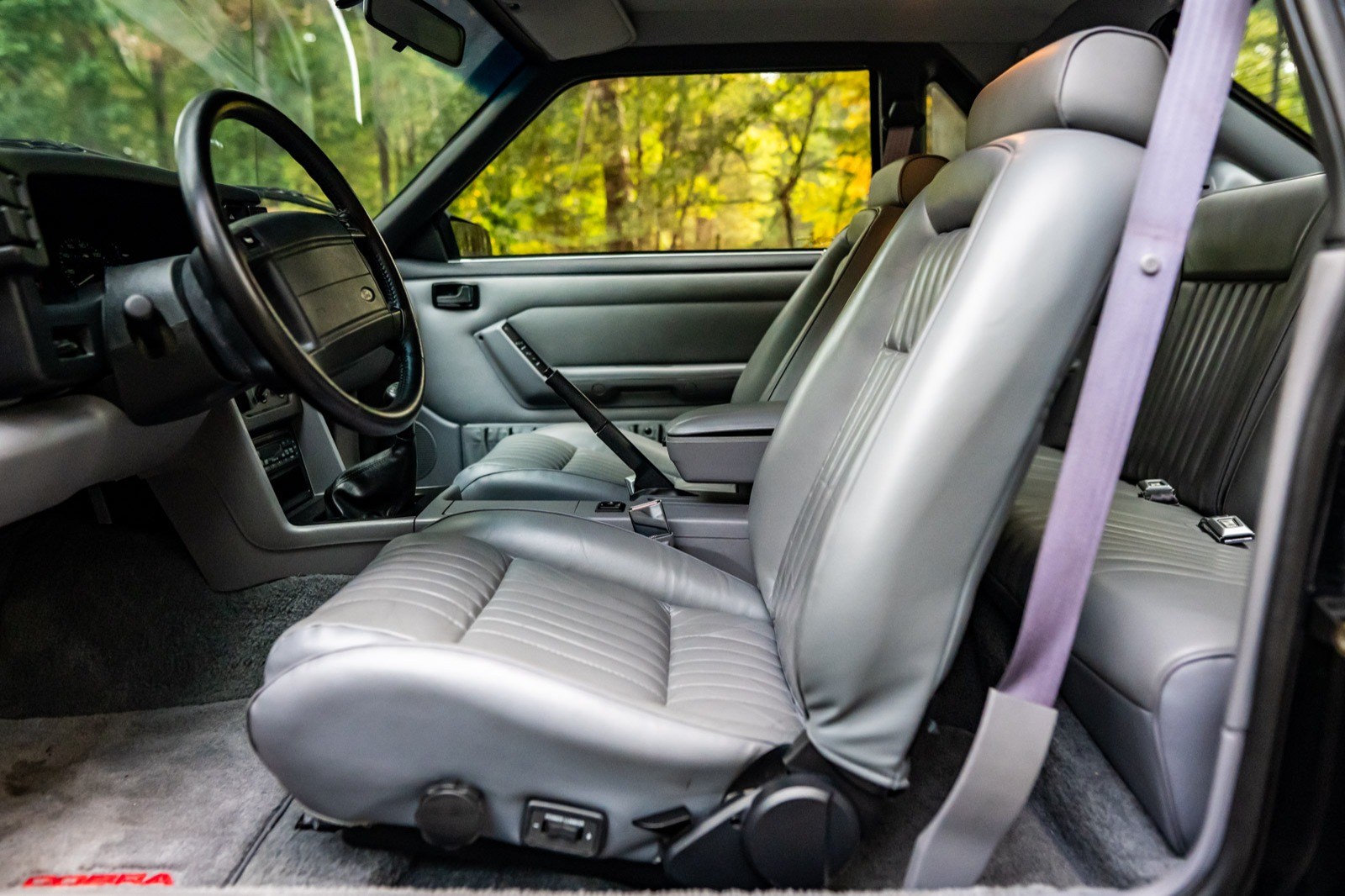 This 1993 Ford Mustang SVT Cobra shows 32k miles and is powered by a 302ci V8 linked with a five-speed manual transmission and a limited-slip differential. Finished in black over Opal Grey leather, the car is equipped with 17″ turbine-style alloy wheels, four-wheel disc brakes, a revised body kit, a rear spoiler, fog lights, air conditioning, a CD stereo, and power windows, door locks, and mirrors.