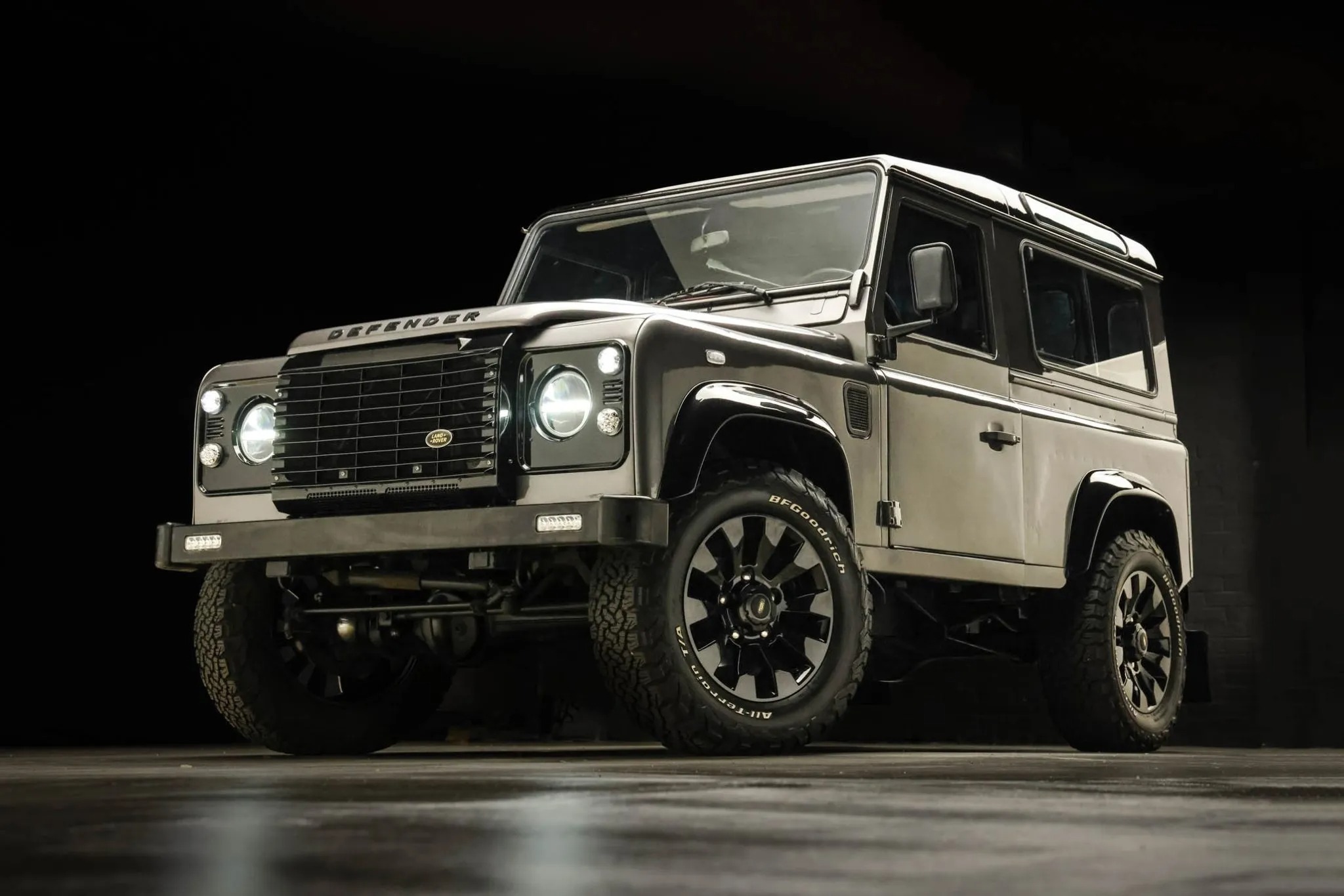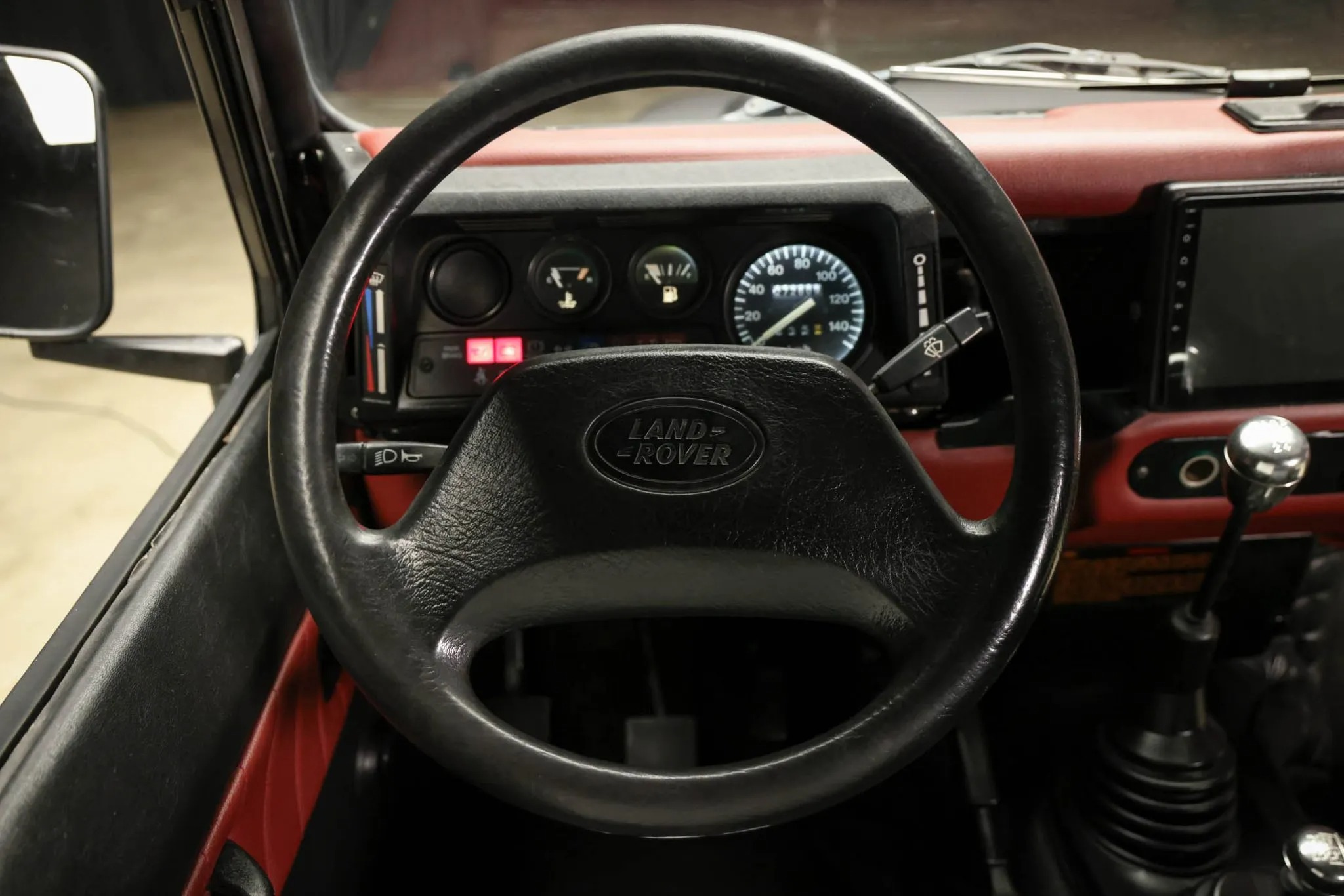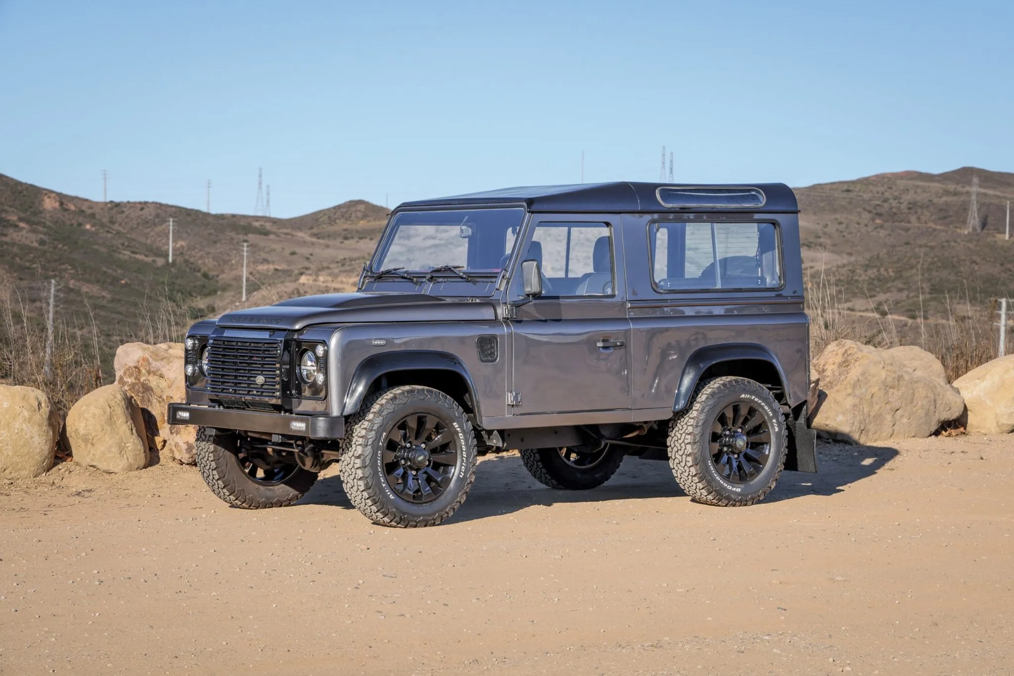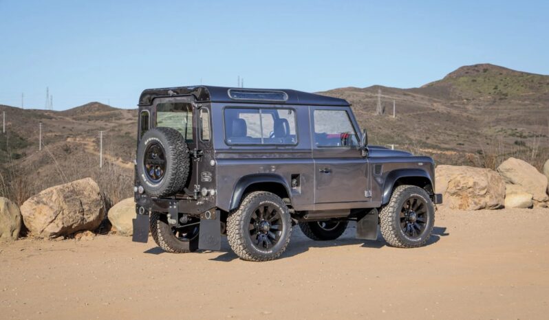This 1993 Land Rover Defender 90 is a left-hand-drive example that was said to have undergone a refurbishment , which included refreshing the body and frame, overhauling the cabin, and refurbishing the drivetrain. The truck is finished in gray over a black vinyl interior, and power is provided by a 2.5-liter turbodiesel inline-four paired with a five-speed manual transmission, a dual-range transfer case, and a locking center differential. Equipment includes aftermarket 18″ wheels, LED lighting, inward-facing jump seats, and an infotainment system with smartphone integration and a rear-view camera. This Defender 90 shows 273k kilometers (~169k miles),