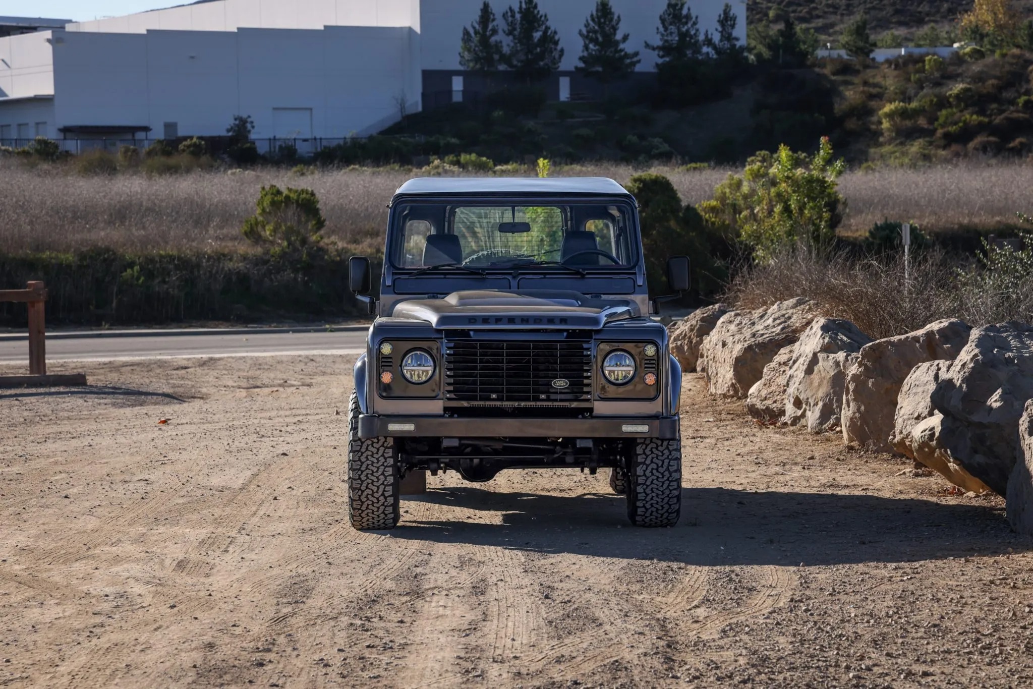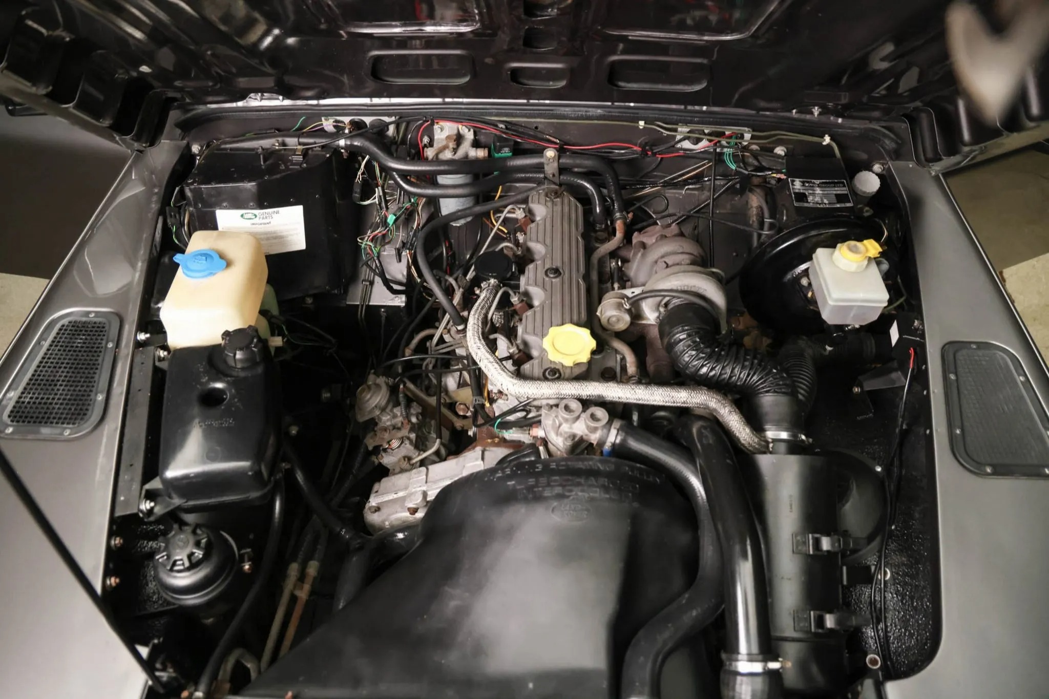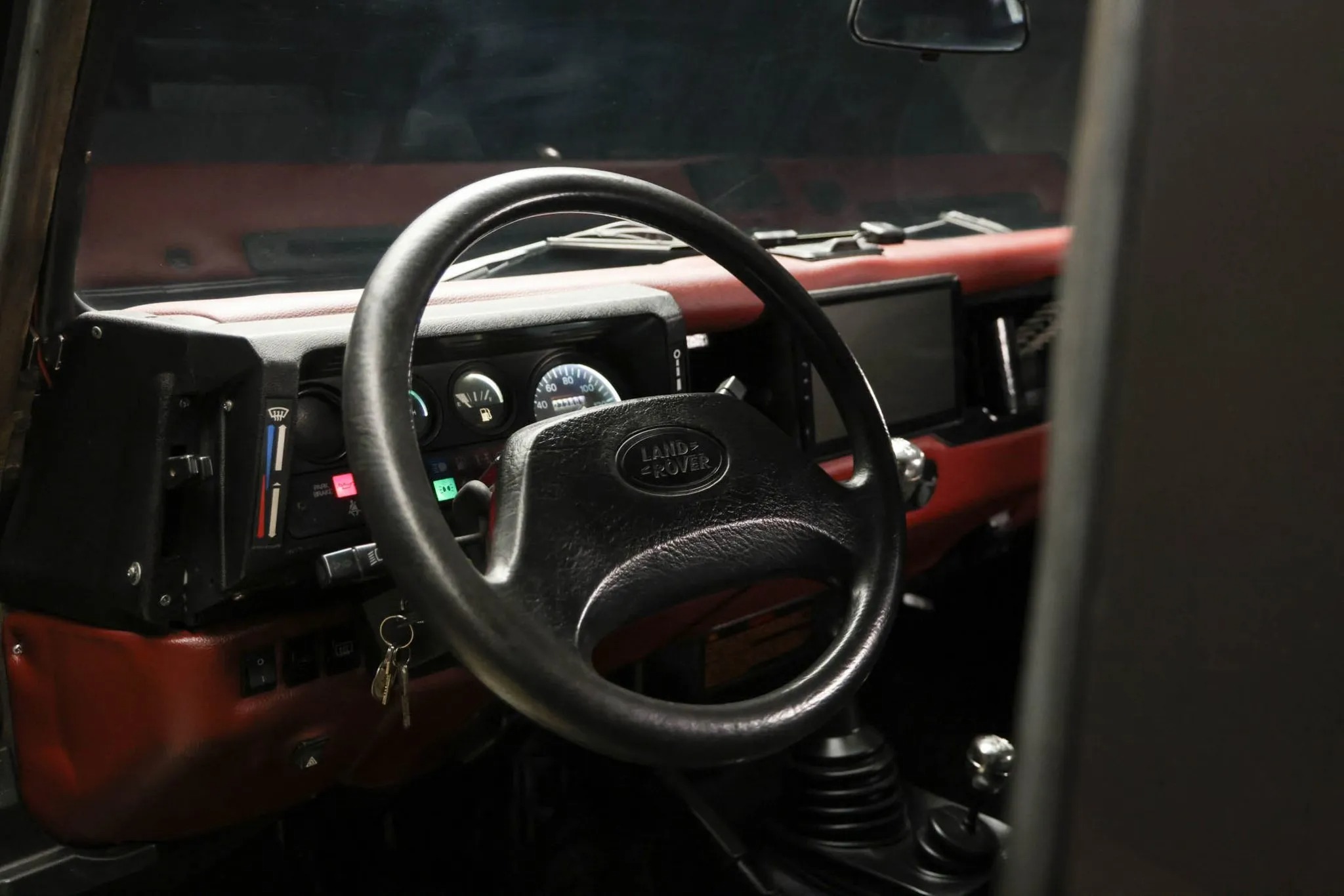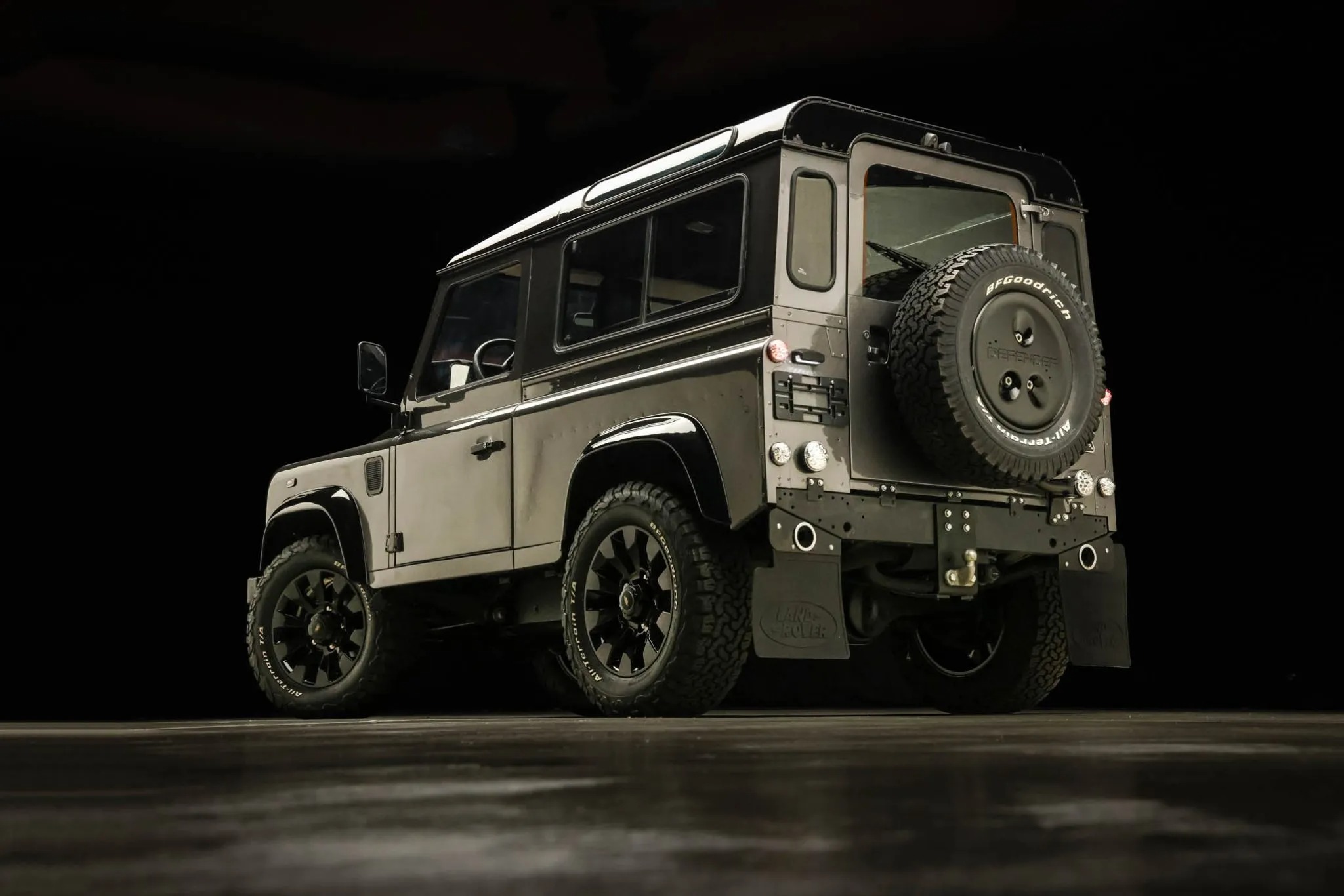 This 1993 Land Rover Defender 90 is a left-hand-drive example that was said to have undergone a refurbishment , which included refreshing the body and frame, overhauling the cabin, and refurbishing the drivetrain. The truck is finished in gray over a black vinyl interior, and power is provided by a 2.5-liter turbodiesel inline-four paired with a five-speed manual transmission, a dual-range transfer case, and a locking center differential. Equipment includes aftermarket 18″ wheels, LED lighting, inward-facing jump seats, and an infotainment system with smartphone integration and a rear-view camera. This Defender 90 shows 273k kilometers (~169k miles),