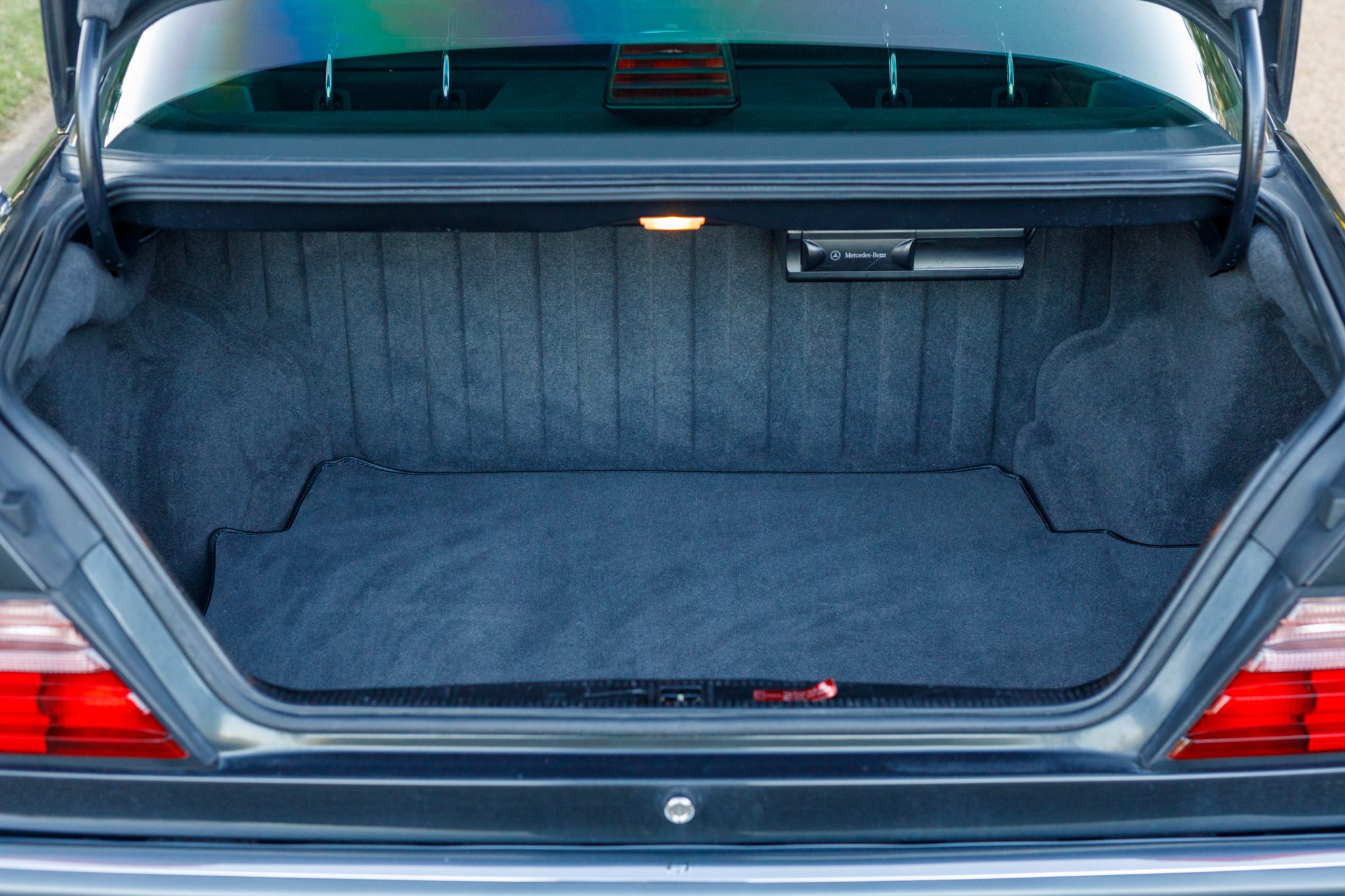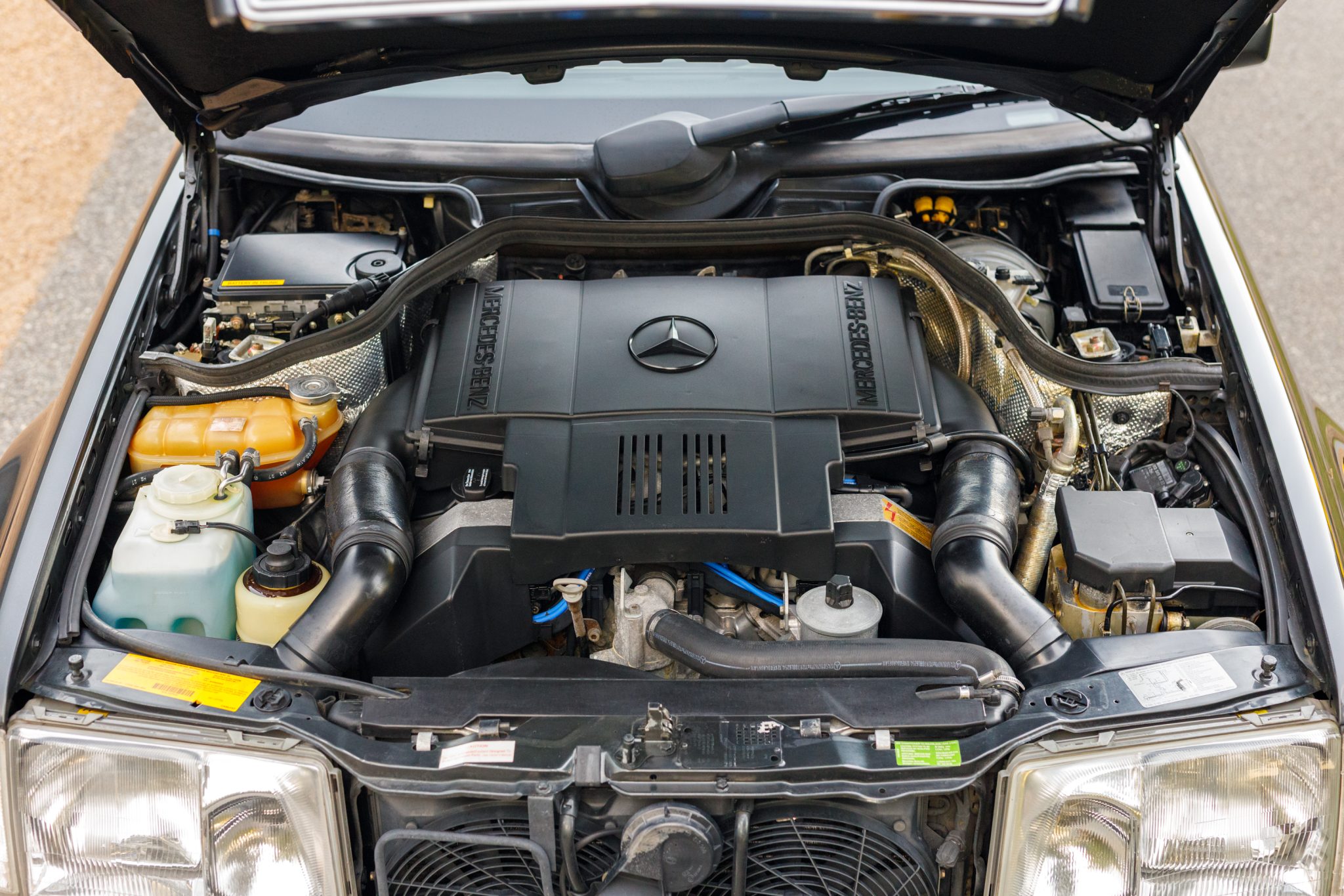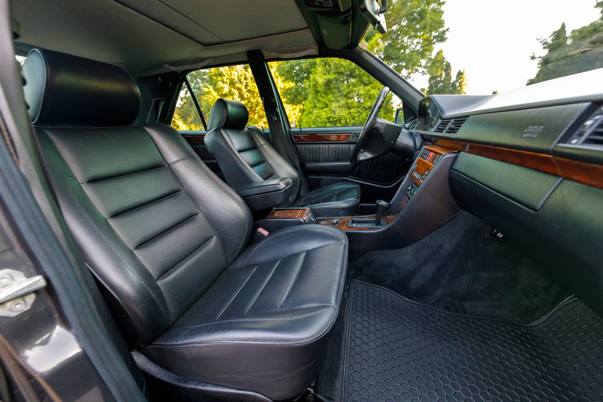 This 1994 Mercedes-Benz E500 is finished in Black Pearl Metallic over black leather upholstery and is powered by a 5.0-liter M119 V8 paired with a four-speed automatic transmission. Equipment includes a power sunroof, fog lights, self-leveling rear suspension, Automatic Slip Control, heated power-adjustable front seats, automatic climate control, a Continental Bluetooth stereo, and cruise control.