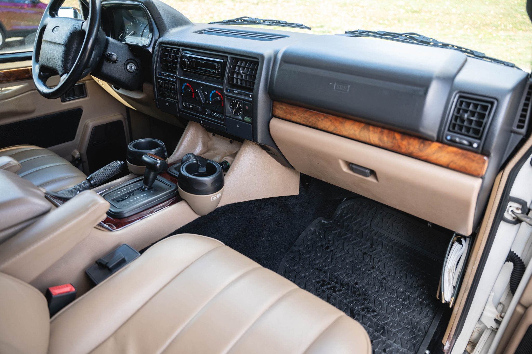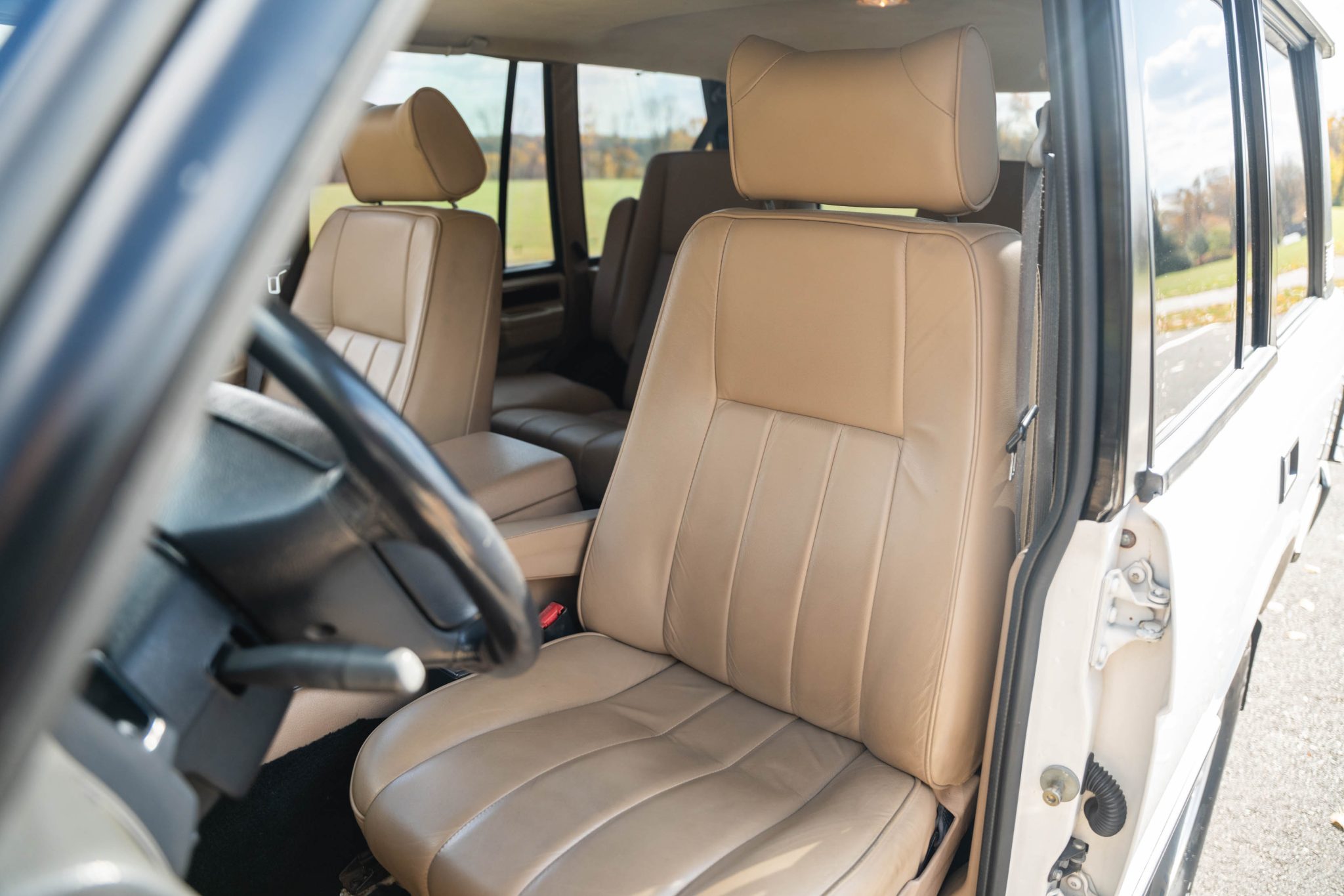 Subsequent work included rebuilding the 3.9-liter V8 and repairing the windshield, exterior seals, lights, wiring, and brake components as well as overhauling the cooling system and servicing the four-speed automatic transmission. Finished in white over tan leather, the truck also features a dual-range transfer case, a sunroof, fog lights, a receiver hitch, a coil spring conversion, 16″ TWR alloy wheels, heated power-adjustable front seats, cruise control, and air conditioning.