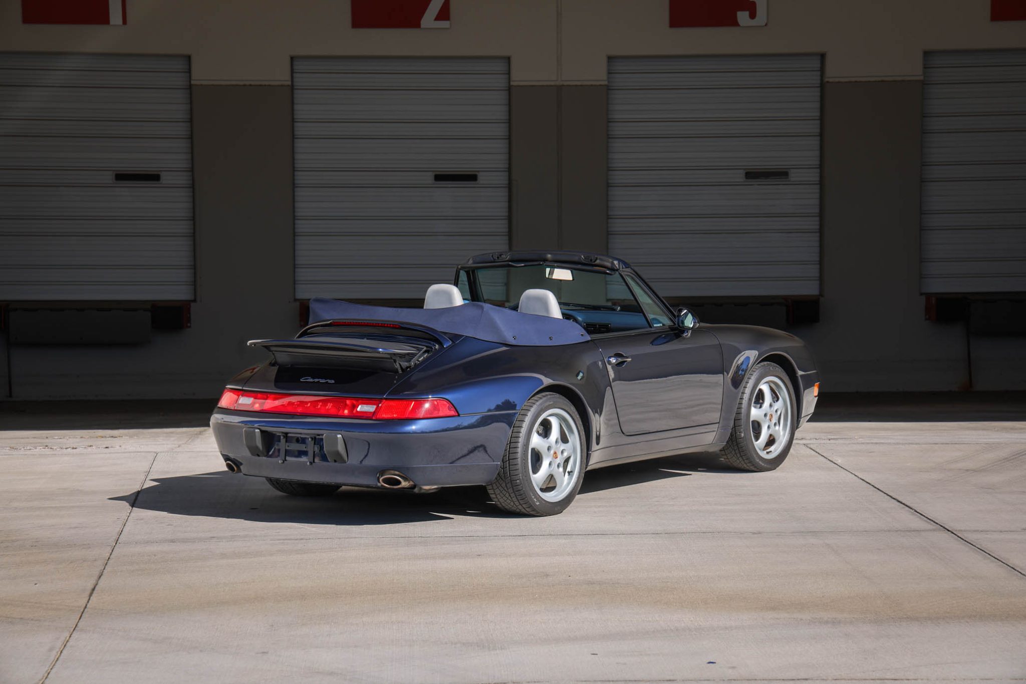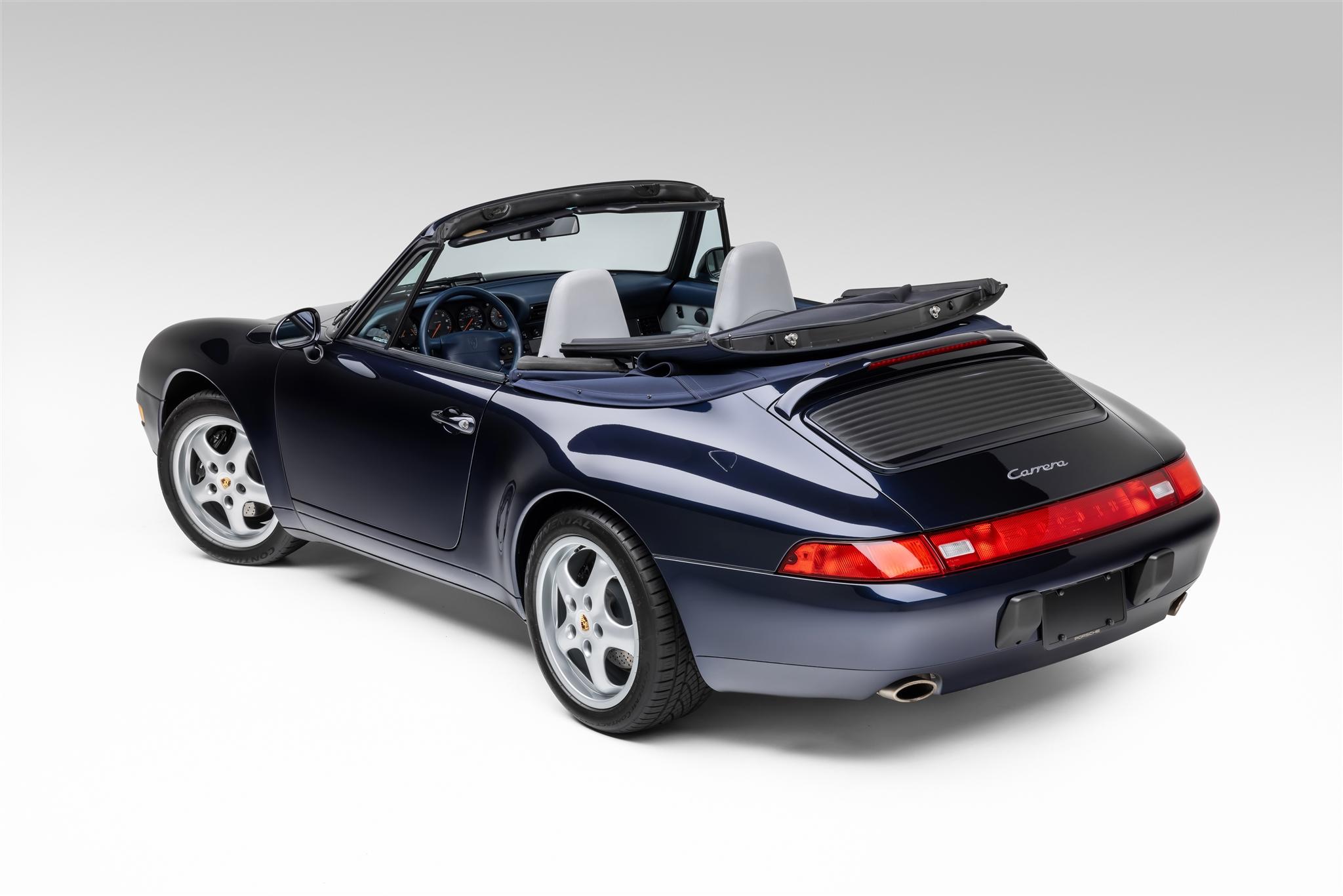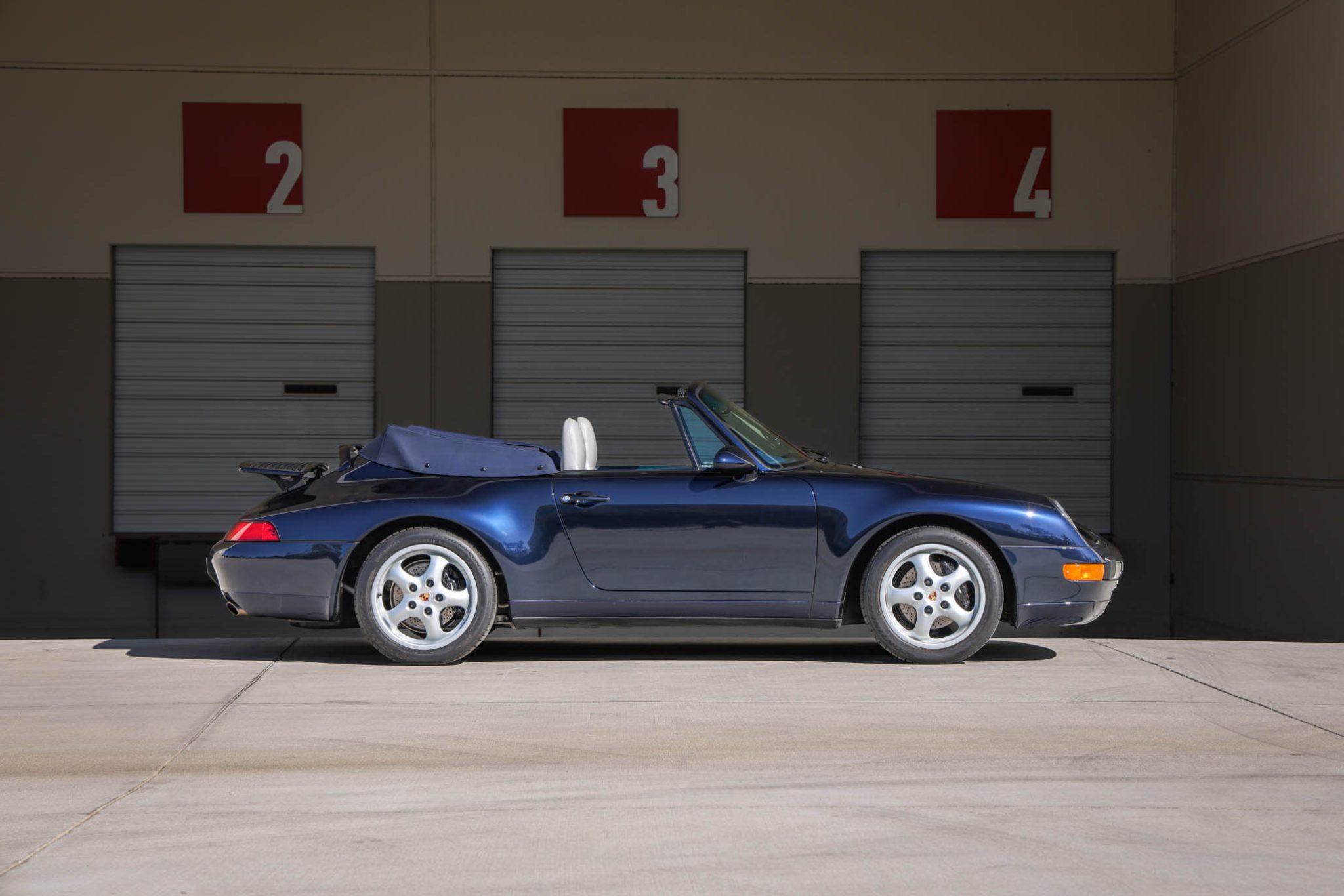 Finished in Midnight Blue Metallic over Marble Grey partial leather upholstery, the car is powered by a 3.6-liter flat-six paired with a six-speed manual transaxle. Additional equipment includes 17″ Cup II wheels, a blue soft top, headlight washers, power-adjustable front seats, air conditioning, cruise control, and a PCCM infotainment unit with Bluetooth.