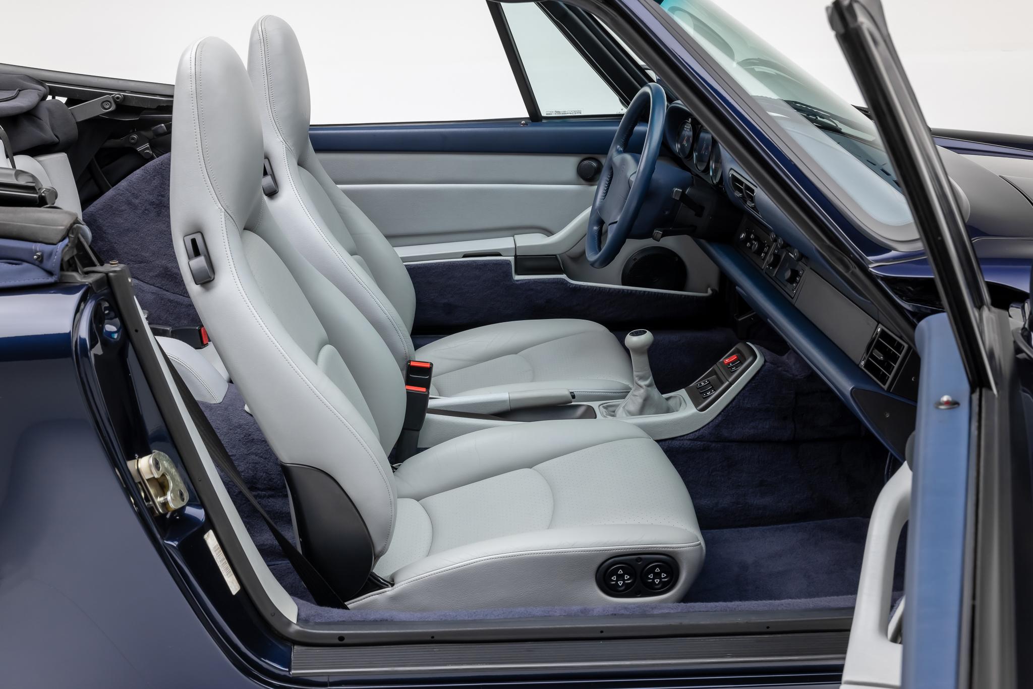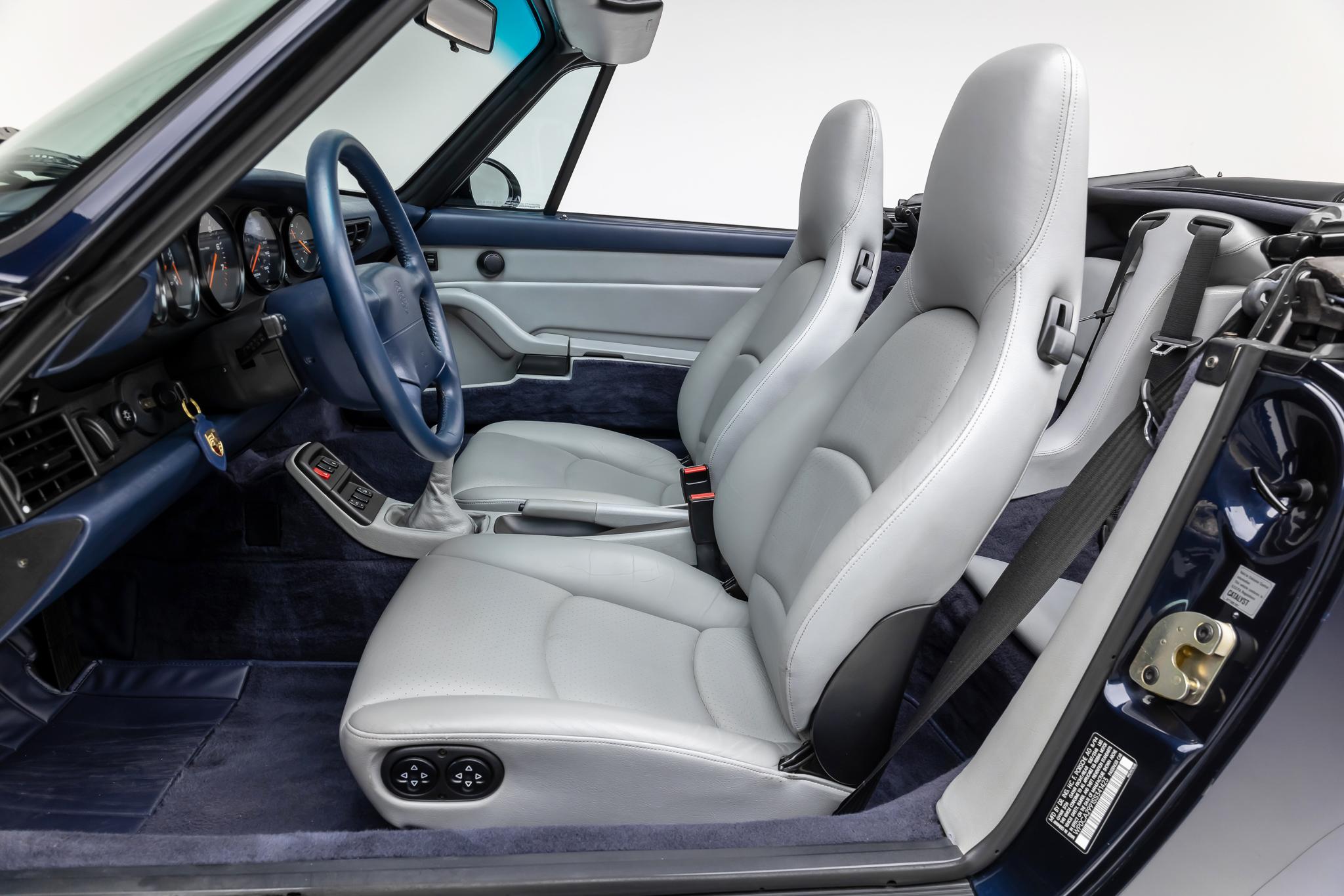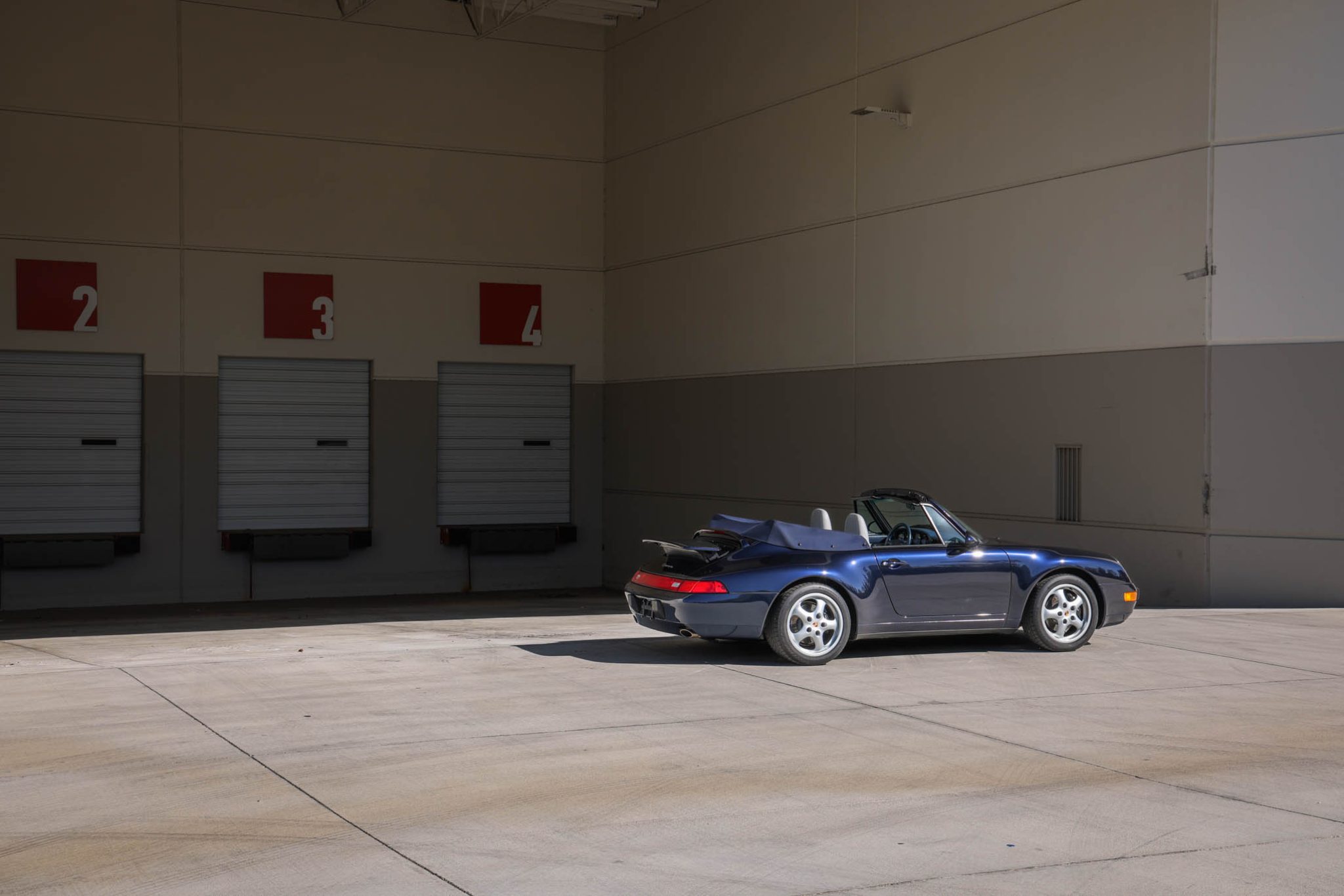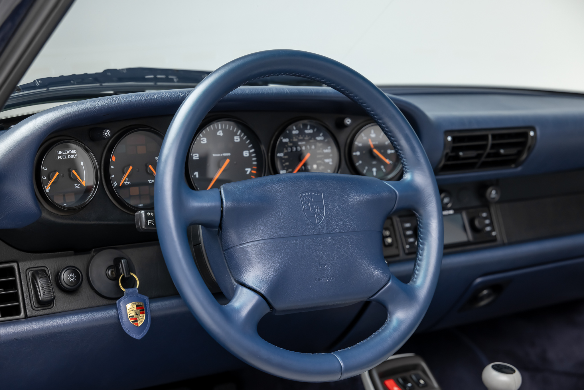 Finished in Midnight Blue Metallic over Marble Grey partial leather upholstery, the car is powered by a 3.6-liter flat-six paired with a six-speed manual transaxle. Additional equipment includes 17″ Cup II wheels, a blue soft top, headlight washers, power-adjustable front seats, air conditioning, cruise control, and a PCCM infotainment unit with Bluetooth.