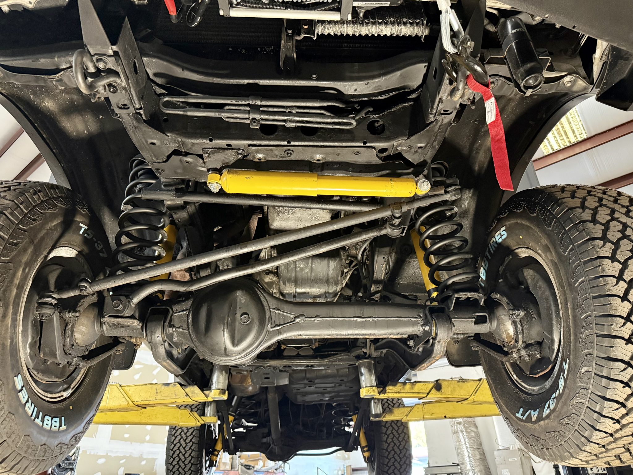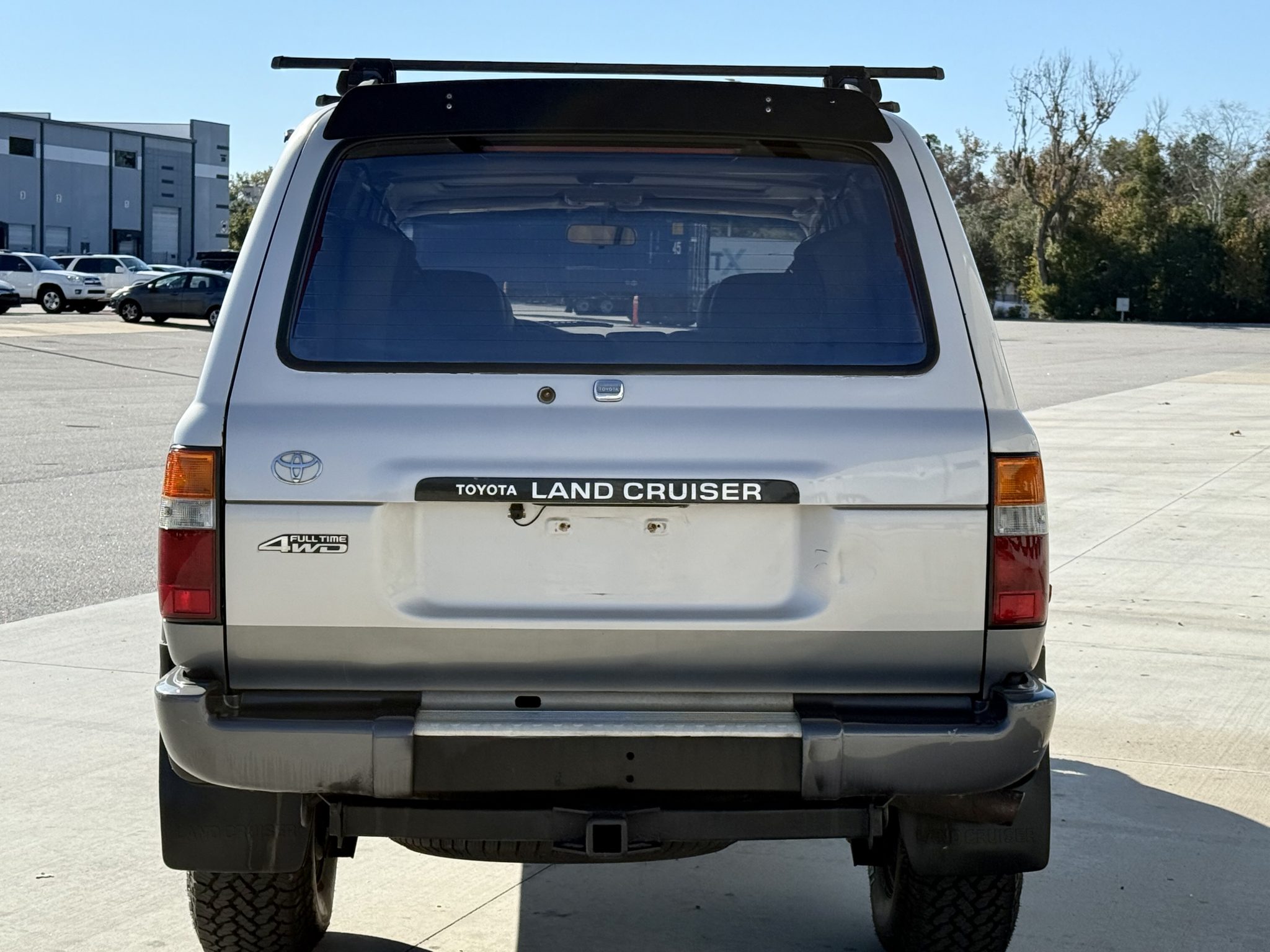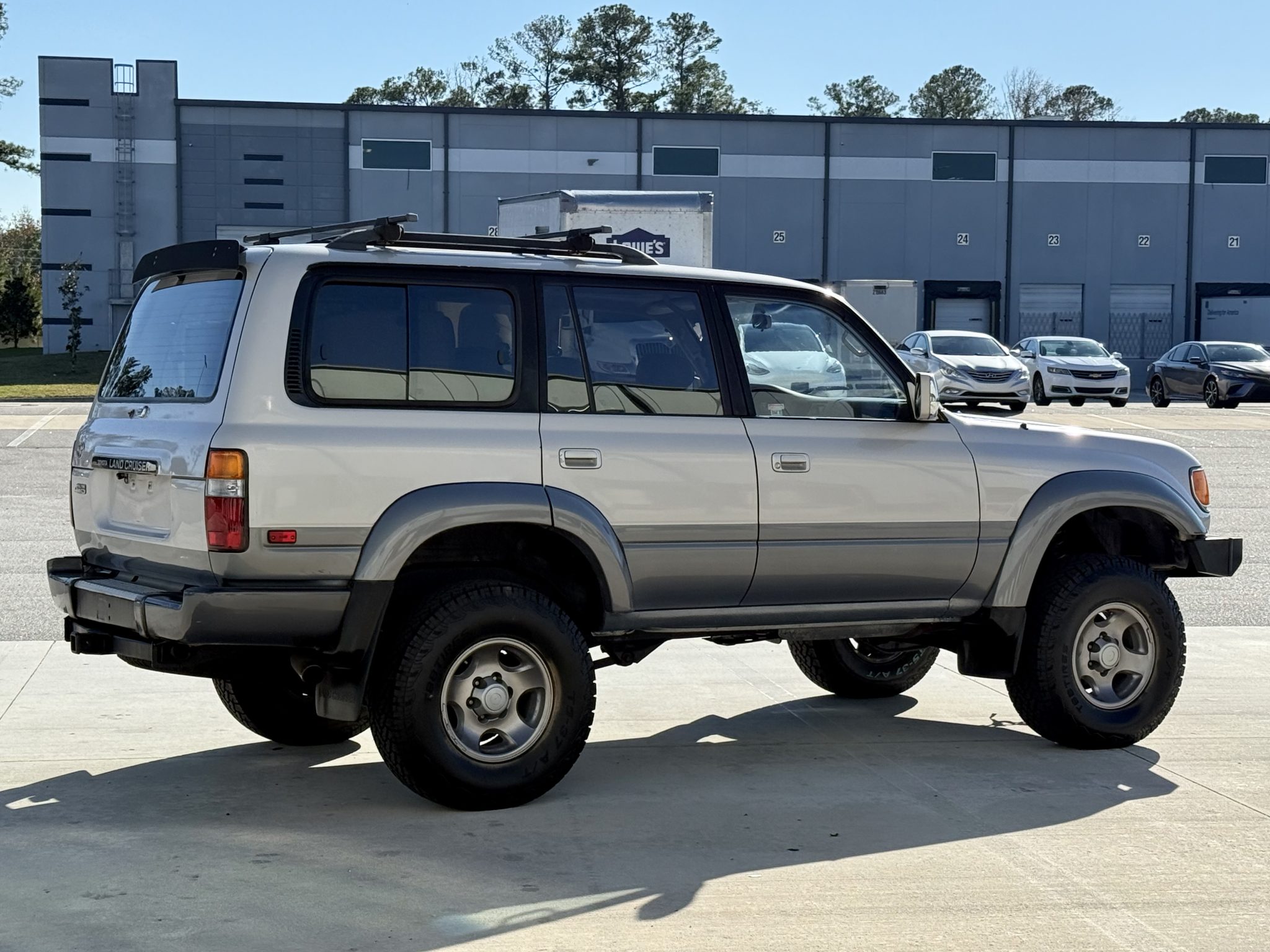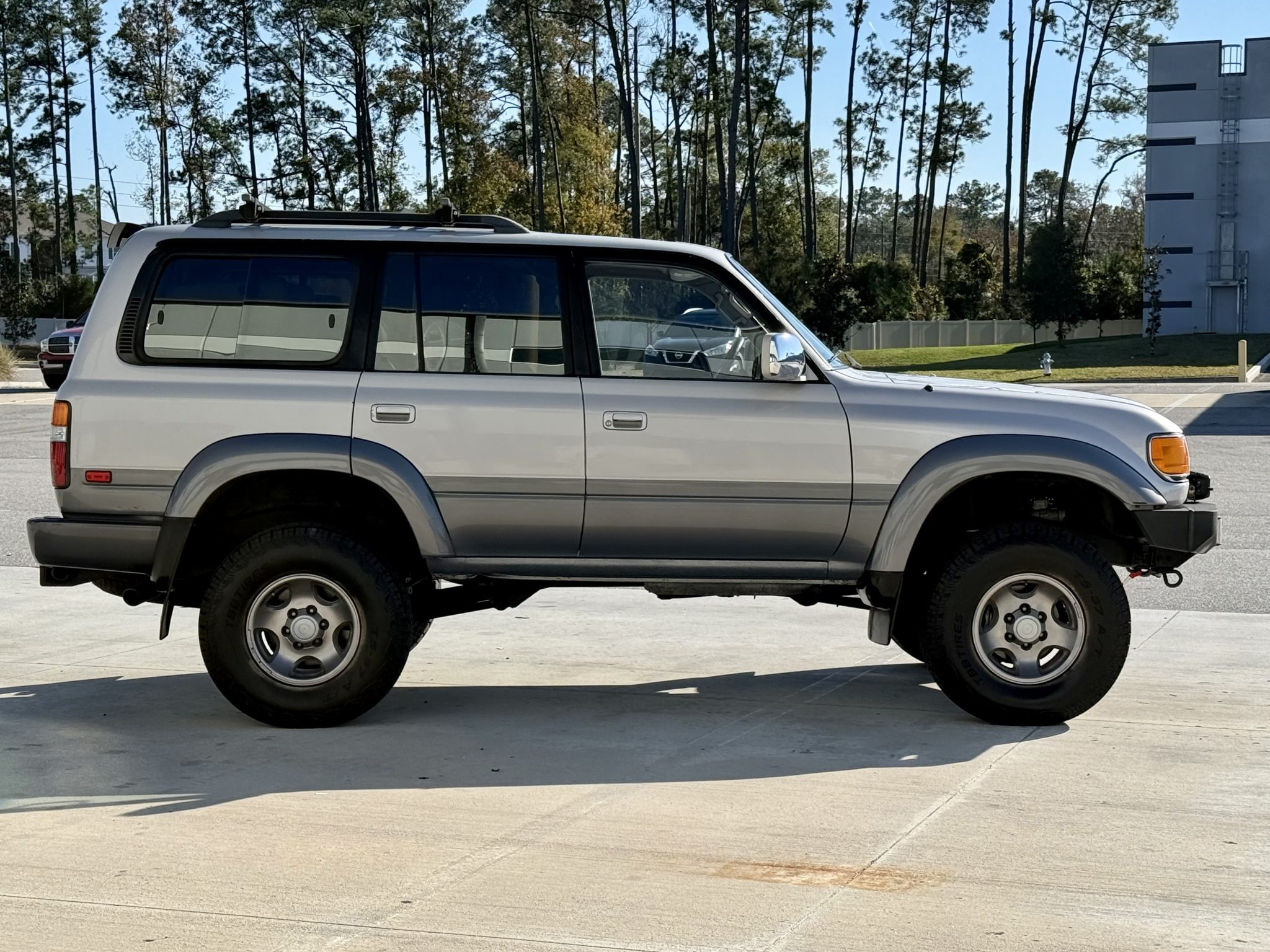 Finished in Desert Dune Pearl and Moonglow over aftermarket beige leather, the truck is powered by a 4.5L 1FZ-FE inline-six linked with a four-speed automatic transmission, a dual-range transfer case, and locking front, center, and rear differentials. It also has a receiver hitch, a rear wind deflector, a sunroof, a roof rack, a TJM front bumper, a Smittybilt winch, an Old Man Emu 3″ suspension lift kit, 16″ wheels, automatic climate control, cruise control, a digital clock, WeatherTech floor mats, power-adjustable front seats, folding third-row seats, and a Kenwood touchscreen stereo with Bluetooth connectivity.