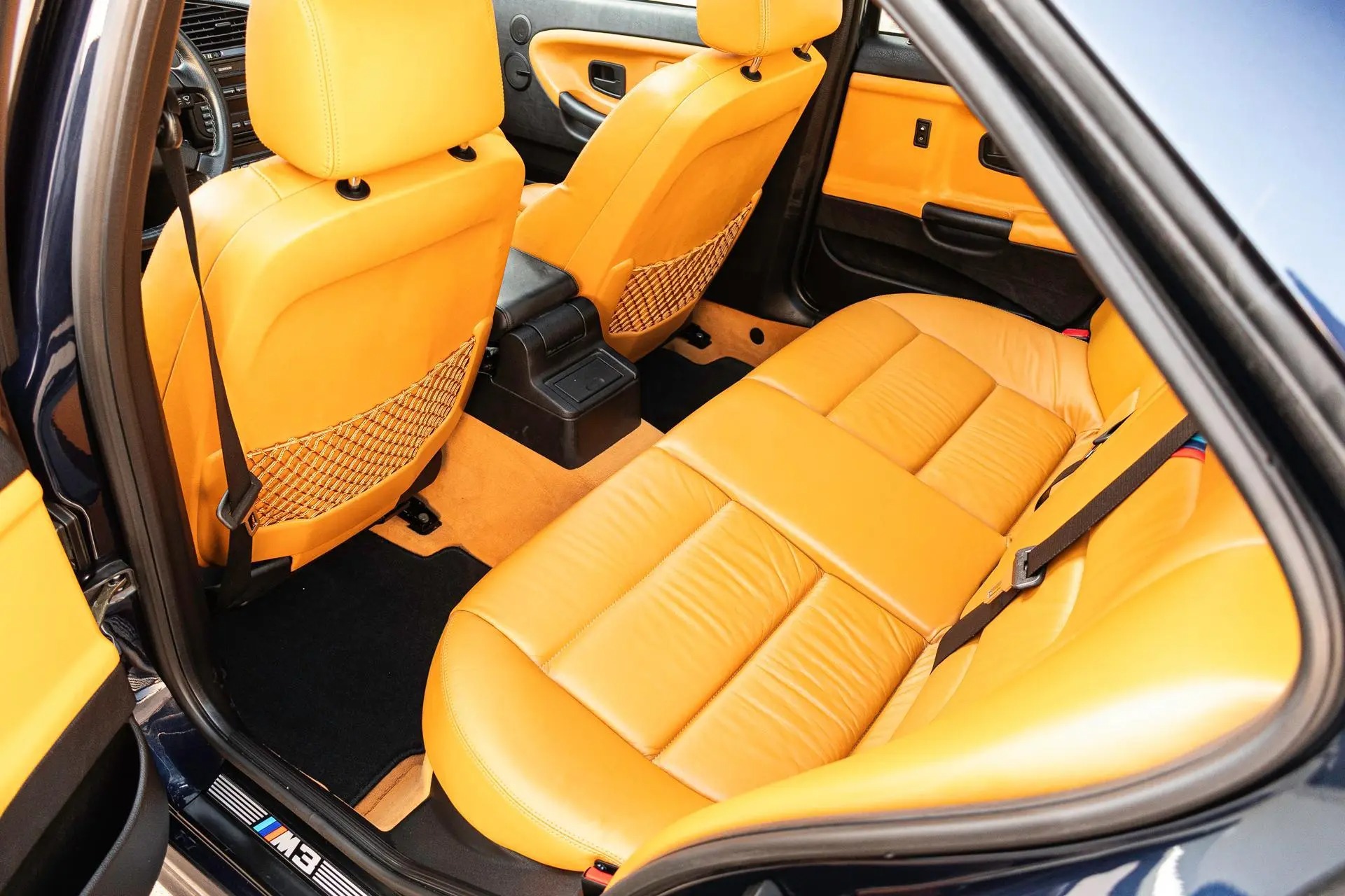 This 1998 BMW M3 sedan was ordered new through BMW’s Individual program in Orient Blue Metallic over Modena Natur Nappa leather. Indicating 31k miles, the car is powered by a 3.2-liter inline-six paired with a five-speed manual transmission. Features include a limited-slip differential, a sunroof, fog lights, 17″ Style 23 wheels, cruise control, a Harman Kardon sound system, heated sport seats, a cassette stereo, and dual-zone climate control.