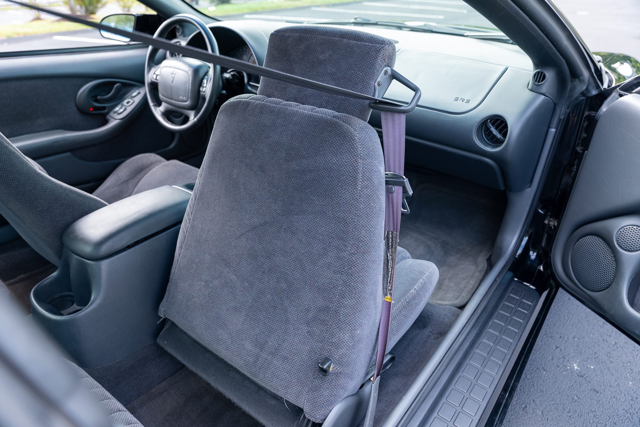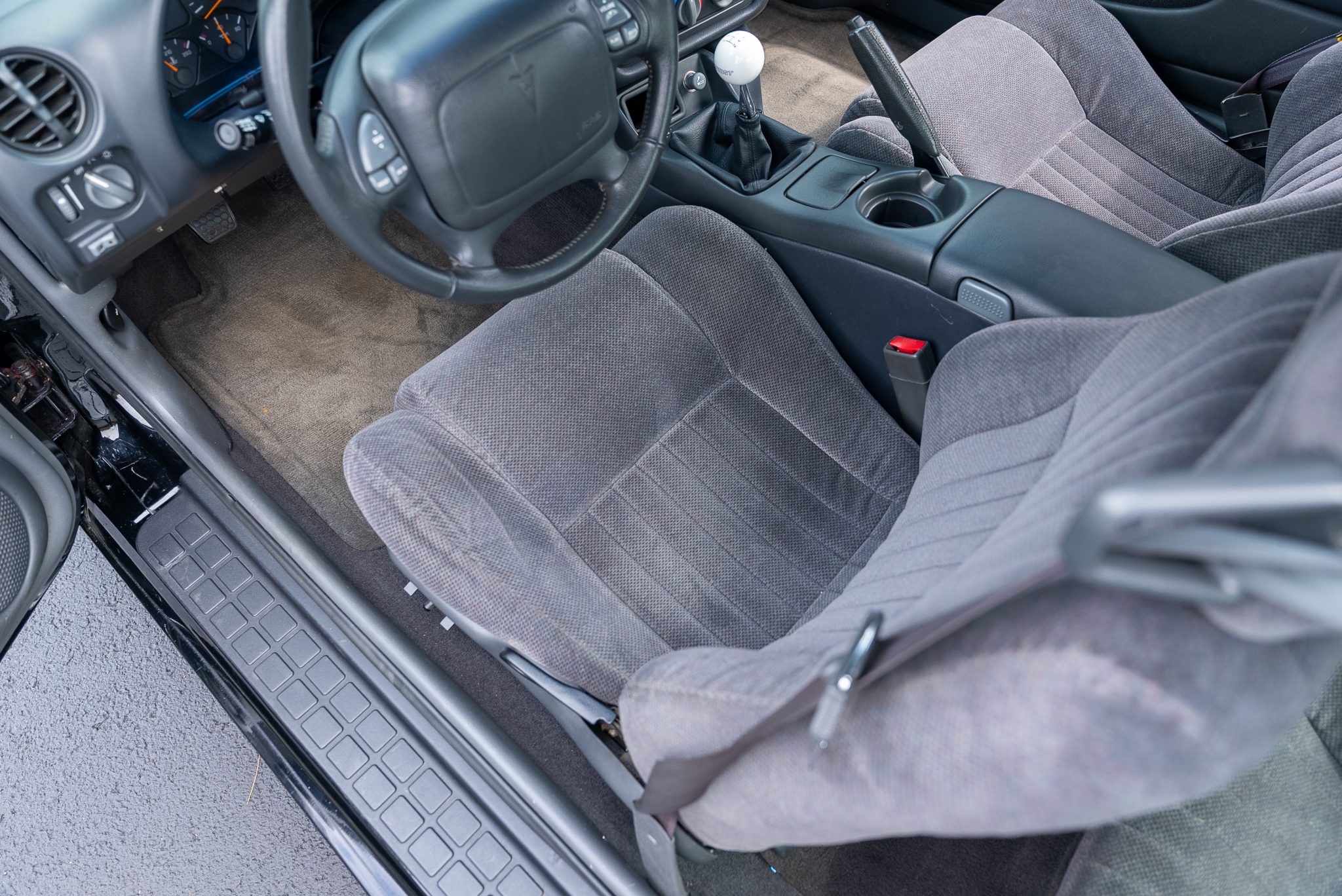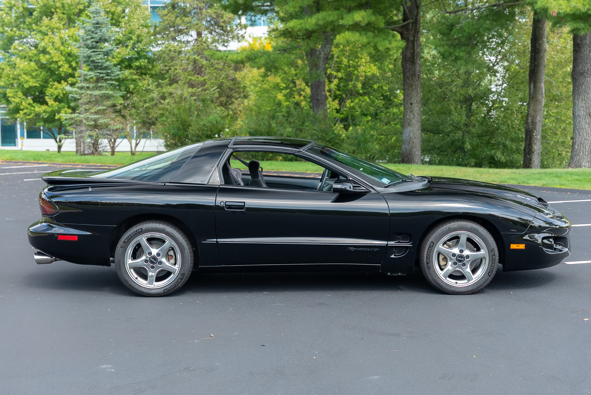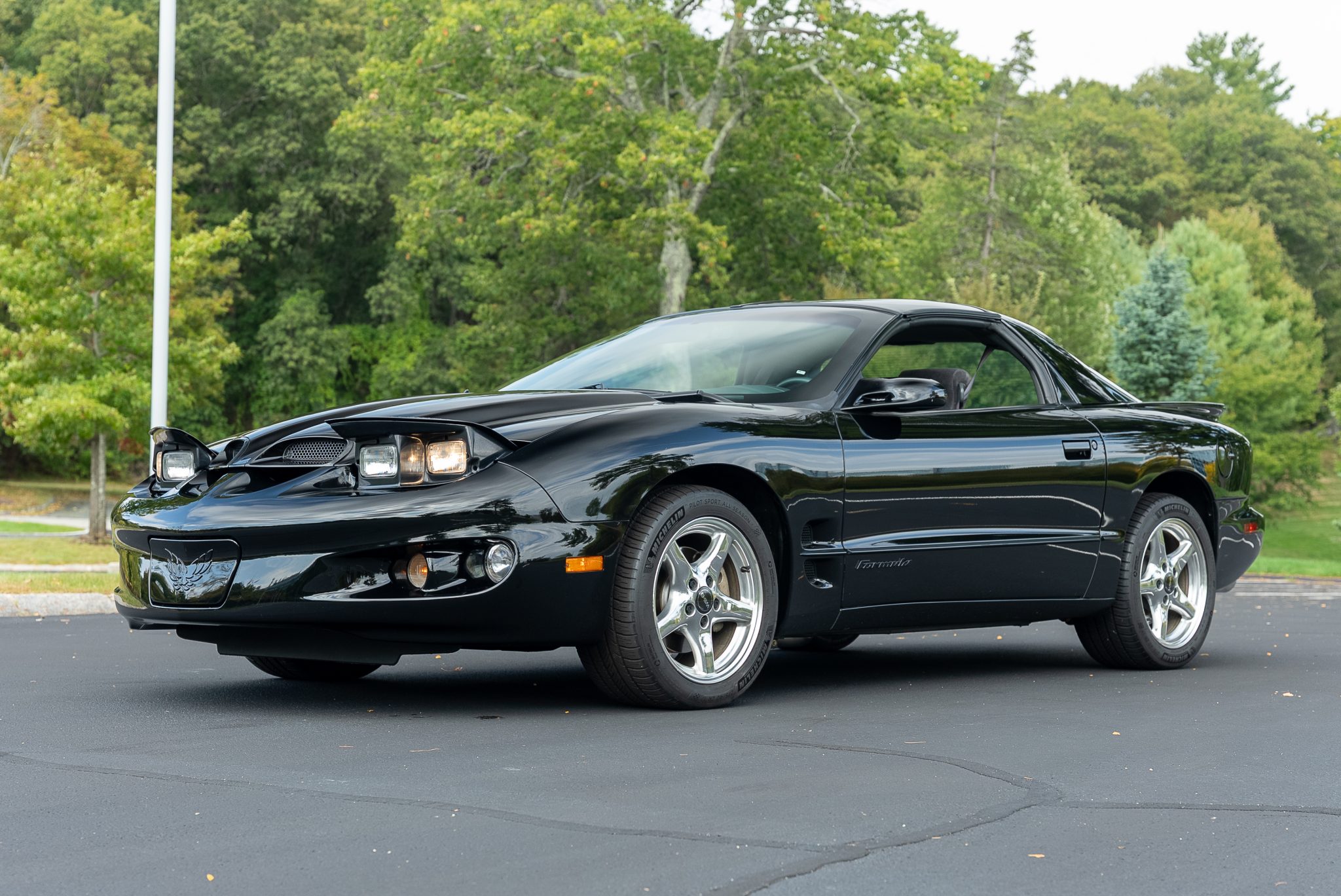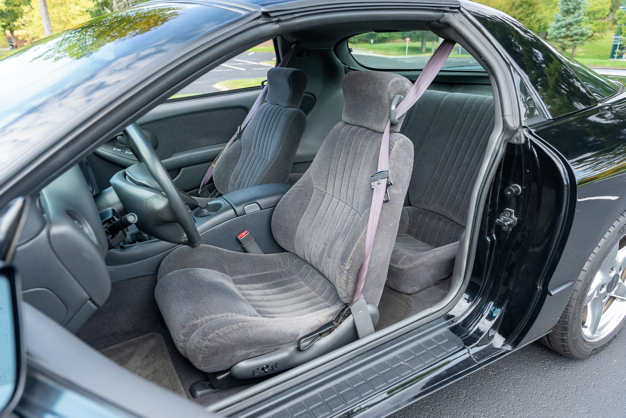 The car is finished in black over Dark Pewter cloth and is powered by a 5.7-liter LS1 V8 said to be modified with a Texas Speed camshaft, a BBK throttle body, an LS6 intake manifold, an SLP airbox, an aluminum radiator, a Magnaflow muffler, and long-tube headers. Shifting is through a six-speed manual transmission with a Hurst shifter, and the limited-slip differential is said to have been rebuilt with 3.73:1 gearing. Additional equipment includes removable T-top roof panels, functional hood scoops, and 17” wheels along with a power-adjustable driver’s seat, remote keyless entry, air conditioning, cruise control, and a Monsoon audio system.