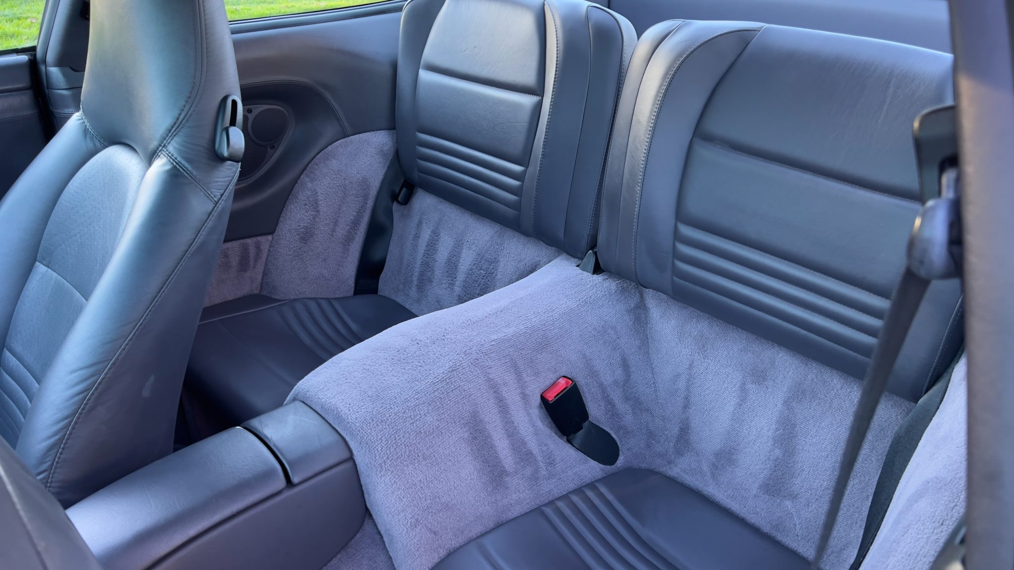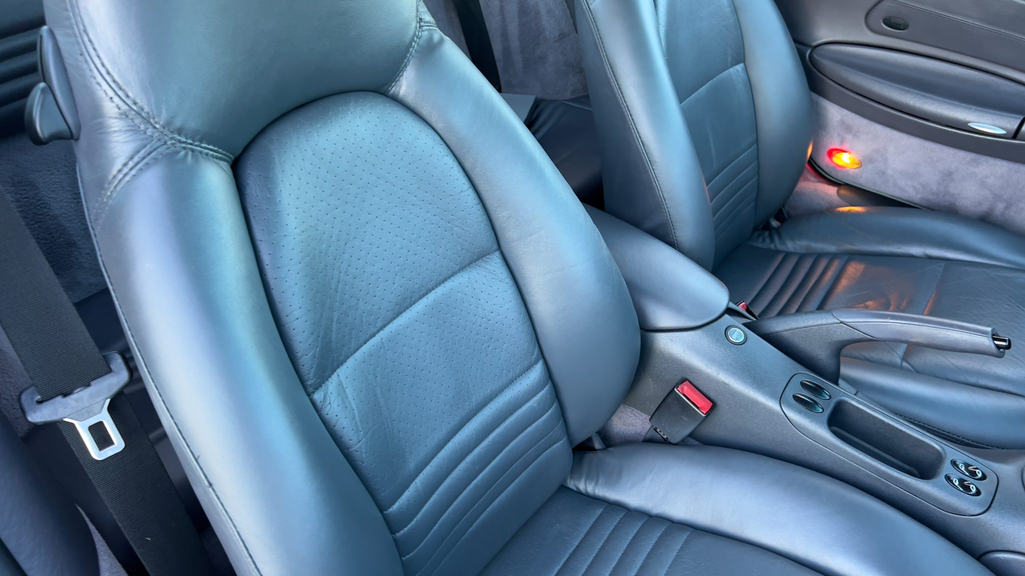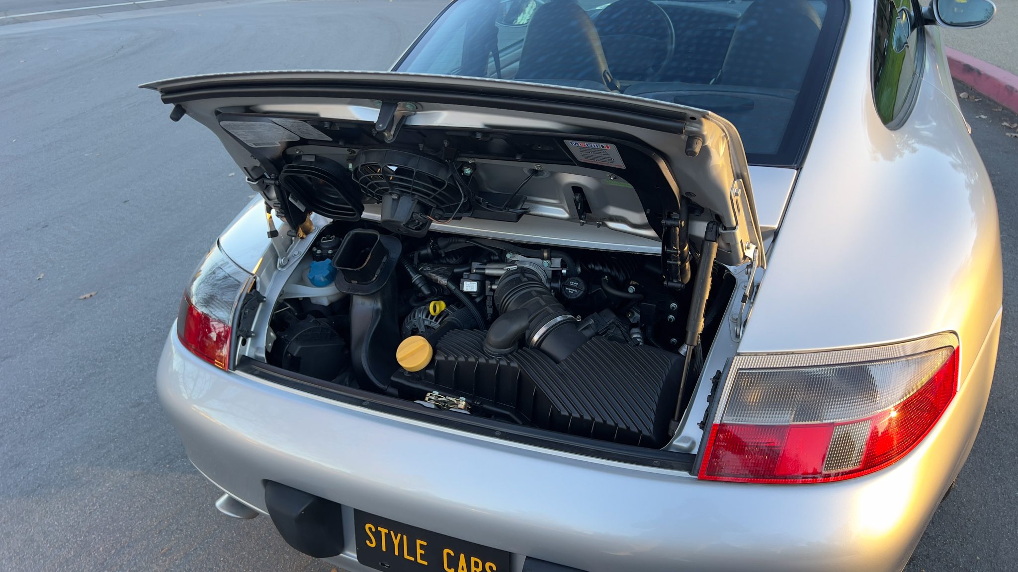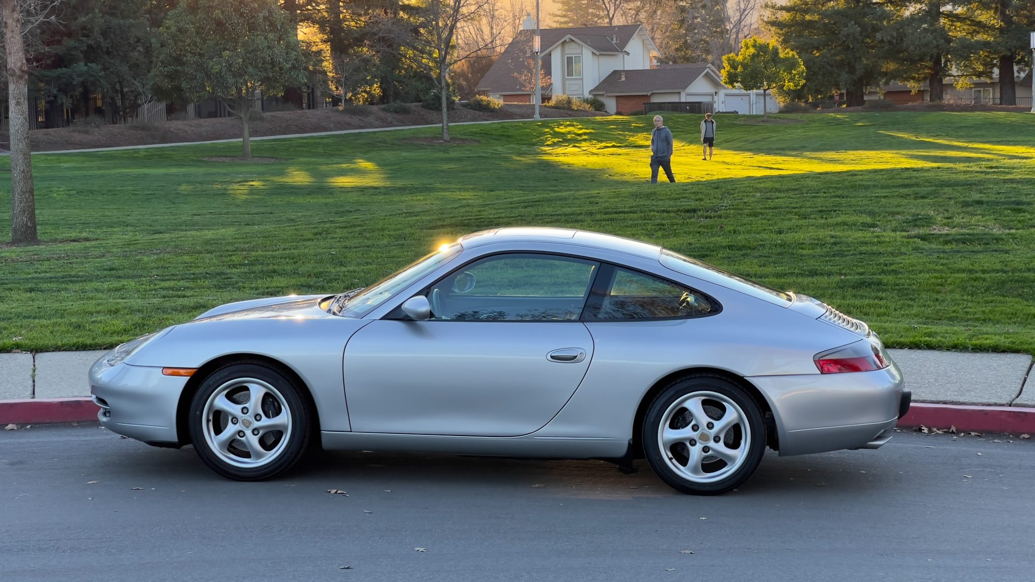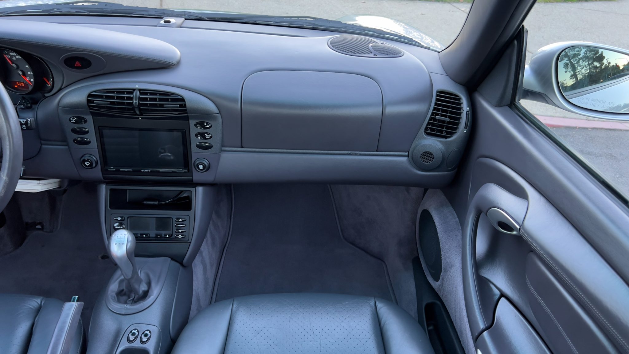 This 1999 Porsche 911 Carrera coupe was specified in Arctic Silver over Space Grey leather, and it was optioned with traction control, a limited-slip differential, and an Automatic Braking Differential (ABD). Power comes from a 3.4-liter M96 flat-six paired with a six-speed manual transaxle, while additional details include a sunroof, 17″ turbo-look alloy wheels, heated power-adjustable front seats, driver’s position memory, automatic climate control, and a touchscreen Sony head unit.