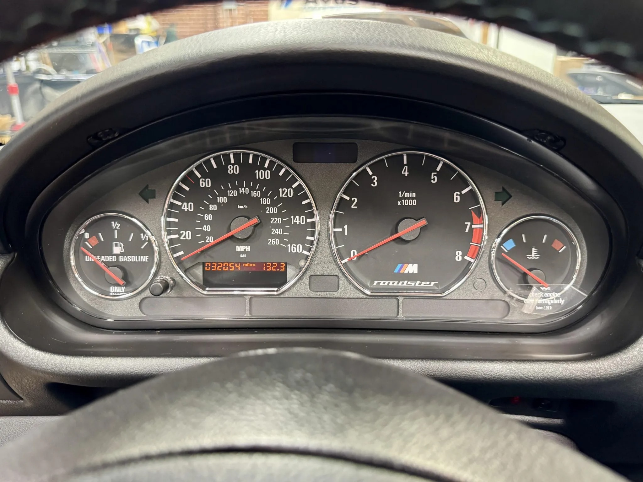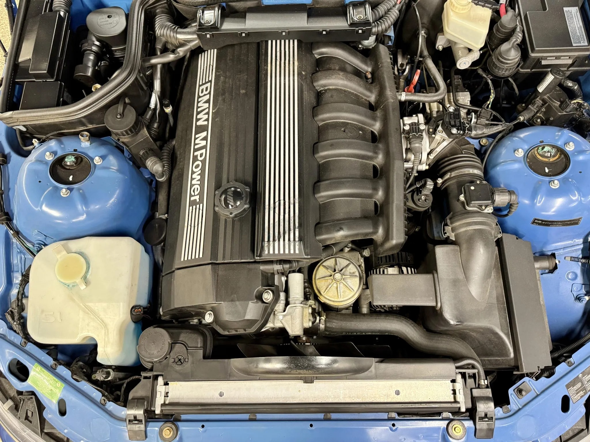 This 2000 BMW M Roadster is one of 762 finished in Estoril Blue Metallic over black and Estoril Blue Nappa leather upholstery for the model year. Powered by a 3.2-liter S52 inline-six linked with a five-speed manual transmission and a limited-slip differential, the car is equipped with a blue convertible soft top, silver-finished 17″ Style 40 wheels, heated sport seats, a Harman Kardon sound system, an Alpine head unit, air conditioning, and cruise control.