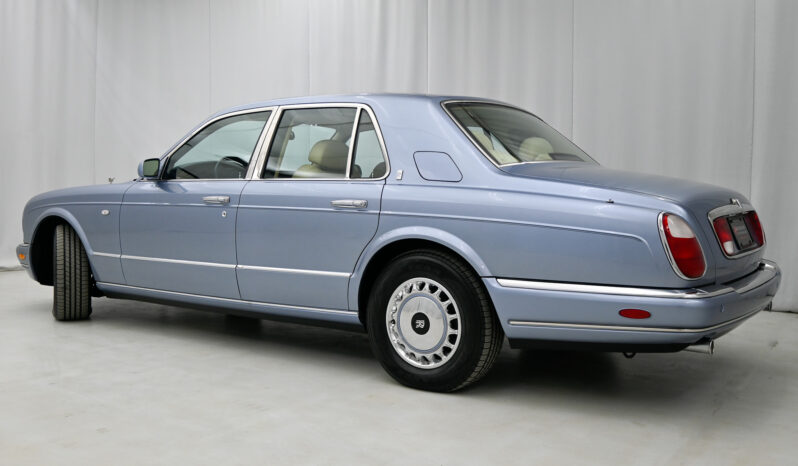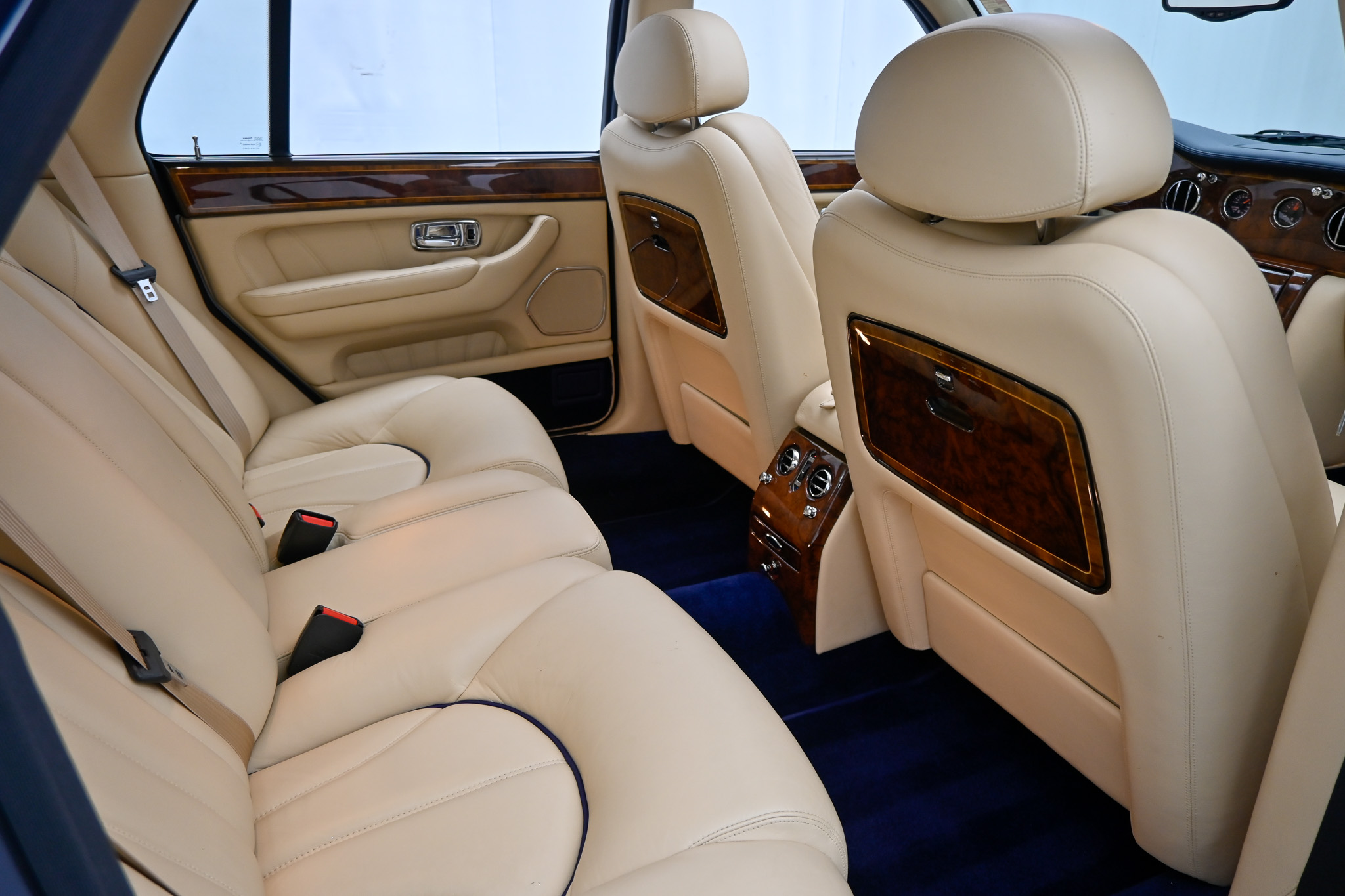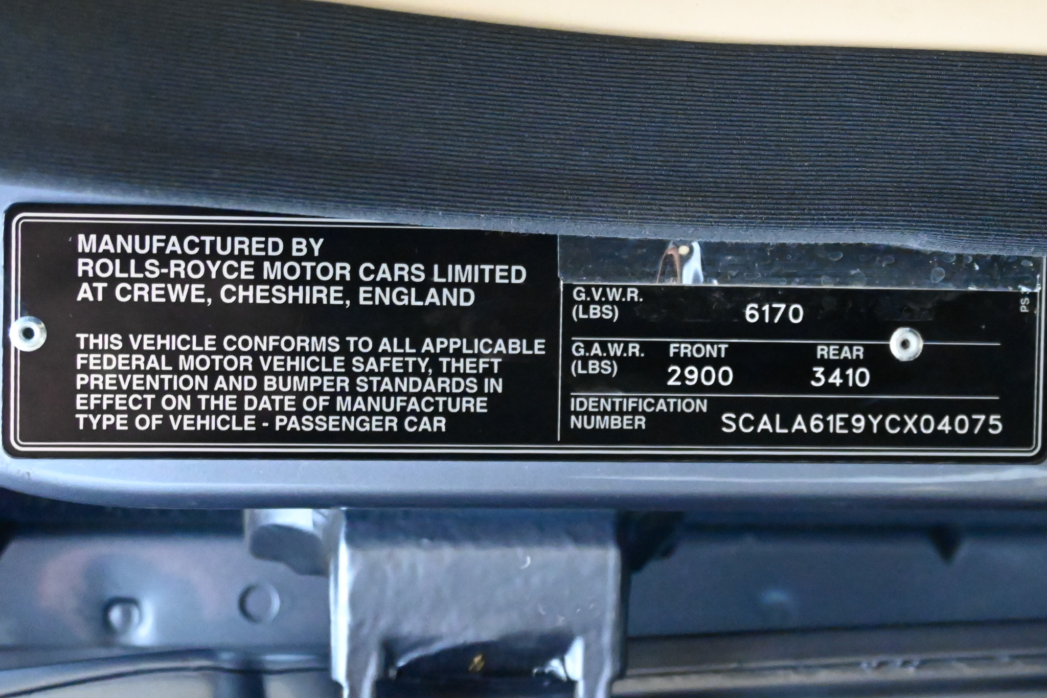 This 2000 Rolls-Royce Silver Seraph is powered by a 5.4-liter V12 paired with a five-speed automatic transmission and is finished in Grigio Silverstone Metallic over beige leather. Additional equipment includes 16″ wheels, a sunroof, parking sensors, dual-zone automatic climate control, heated seats, rear tray tables, navigation, and an Alpine cassette stereo linked to a CD changer mounted in the center console.