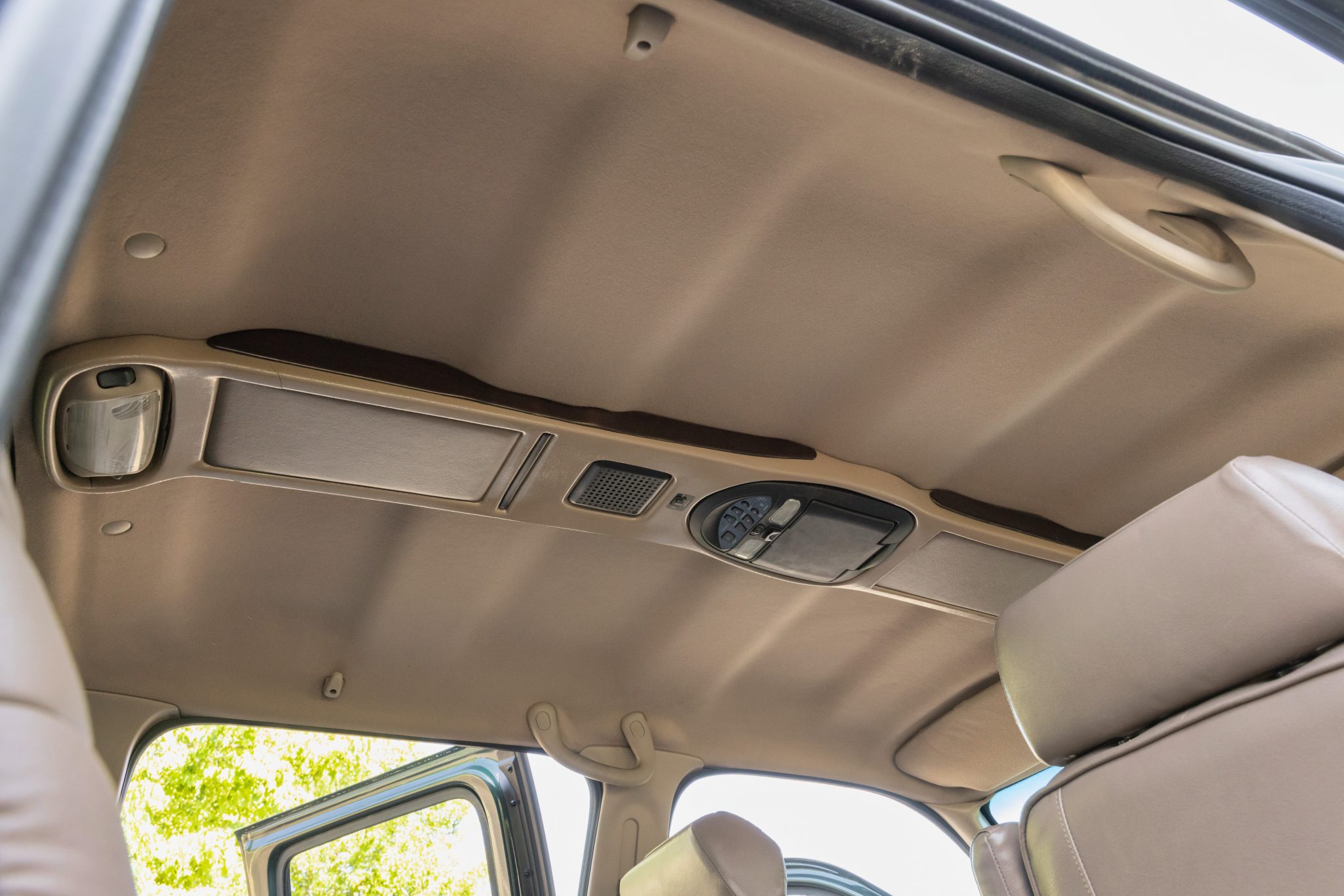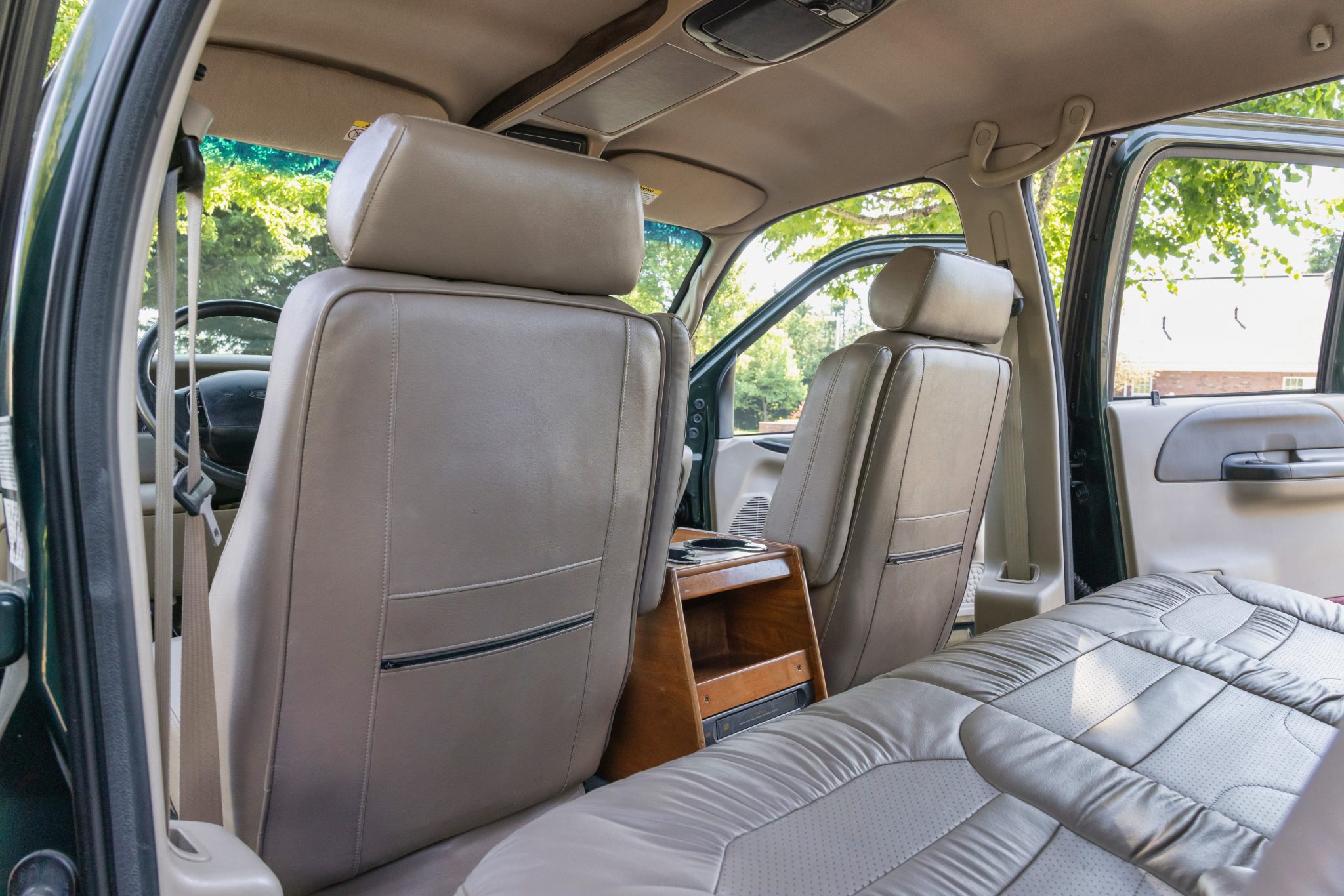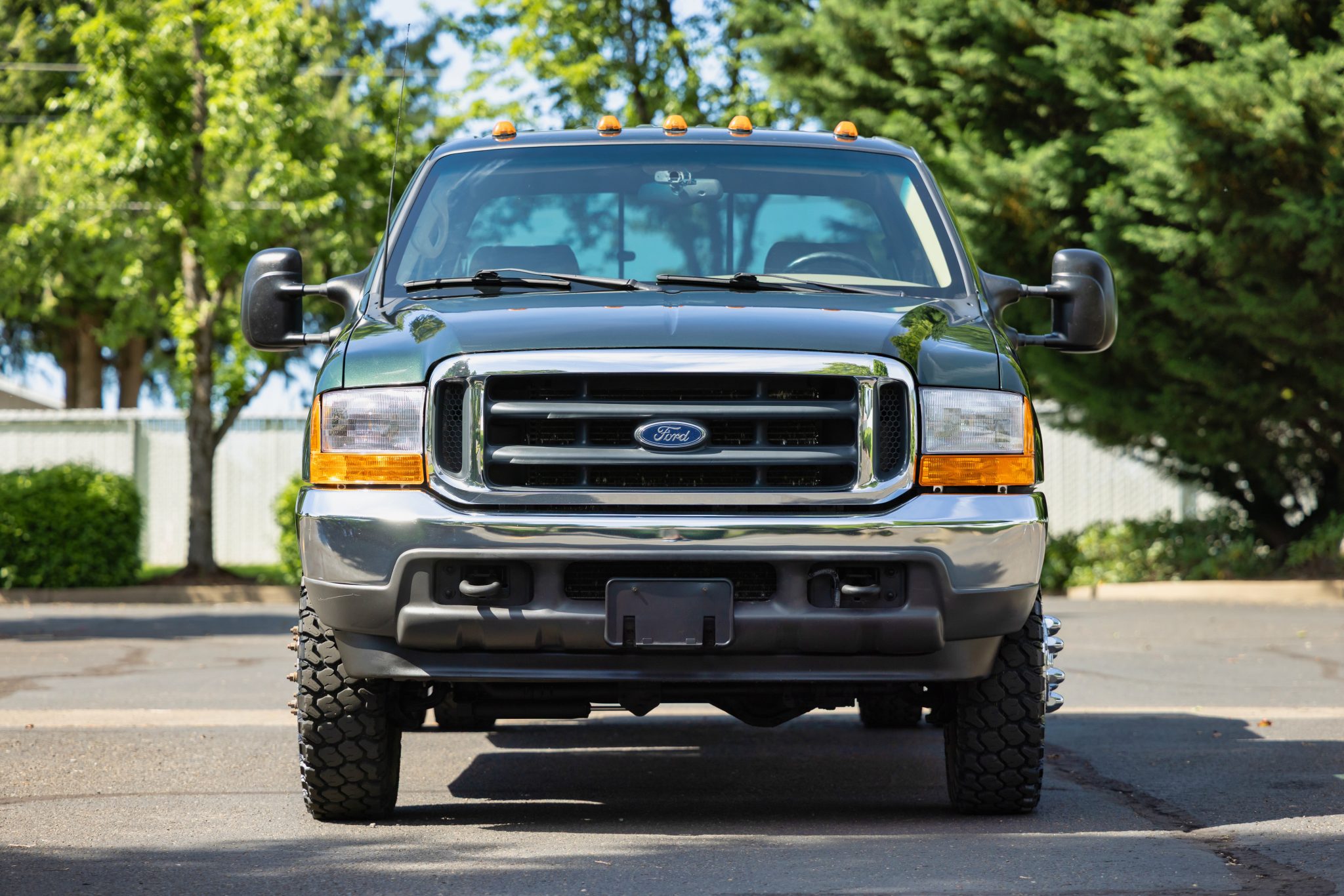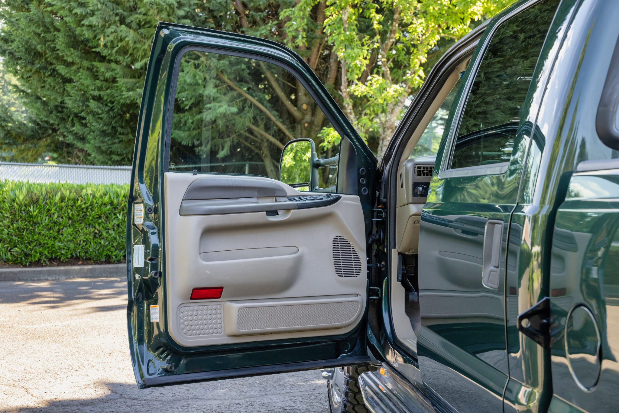 This 2001 Ford F-550 XLT Super Duty is a Crew Cab long-bed 4×4 dually example that was customized when new by Centurion and is finished in Dark Highland Metallic Green over medium parchment leather upholstery. Power is provided by a 7.3-liter Power Stroke turbodiesel V8 linked with a six-speed manual transmission and a dual-range transfer case and equipment includes a maple wood center console, Wieland Designs heated front captains chairs, a rear seat entertainment system, air conditioning, a trailer brake controller, in-dash six-disc CD stereo, illuminated running boards, 19.5″ aluminum wheels, manually locking front hubs, four-wheel disc brakes, and a sliding rear window.