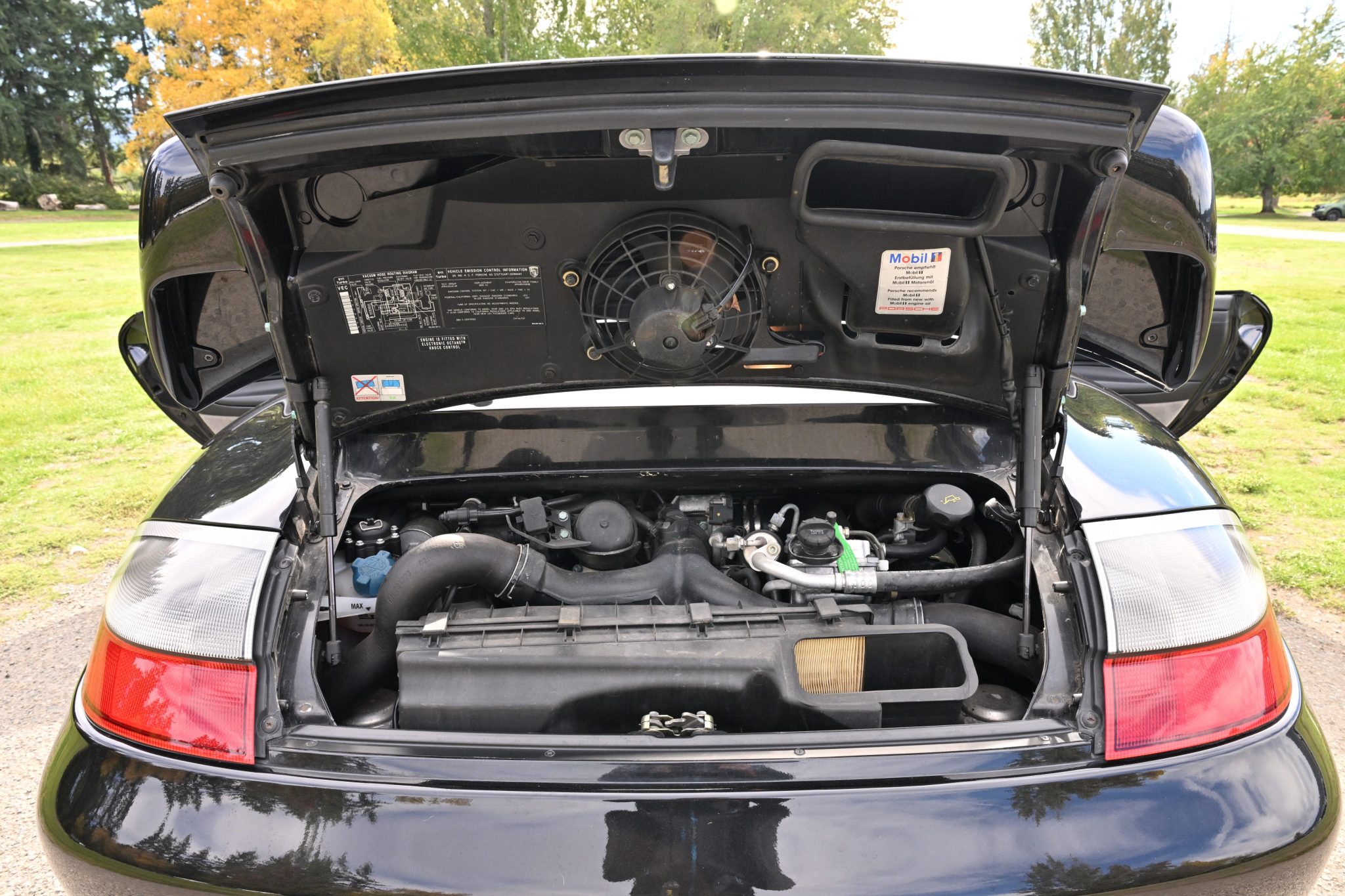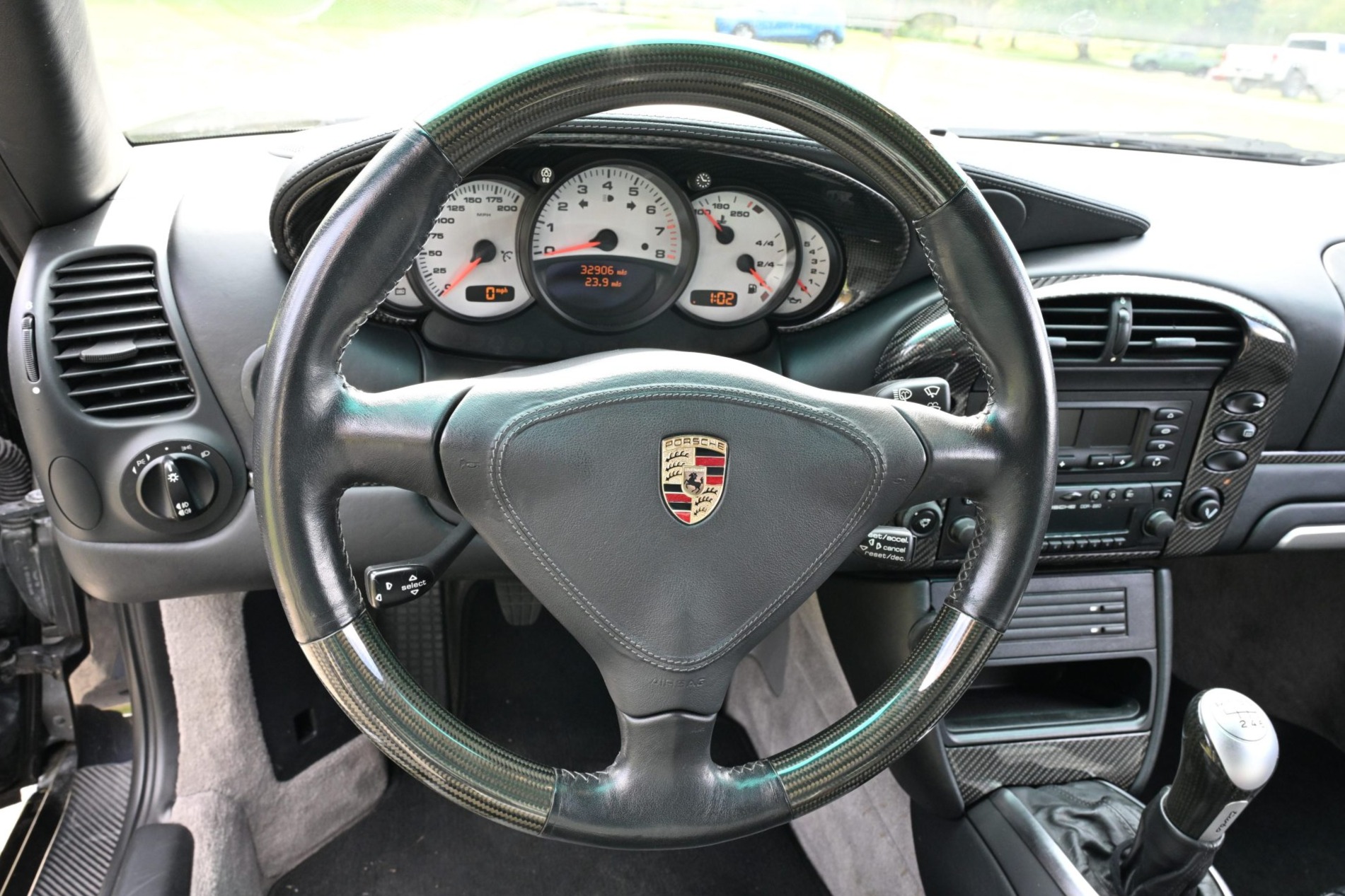 This 2002 Porsche 911 Turbo coupe is finished in Basalt Black Metallic over Grey Natural leather and has 33k miles The car is powered by a twin-turbocharged 3.6L flat-six that drives all four wheels via a six-speed manual transaxle, and features include the X50 Turbo Power Kit, the Turbo Aerokit, carbon-fiber interior trim, deviated carpets, 18″ Turbo Twist wheels, and xenon headlights.