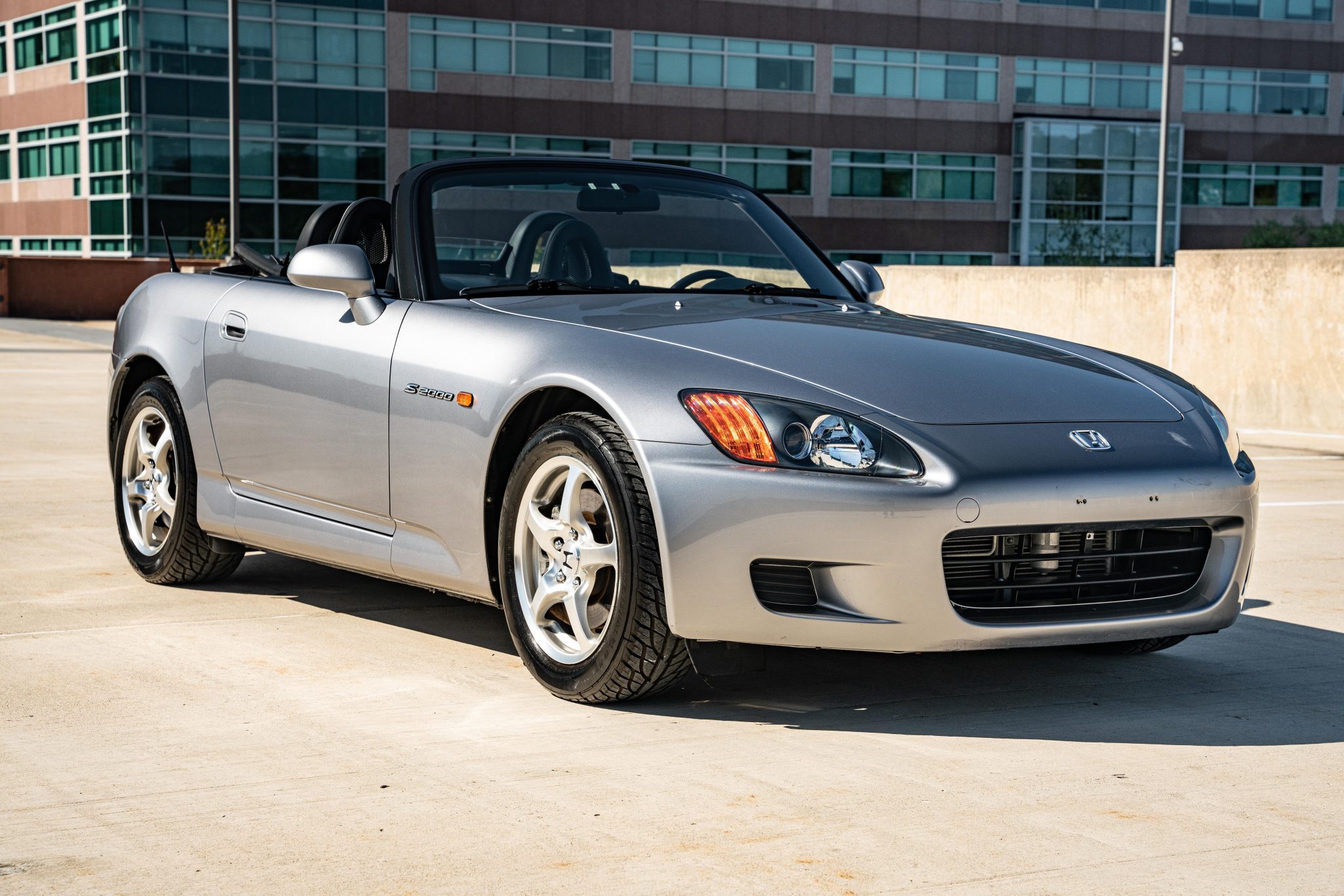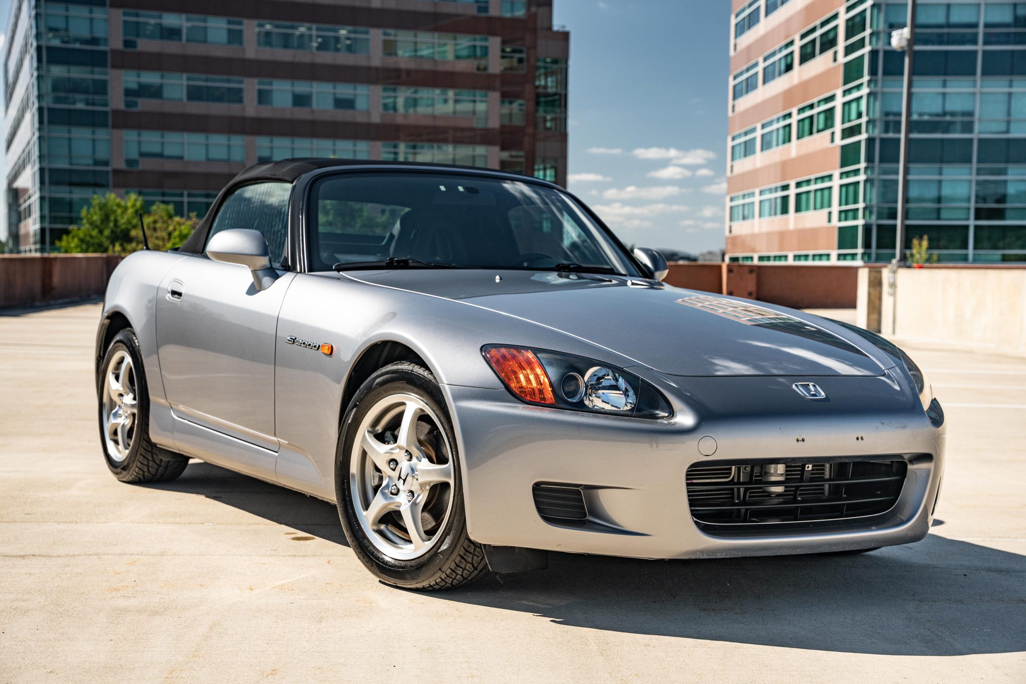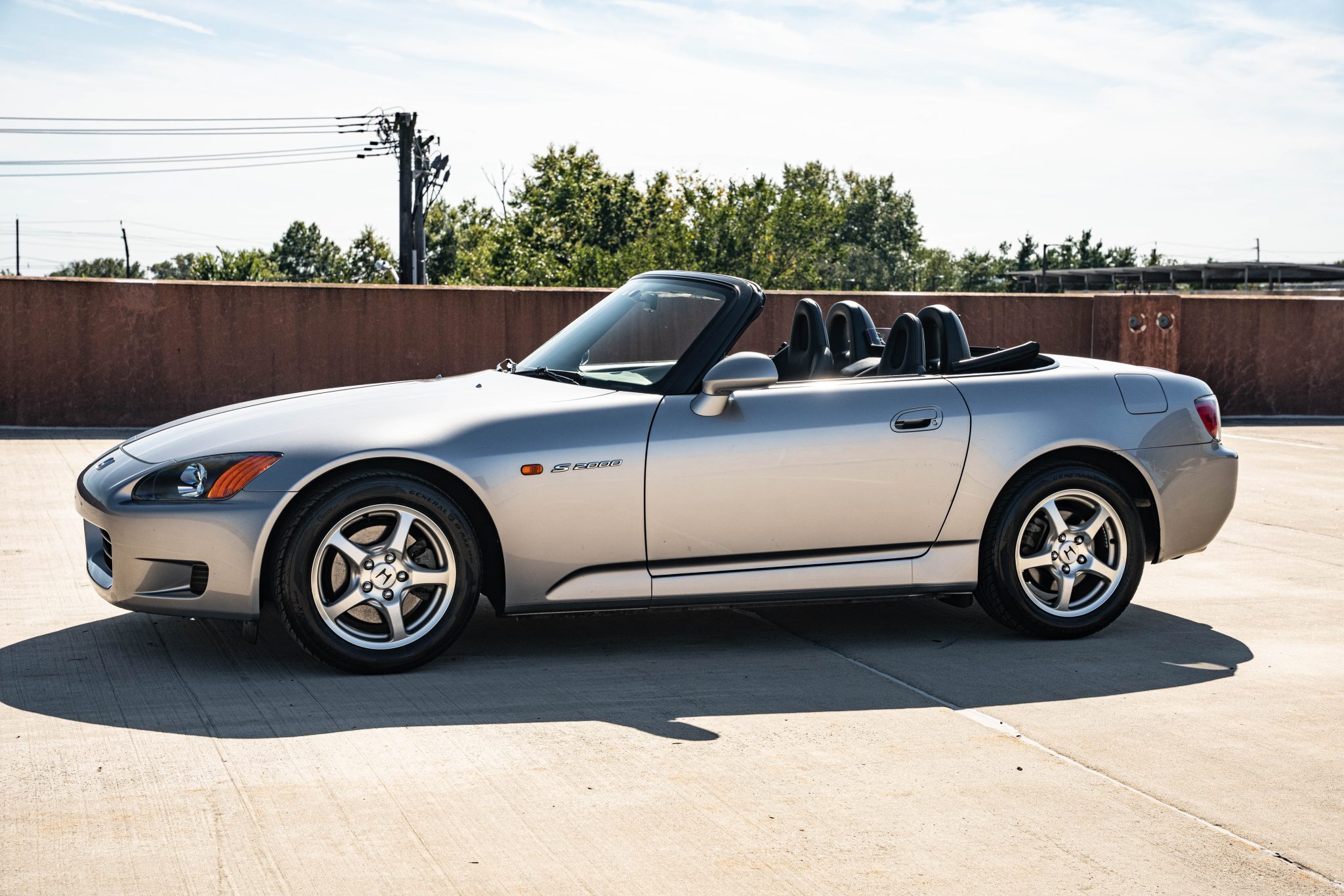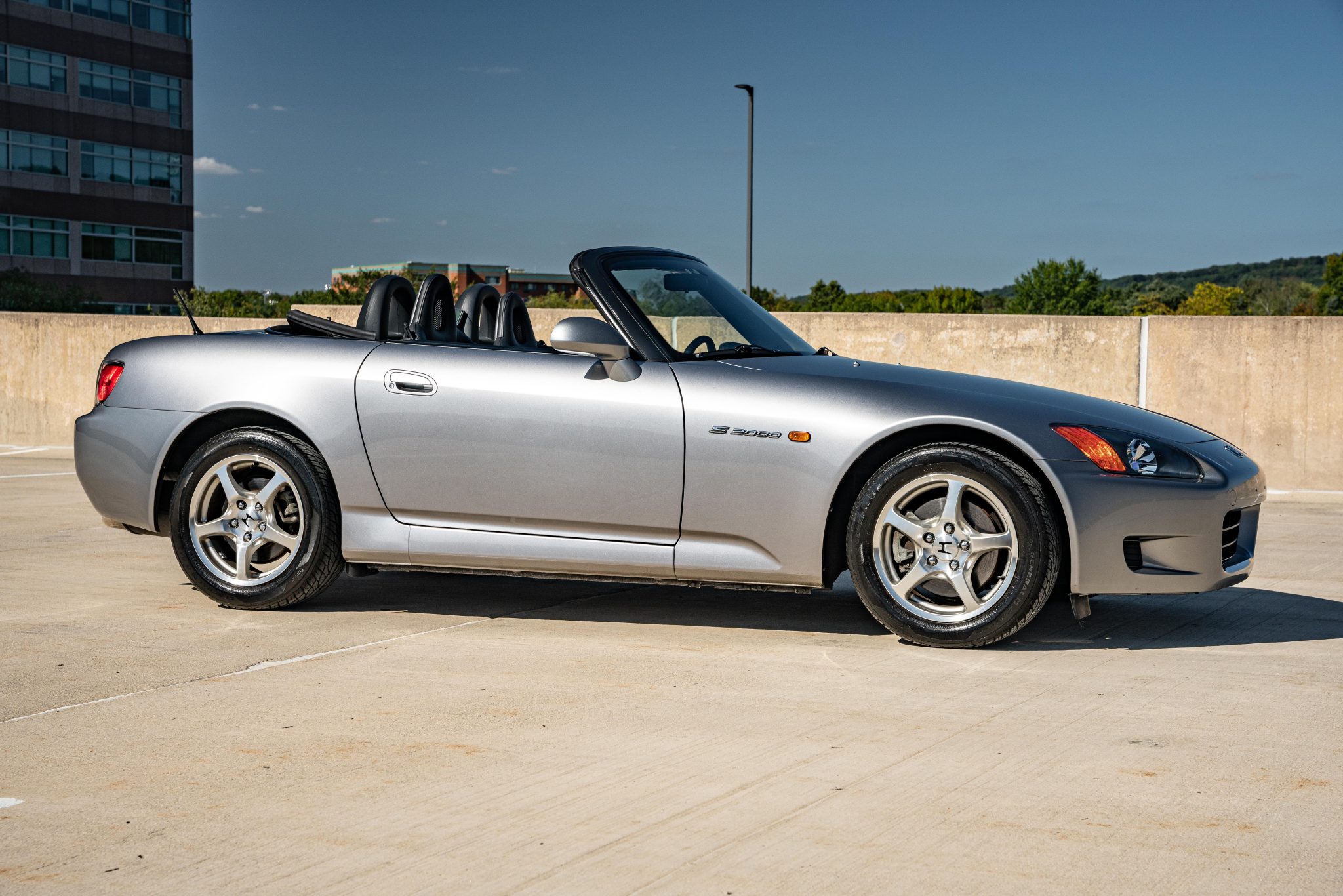 This 2003 Honda S2000 has 21k miles and it is finished in Silverstone Metallic over black leather. The car is powered by a 2.0-liter VTEC inline-four linked to a six-speed manual transmission, and equipment includes a limited-slip differential, a black convertible soft top, xenon headlights, and 16″ five-spoke alloy wheels, while further details include push-button ignition, air conditioning, and cruise control.