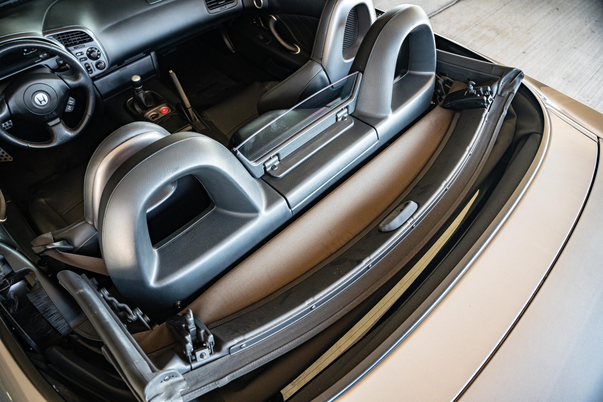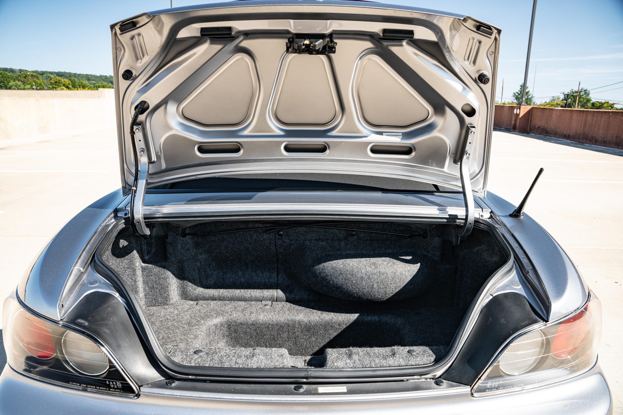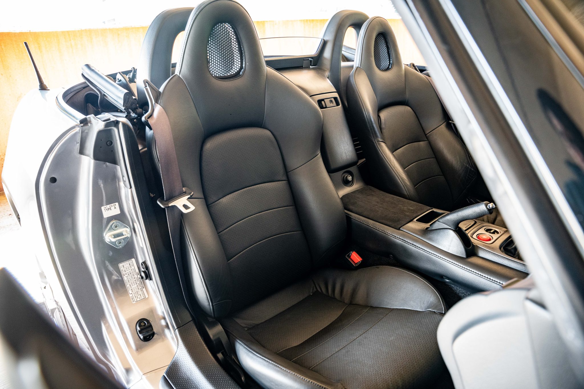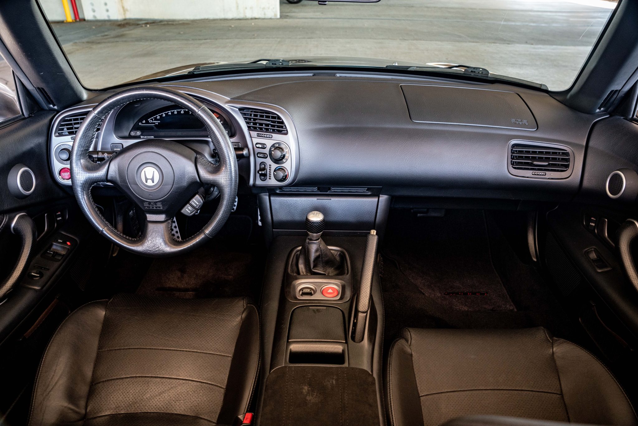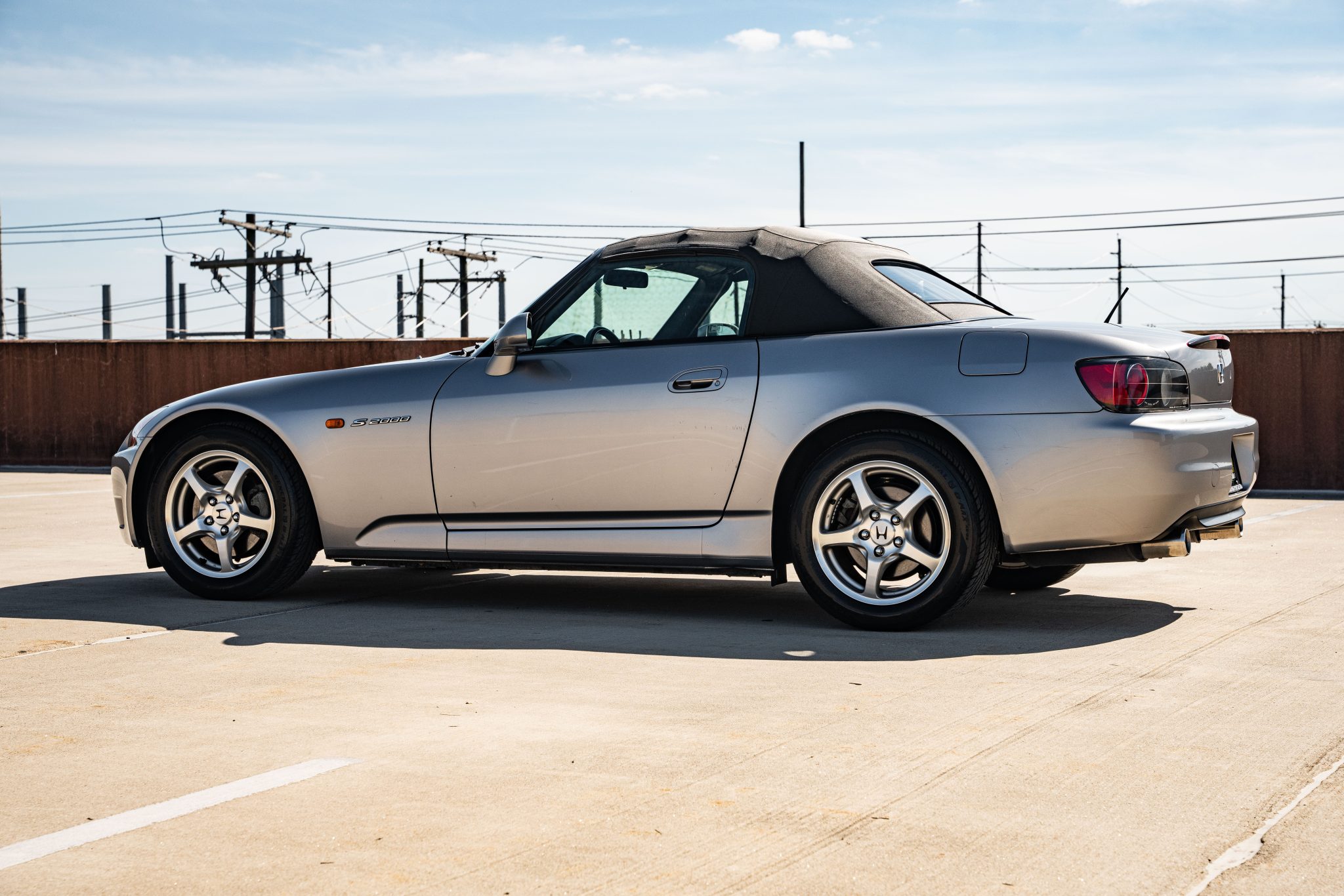 This 2003 Honda S2000 has 21k miles and it is finished in Silverstone Metallic over black leather. The car is powered by a 2.0-liter VTEC inline-four linked to a six-speed manual transmission, and equipment includes a limited-slip differential, a black convertible soft top, xenon headlights, and 16″ five-spoke alloy wheels, while further details include push-button ignition, air conditioning, and cruise control.