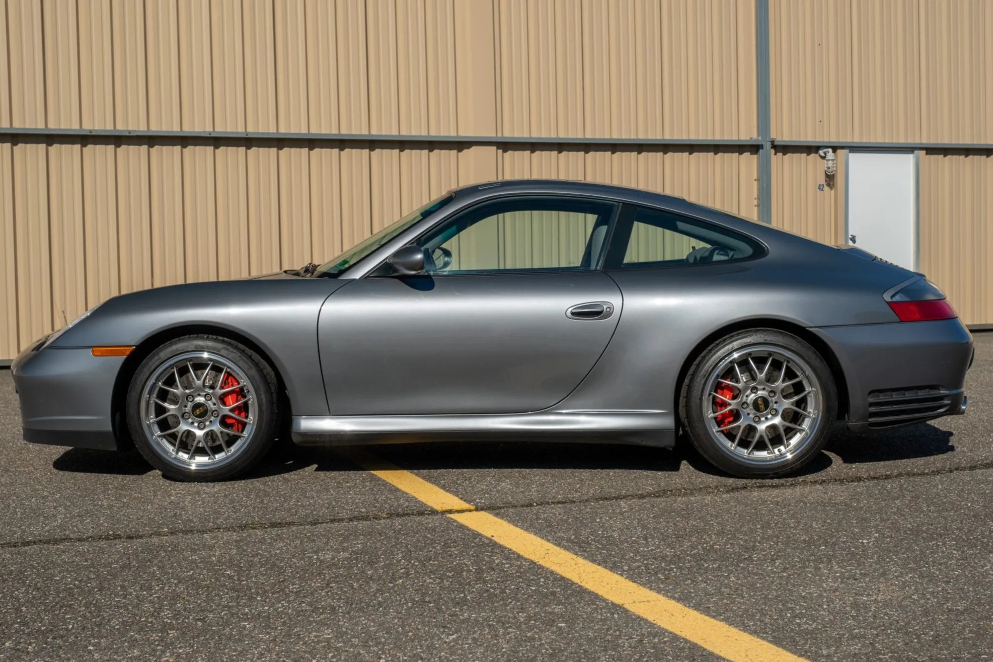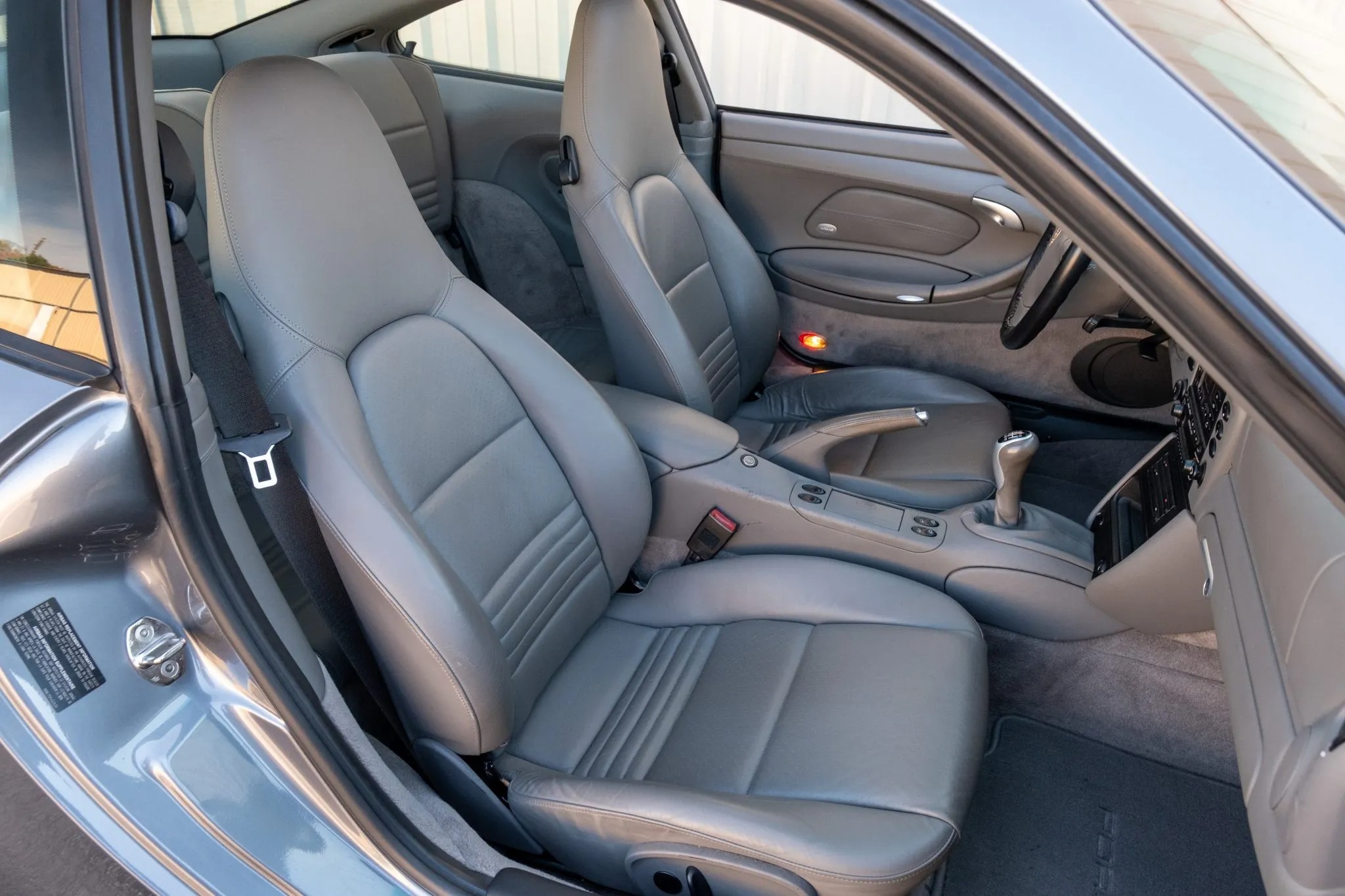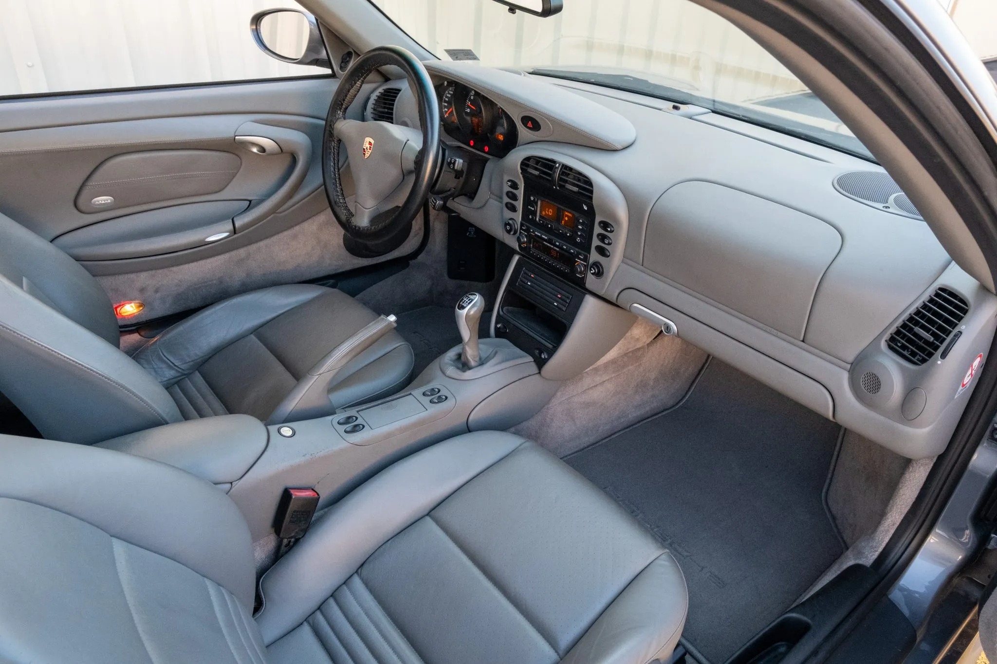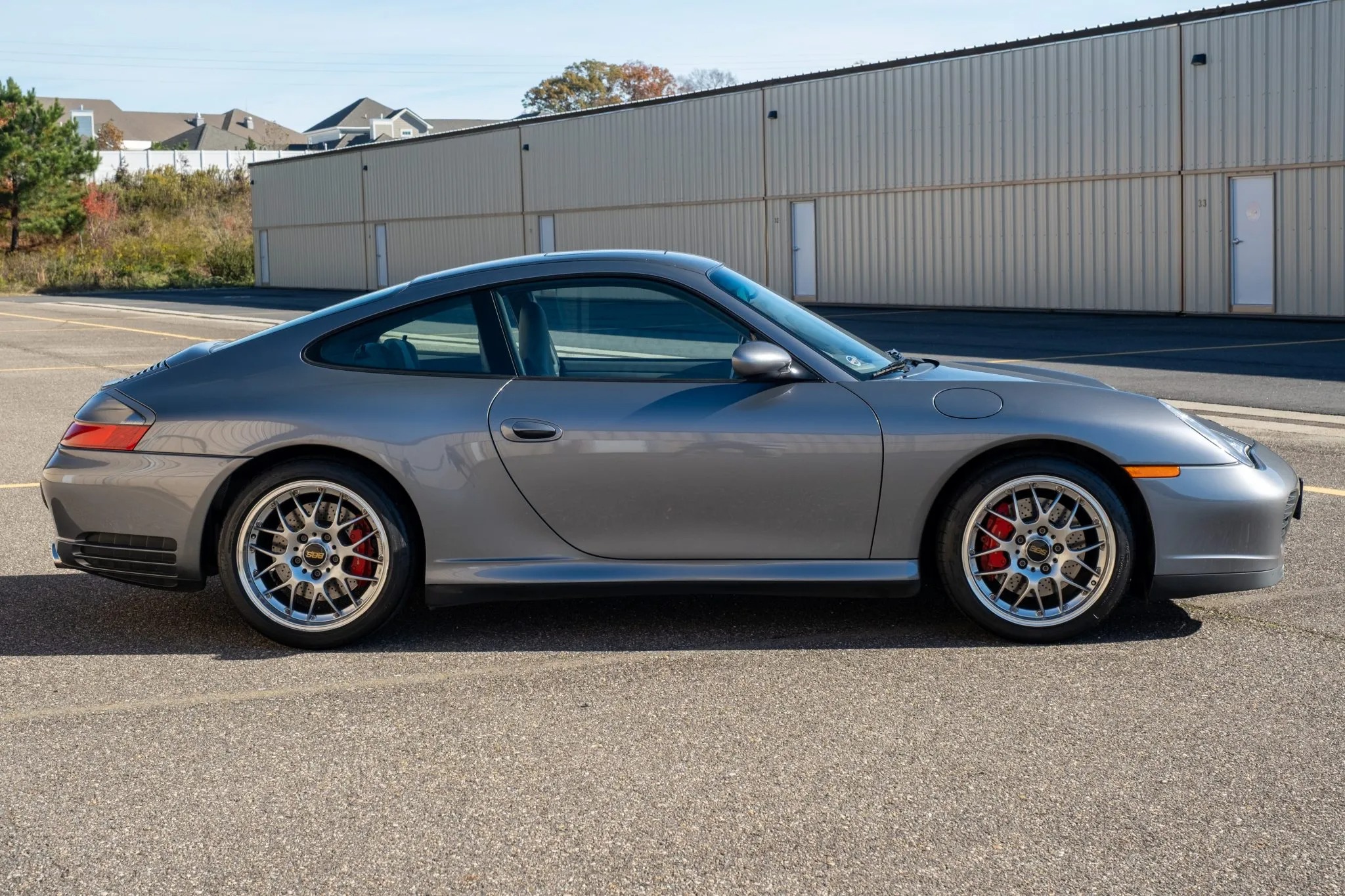 It is finished in Seal Grey Metallic over Graphite Gray leather and is powered by a 3.6-liter flat-six that drives all four wheels through a six-speed manual transaxle. Features include a sunroof, a speed-activated rear spoiler, fog lights, 18″ BBS Y-spoke wheels, heated power-adjustable front seats, cruise control, a Porsche CDR-23 stereo, and automatic climate control. This 996 C4S coupe
