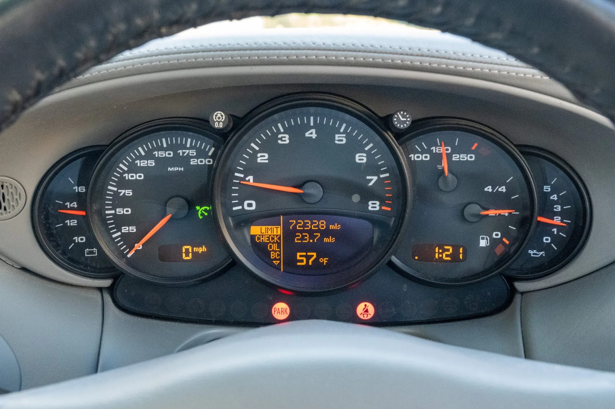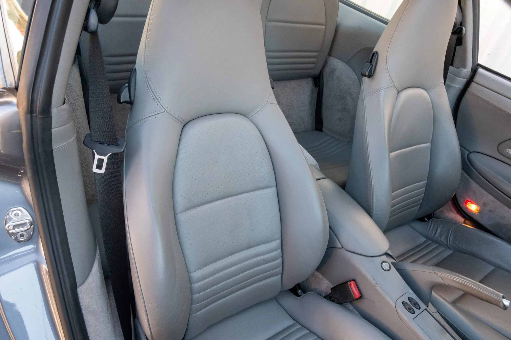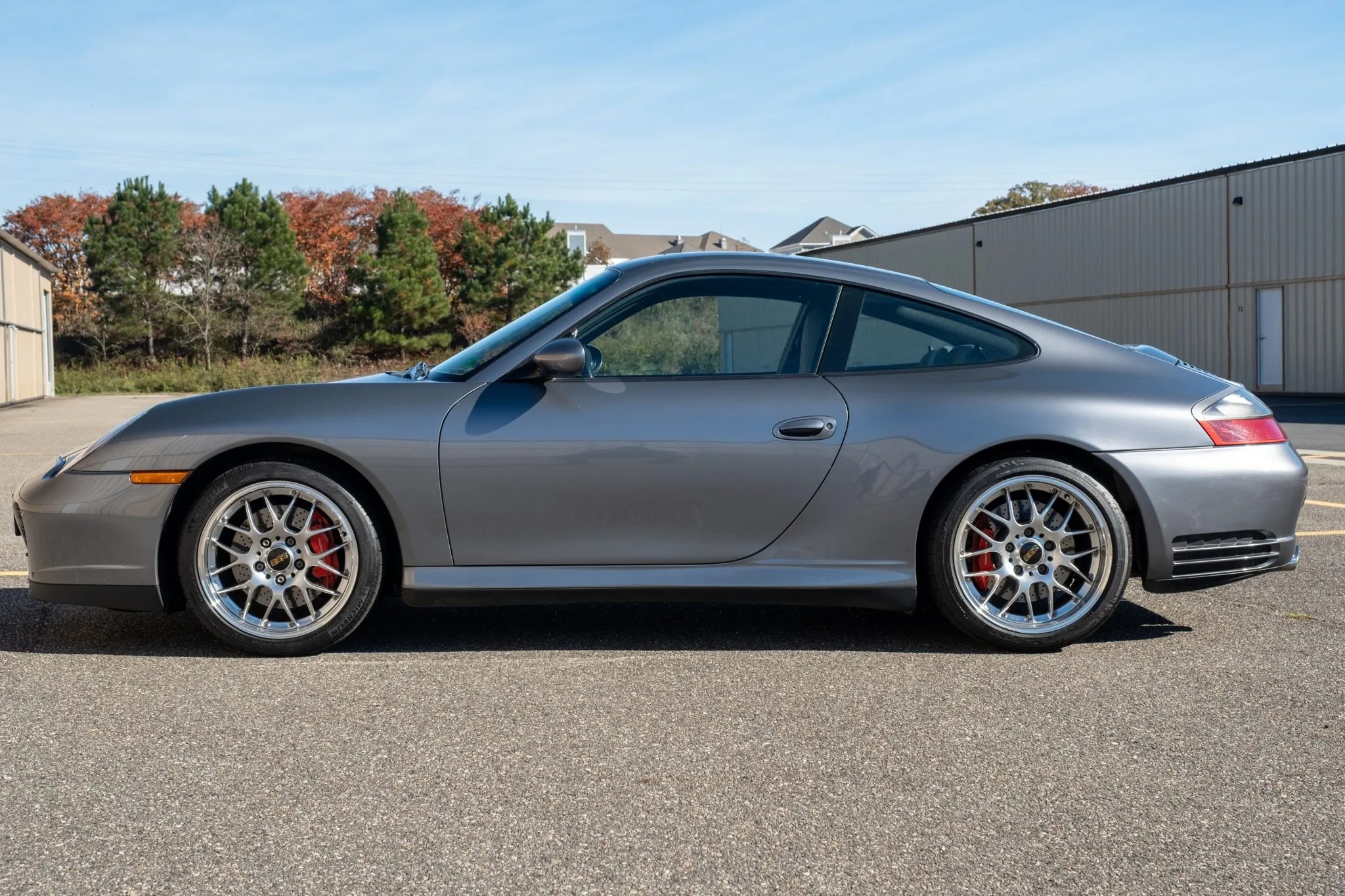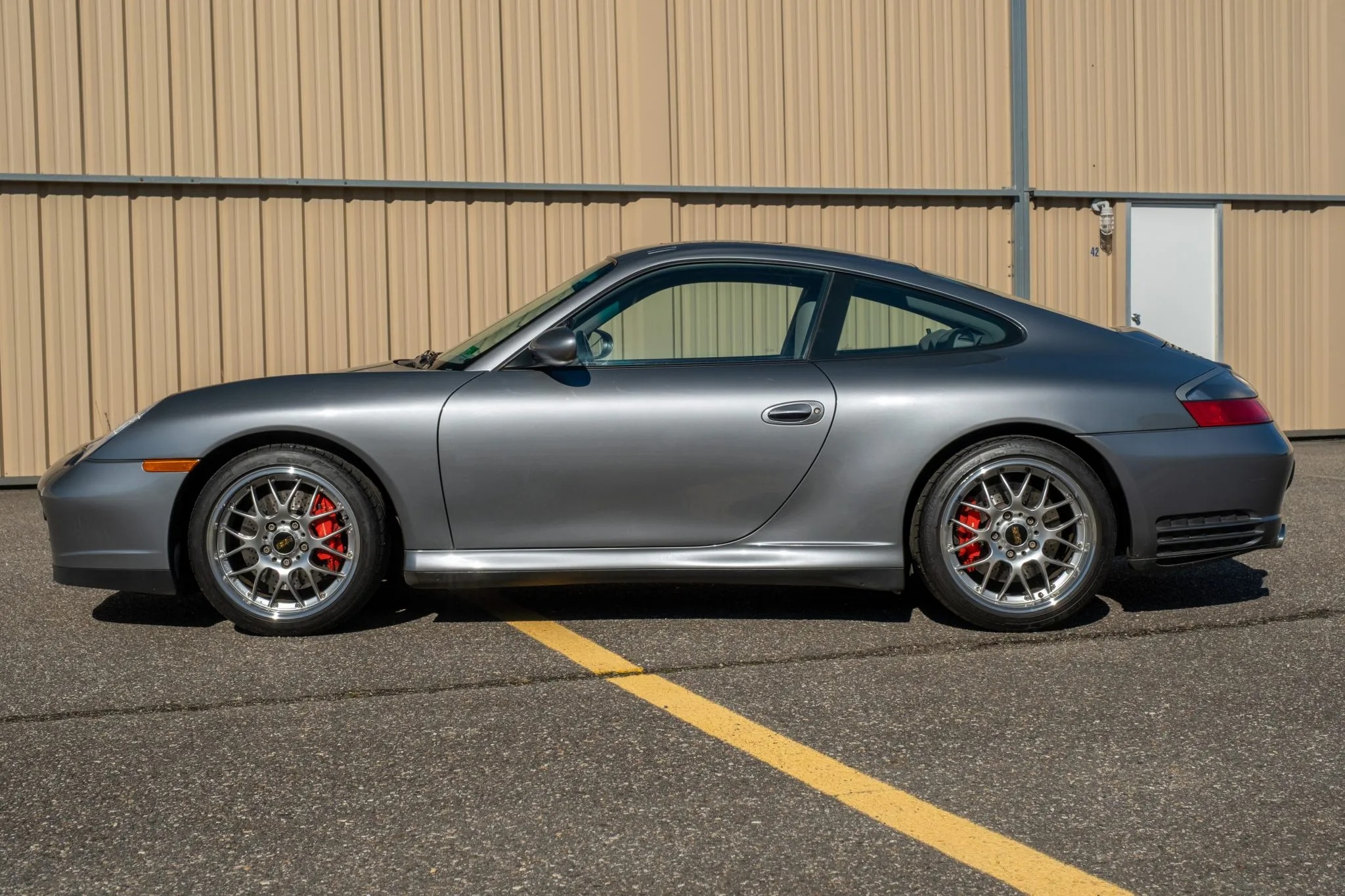 It is finished in Seal Grey Metallic over Graphite Gray leather and is powered by a 3.6-liter flat-six that drives all four wheels through a six-speed manual transaxle. Features include a sunroof, a speed-activated rear spoiler, fog lights, 18″ BBS Y-spoke wheels, heated power-adjustable front seats, cruise control, a Porsche CDR-23 stereo, and automatic climate control. This 996 C4S coupe