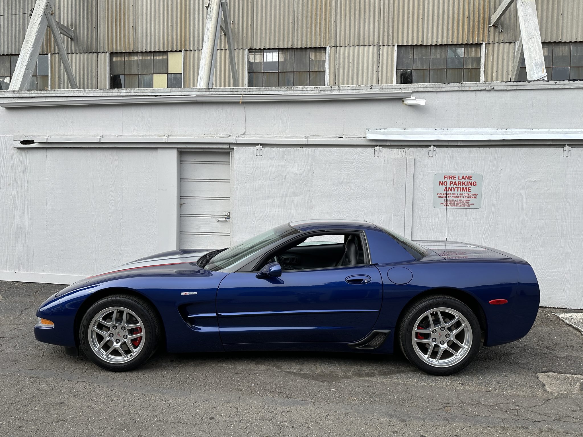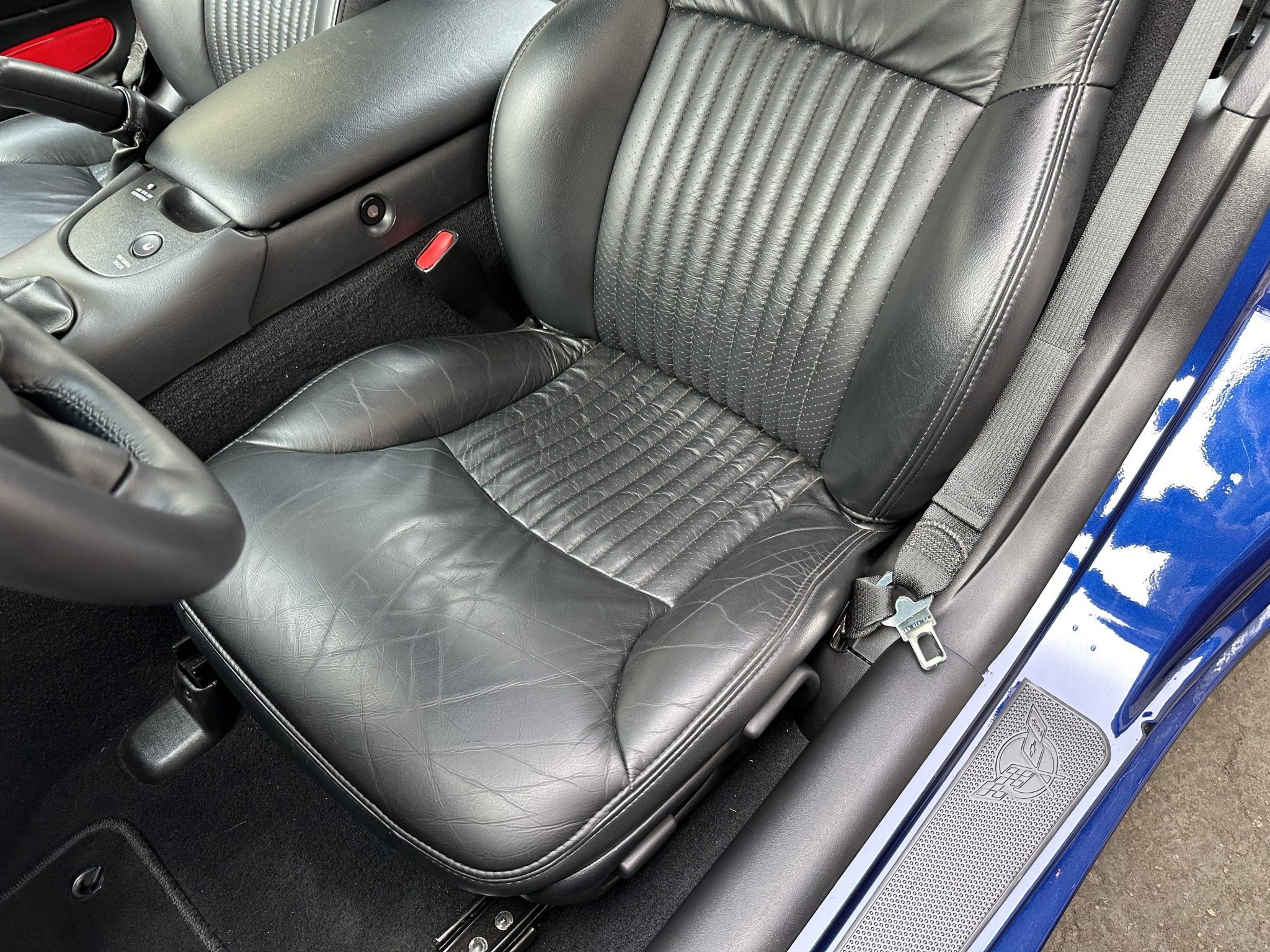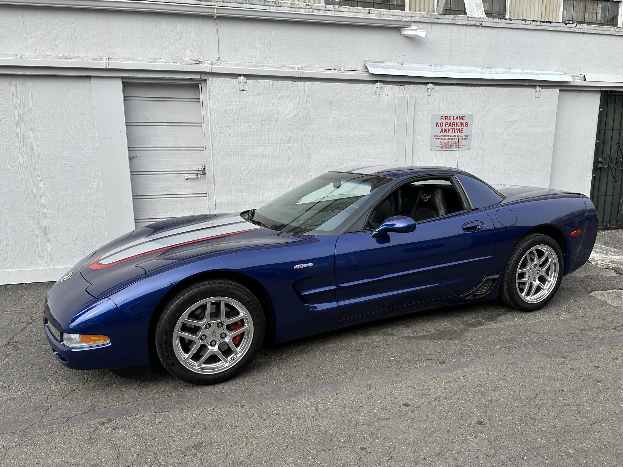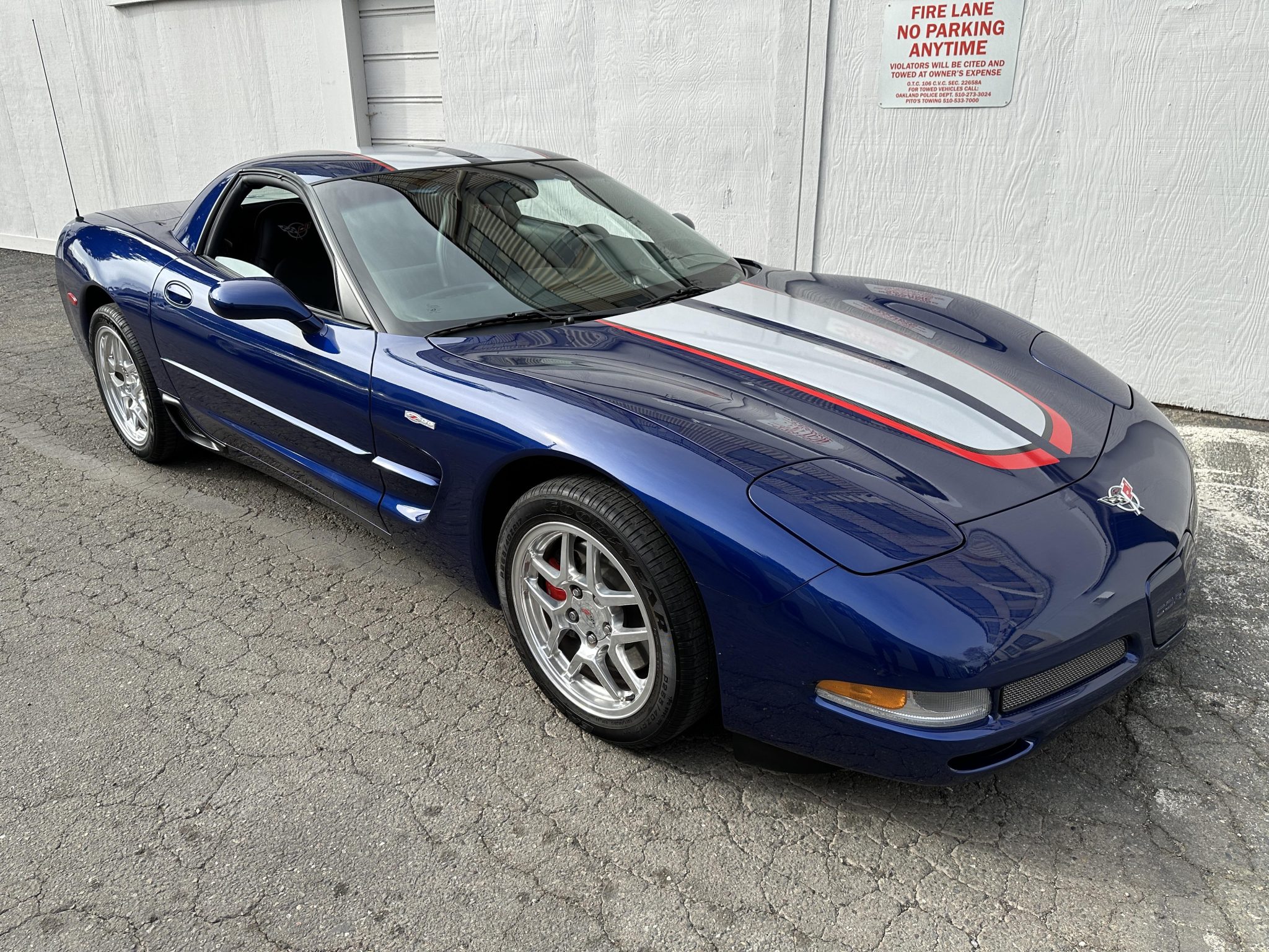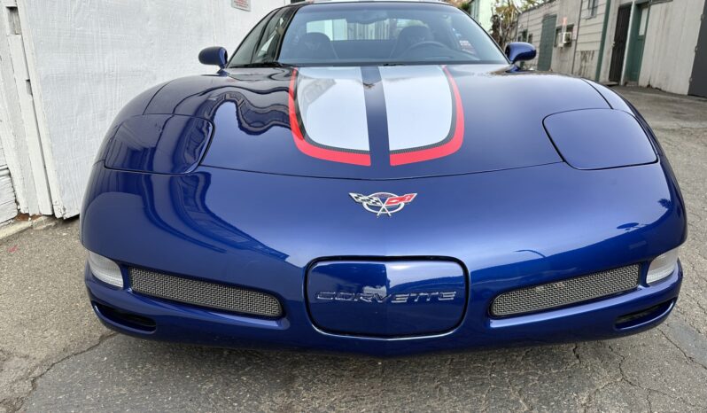 This 2004 Chevrolet Corvette Z06 is one of 2,025 Commemorative Edition models produced to celebrate the C5-R’s class victories at the 24 Hours of Le Mans. Power is provided by a 5.7-liter LS6 V8 linked to a six-speed manual gearbox and a limited-slip differential and is finished in Le Mans Blue over black leather. Equipment includes Commemorative Edition-specific polished lightweight wheels, a carbon-fiber hood, racing stripes, and a titanium exhaust system as well as 17″ and 18″ lightweight alloy wheels, pop-up headlights, dual-zone climate control, cruise control, a head-up display, a power-adjustable driver’s seat, a Bose sound system, and a CD stereo.