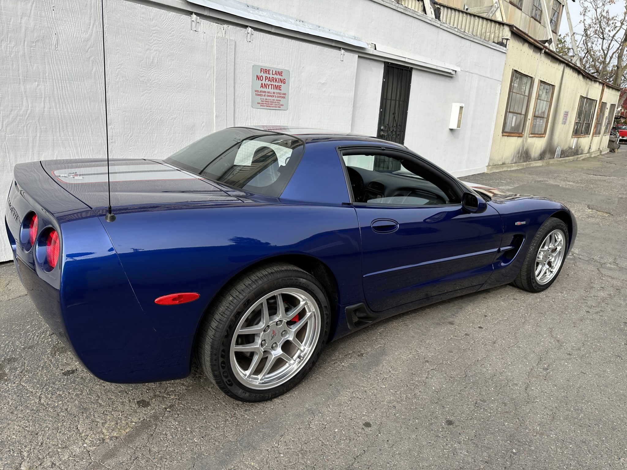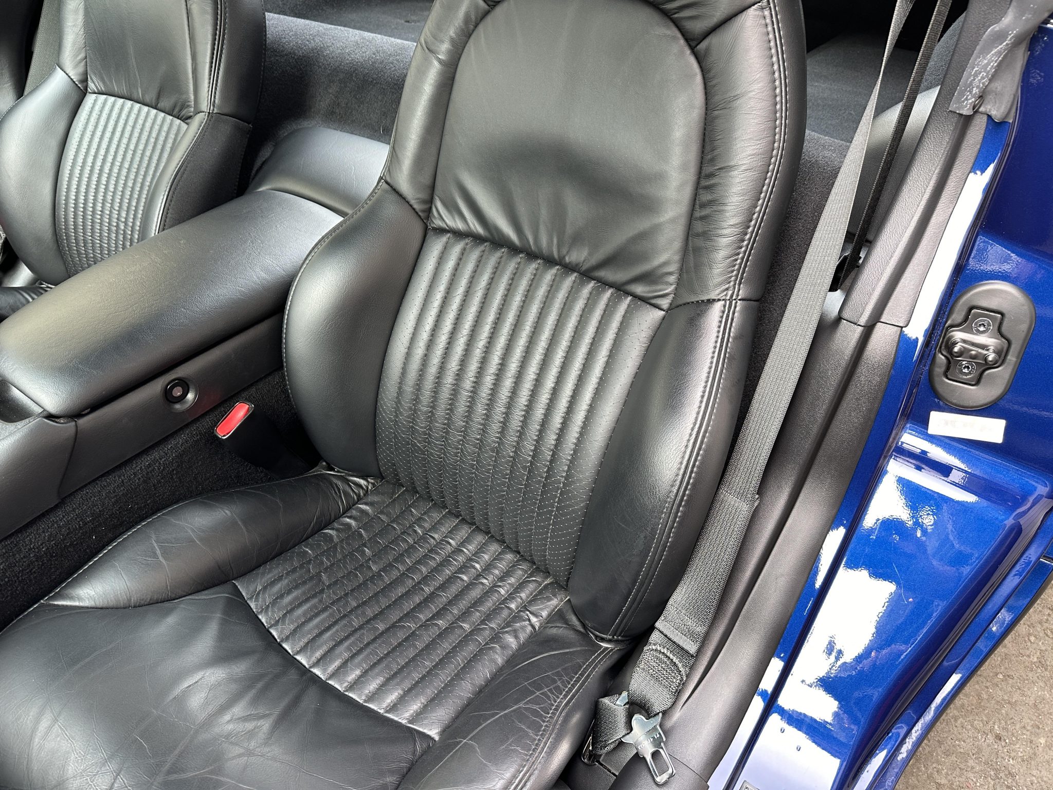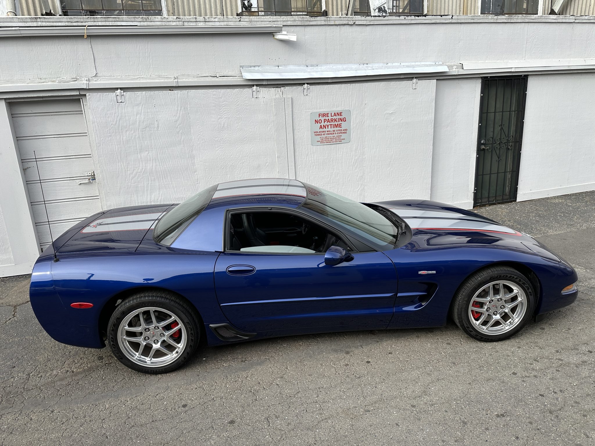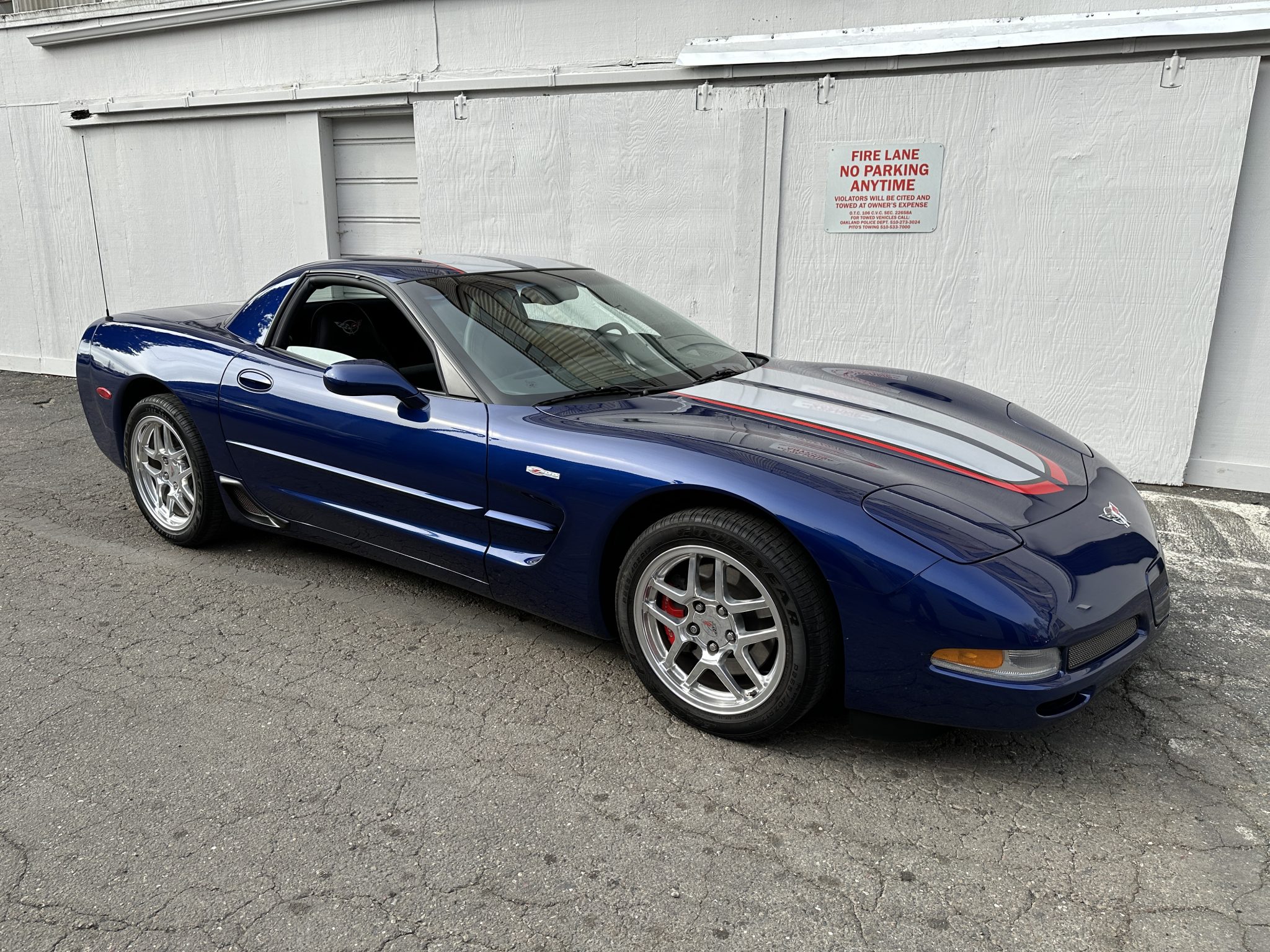 This 2004 Chevrolet Corvette Z06 is one of 2,025 Commemorative Edition models produced to celebrate the C5-R’s class victories at the 24 Hours of Le Mans. Power is provided by a 5.7-liter LS6 V8 linked to a six-speed manual gearbox and a limited-slip differential and is finished in Le Mans Blue over black leather. Equipment includes Commemorative Edition-specific polished lightweight wheels, a carbon-fiber hood, racing stripes, and a titanium exhaust system as well as 17″ and 18″ lightweight alloy wheels, pop-up headlights, dual-zone climate control, cruise control, a head-up display, a power-adjustable driver’s seat, a Bose sound system, and a CD stereo.