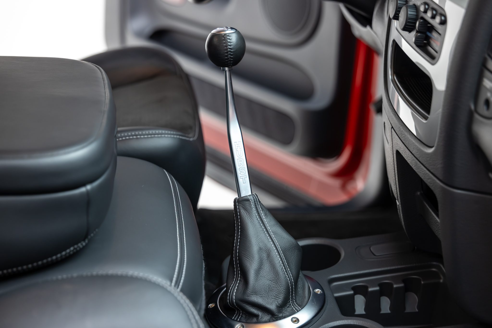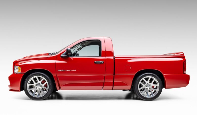 This 2004 Dodge Ram SRT-10 is a regular-cab pickup that has 1,600 miles, and it is powered by a Viper-sourced 8.3-liter V10 linked with a six-speed manual transmission and a limited-slip differential. The truck is finished in Flame Red over Dark Slate Gray leather and suede, and appointments include a rear spoiler, a sliding rear window, polished 22″ alloy wheels, a power-adjustable driver’s seat, a Hurst shifter, and an eight-speaker Infinity sound system with a subwoofer and an in-dash six-CD changer.