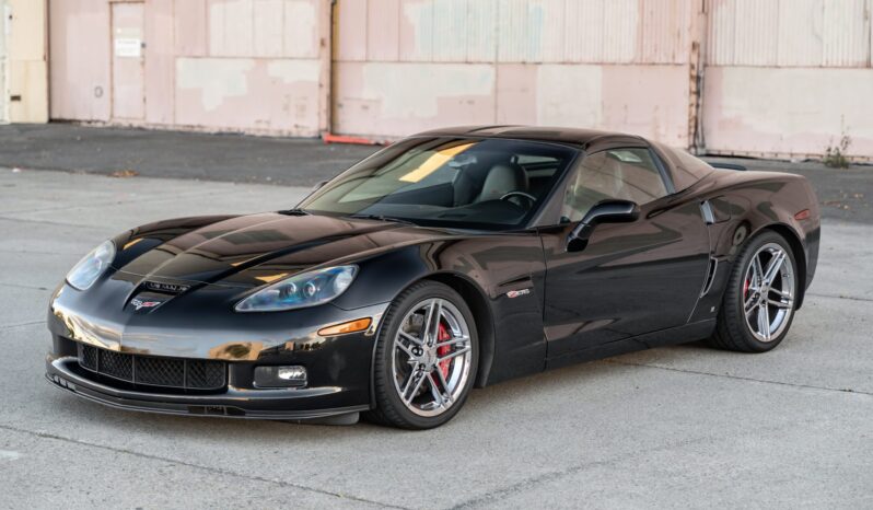 This 2006 Chevrolet Corvette Z06 is a black-over-black coupe and its 7.0-liter LS7 V8 was subsequently retrofitted with a Brian Tooley Racing Stage 3 camshaft, a Smith Brothers trunnion kit, Johnson lifters, and an ATI balancer. Shifting is through a six-speed manual gearbox linked to a limited-slip differential, and the car is further equipped wtih staggered-diameter wheels, xenon headlights, a Bose sound system, navigation, a head-up display, and heated seats as well as a Monster Clutches twin-disc clutch and a custom exhaust system with Mild2Wild electronic cutouts.