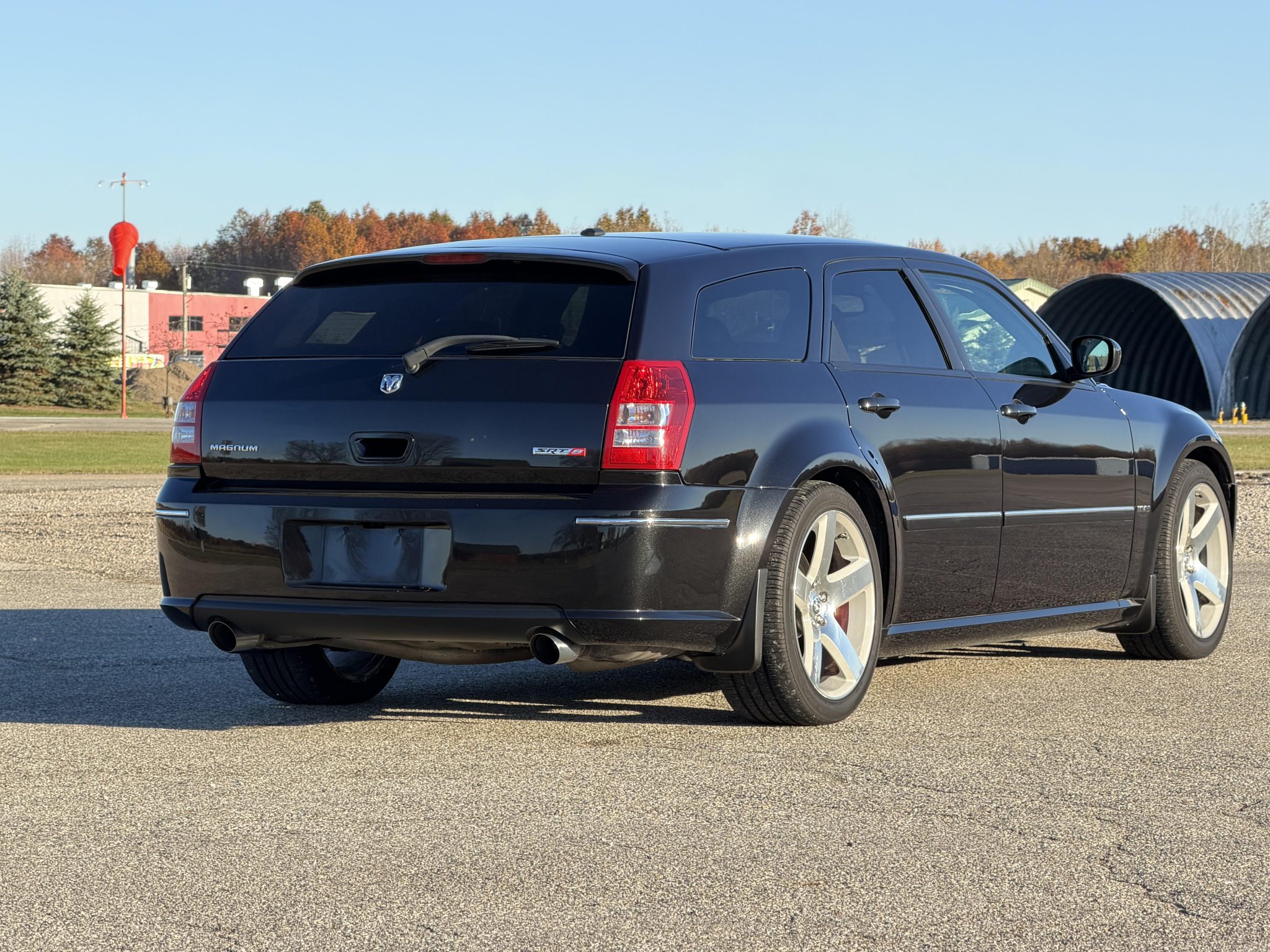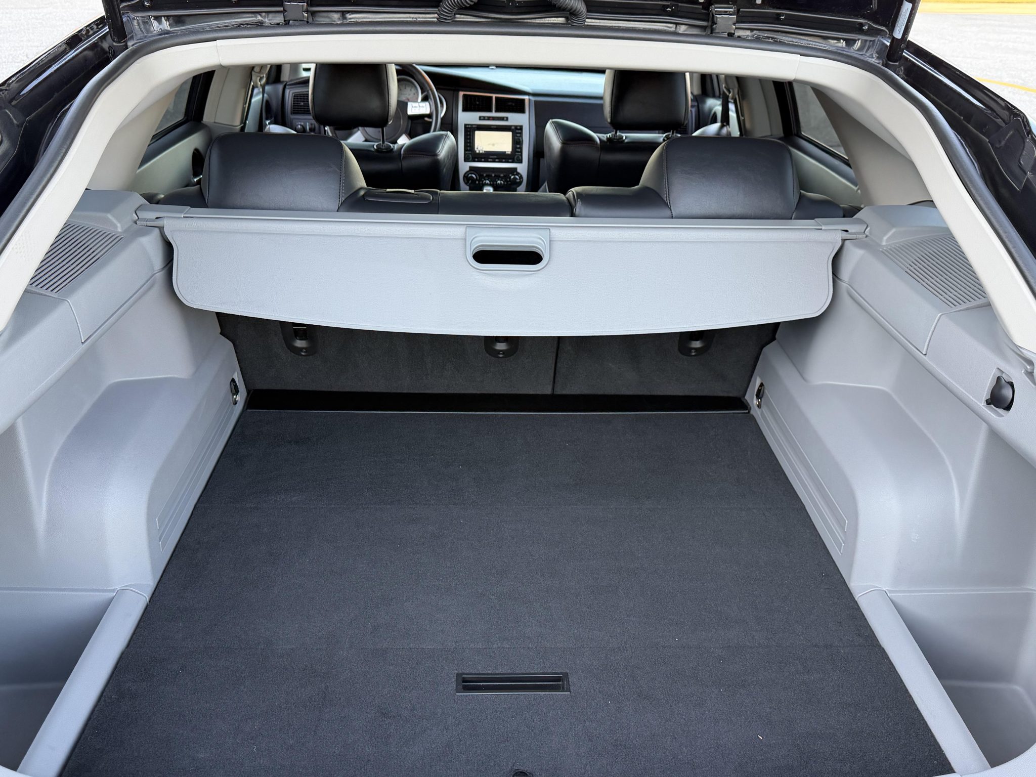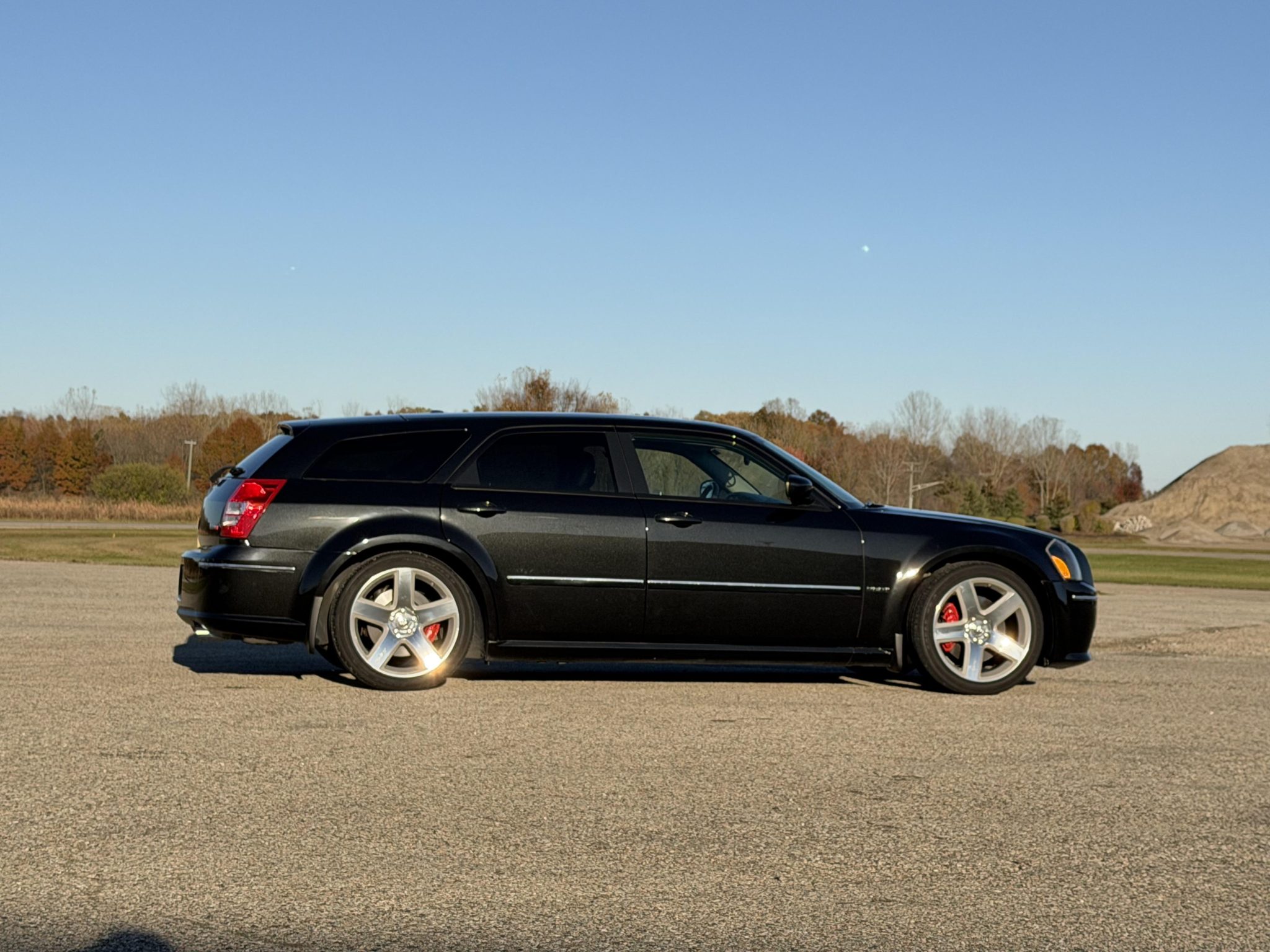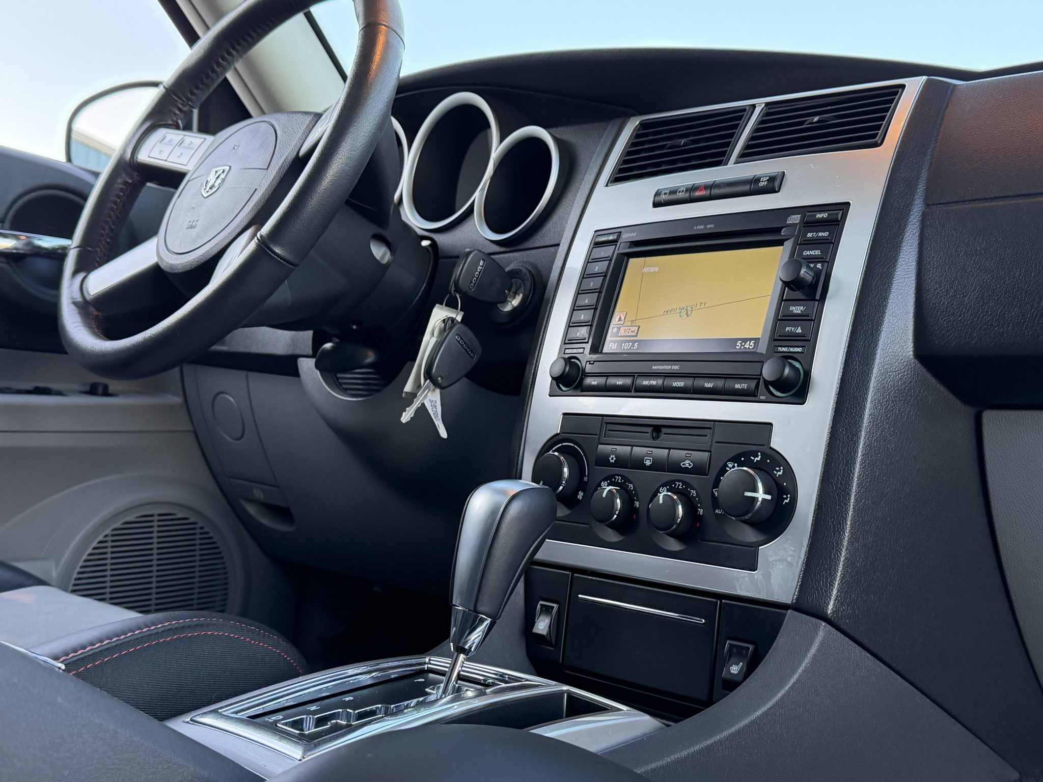 Indicating 15k miles, the car is powered by a 6.1-liter Hemi V8 linked with a five-speed automatic transmission and a limited-slip differential, and it is finished in Brilliant Black Crystal Pearl over Dark Slate Gray leather and microsuede. Equipment includes the SRT Option Group III, a sunroof, 20″ five-spoke alloy wheels, heated power-adjustable front seats, a navigation system, and dual-zone automatic climate control.