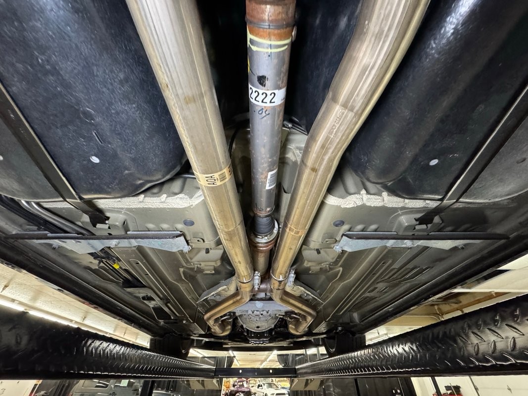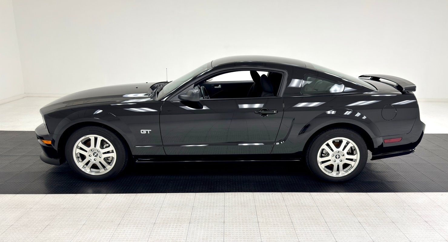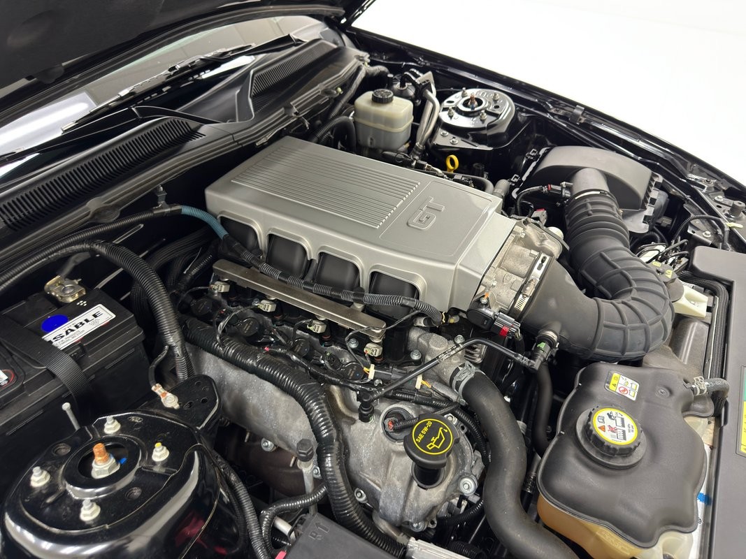 Ford went all out for the design, reminiscent of the early models with beefier proportions and a more refined line aspect. The front of the car is more "aero" designed, and has an integrated body matching bumper, blackened honeycomb grille with inboard fog lights Under the hood sits the spotless 4.6 liter 3 valve V8 rated at a healthy 300 horsepower and backed by a Tremec 3650 5-speed manual transmission. Power is routed to the Ford 8.8" rear with 3.55 gears and TracLoc. This modern pony car has four wheel power disc brakes for bringing sprints down to a trot.