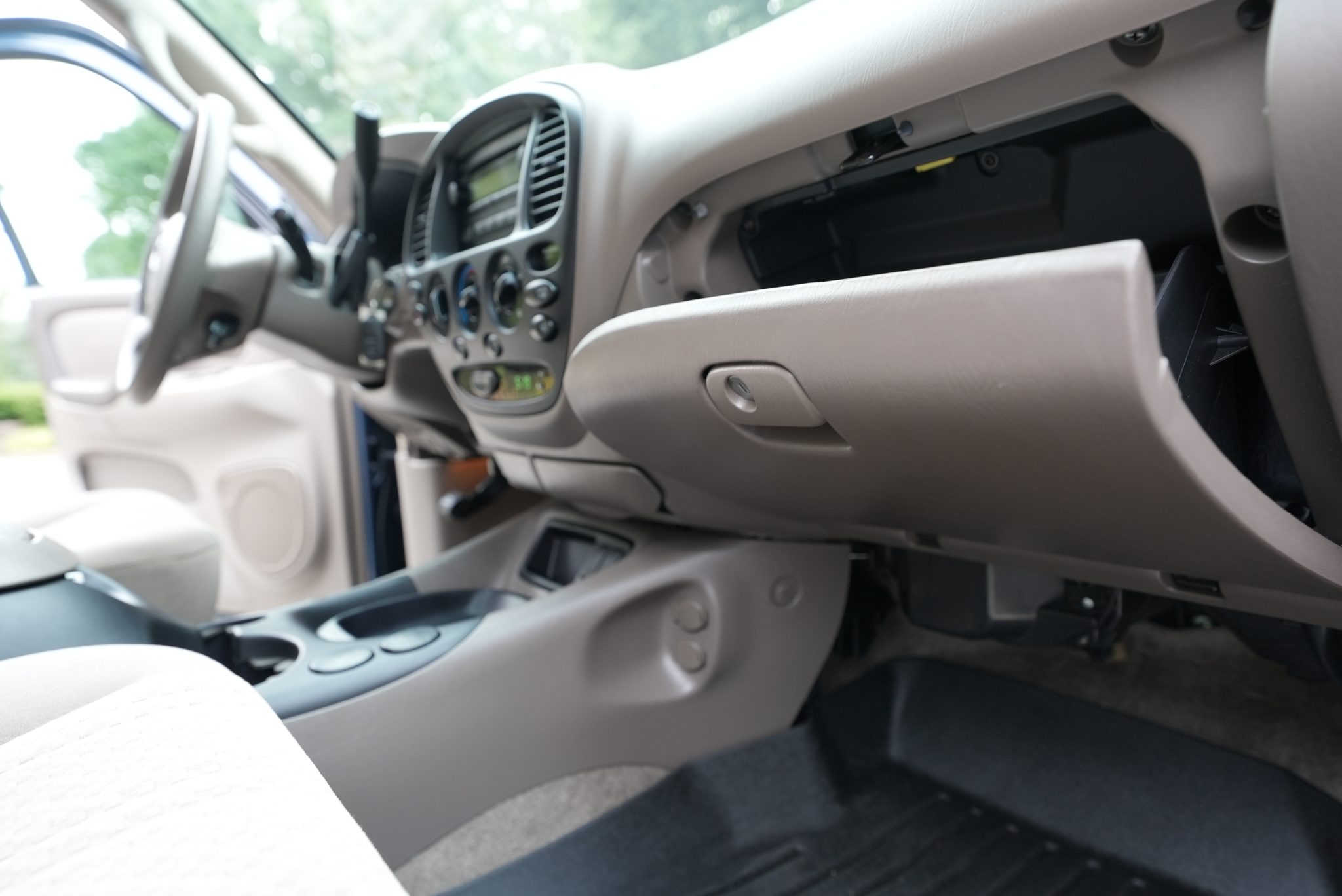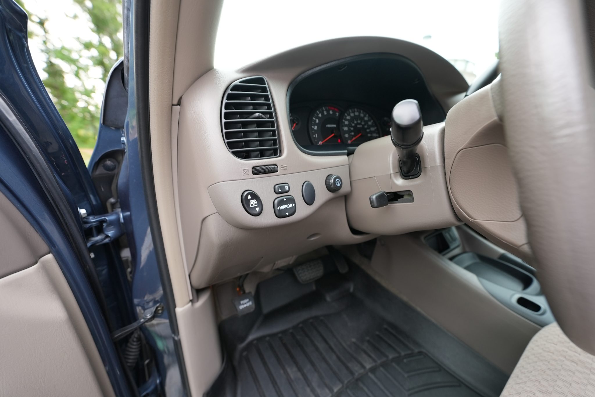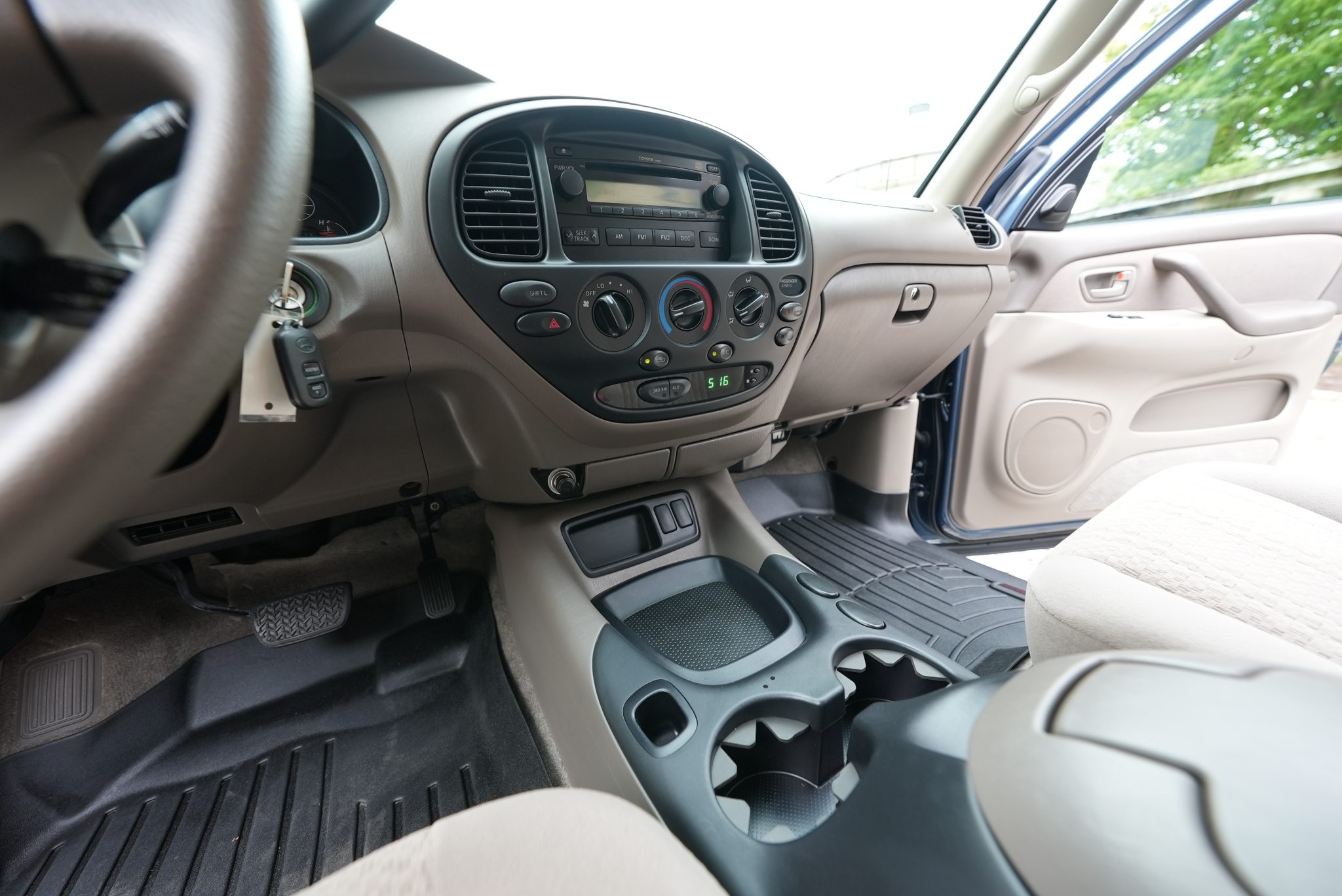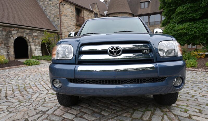 This 2006 Toyota Tundra SR5 TRD is a Double Cab pickup that is finished in Bluesteel Mica over taupe fabric and powered by a 4.7-liter V8 linked to a five-speed automatic transmission and an electronically shifted dual-range transfer case. Factory equipment includes the SR5 and TRD Off-Road packages as well as a CD stereo, cruise control, air conditioning, and power windows and locks.