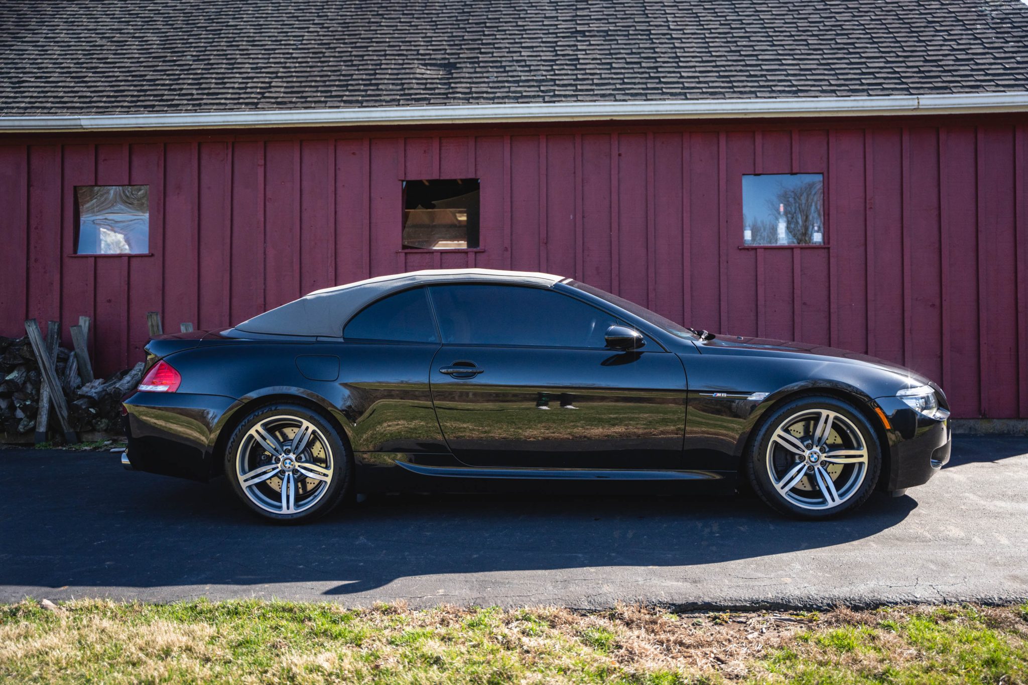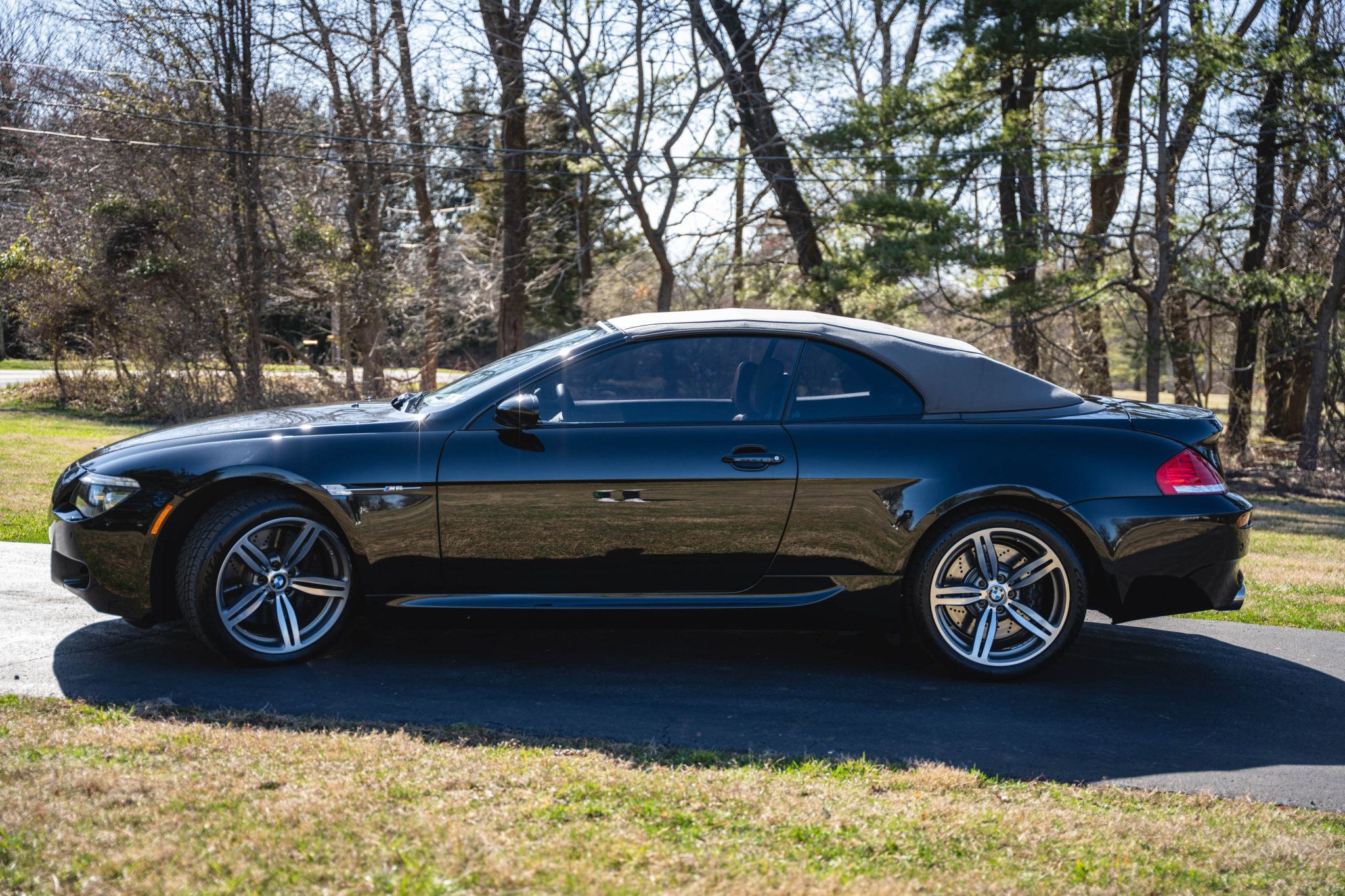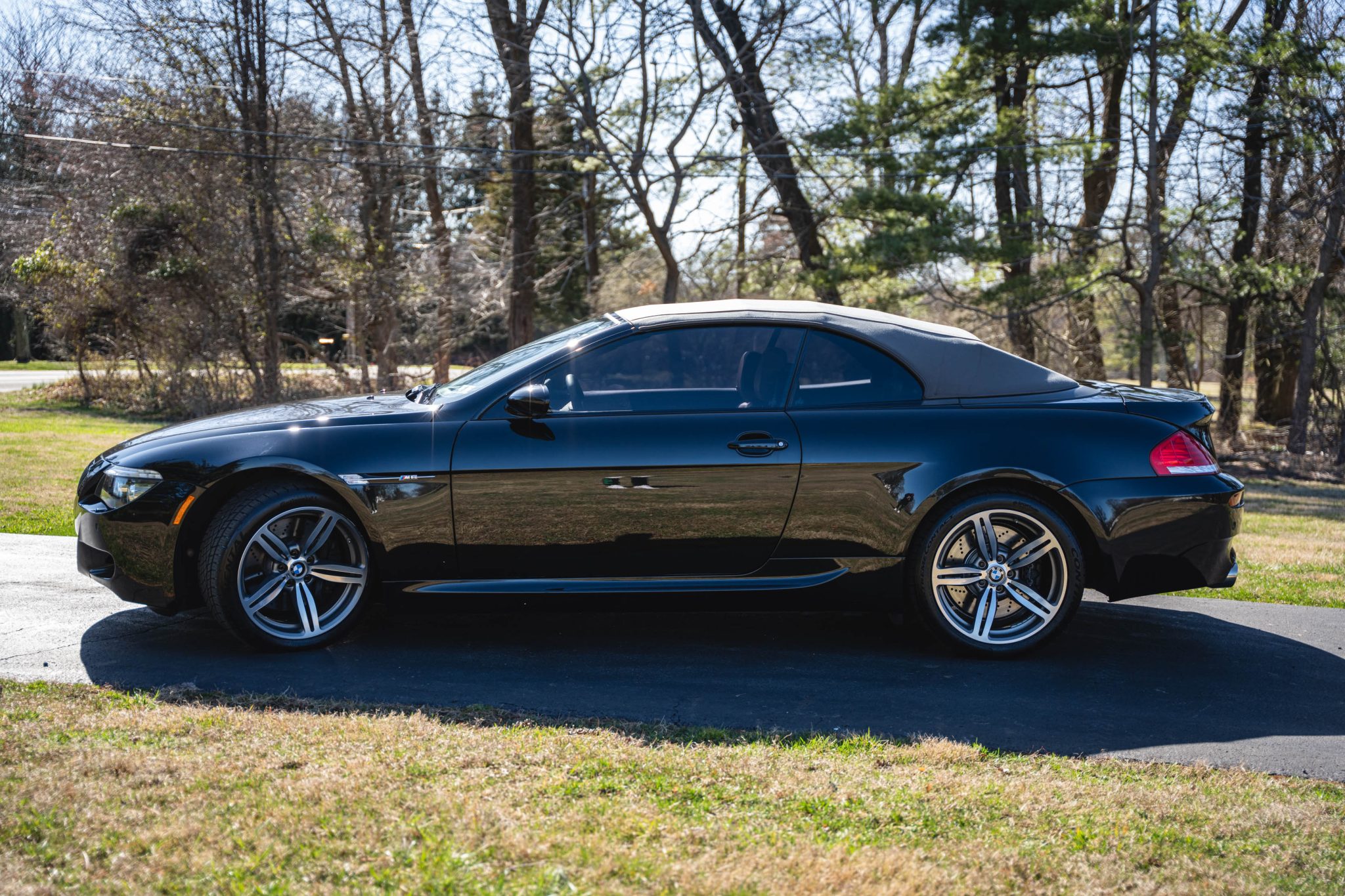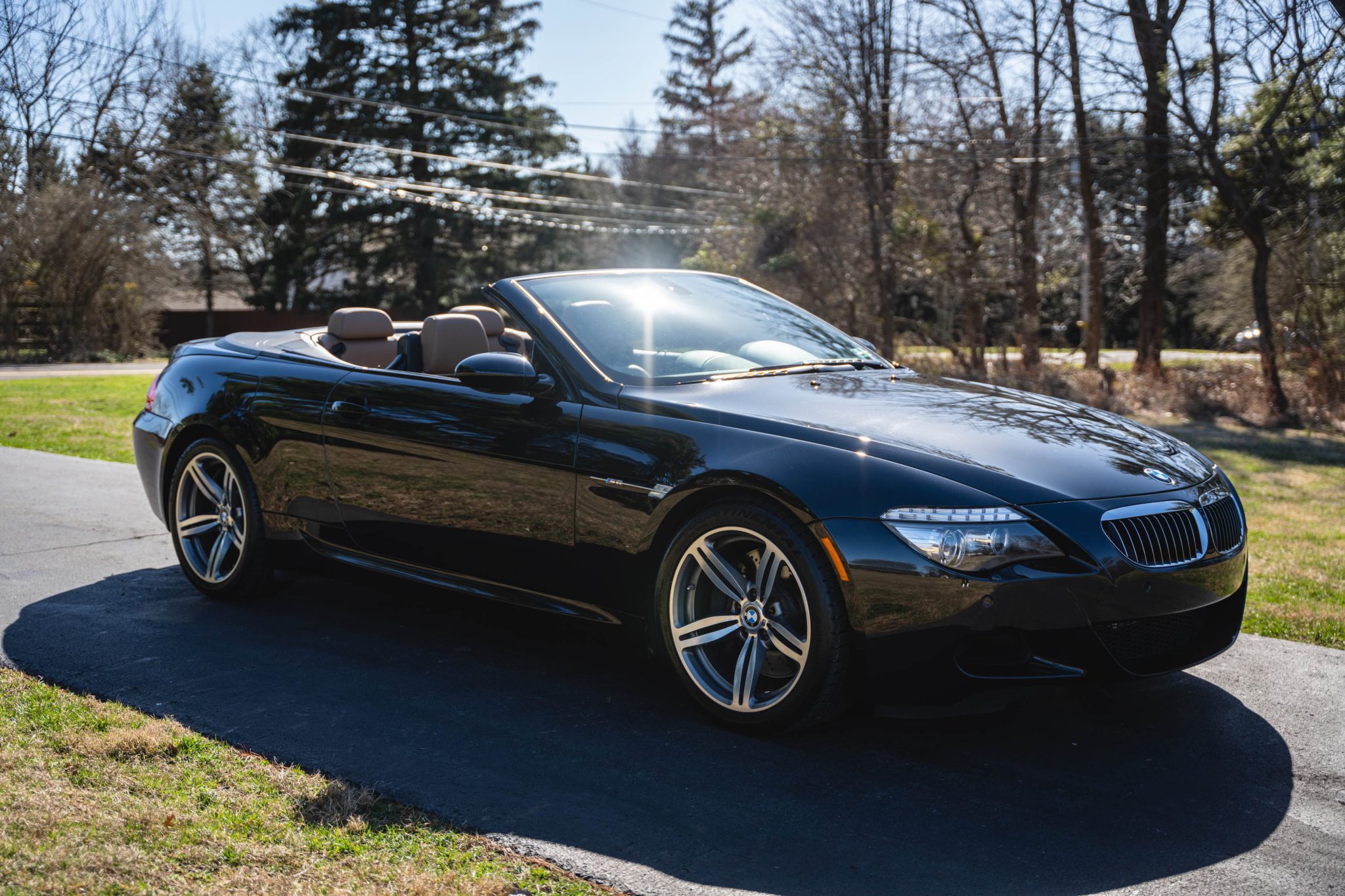 Modifications include an ESS Tuning supercharger system, Evolve tubular headers, and a P3 Gauges vent gauge. Finished in Black Sapphire metallic over Portland Brown Merino leather, the car is powered by a 5.0-liter V10 paired with a six-speed manual transmission. Equipment includes a gray convertible soft top, 19″ Style 167M alloy wheels, Dynamic Stability Control, Park Distance Control, heated power-adjustable front seats, Comfort Access, an Enhanced Premium sound system, a head-up display, and iDrive with navigation.