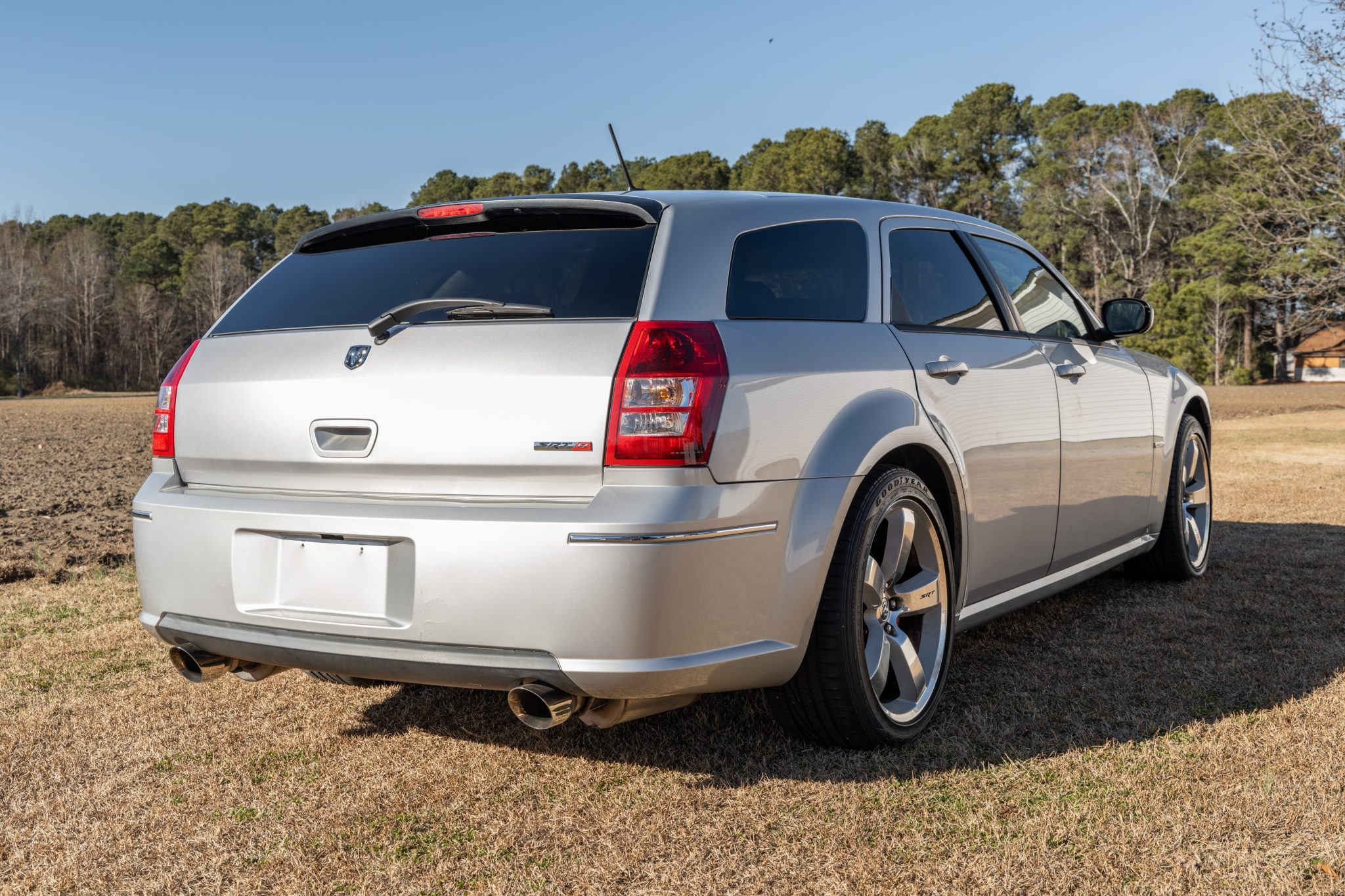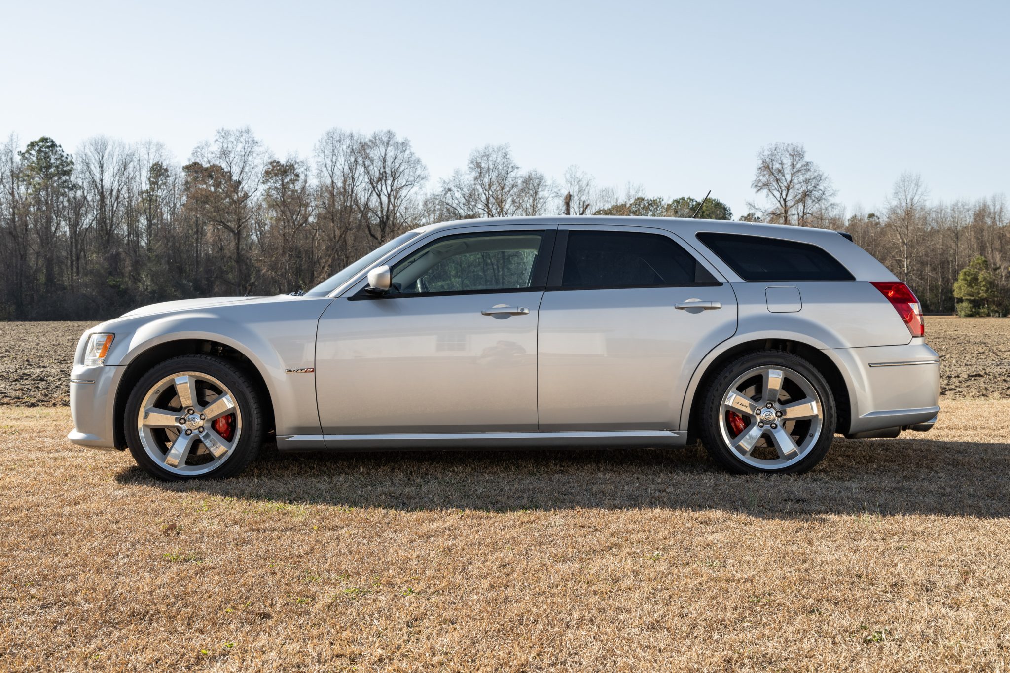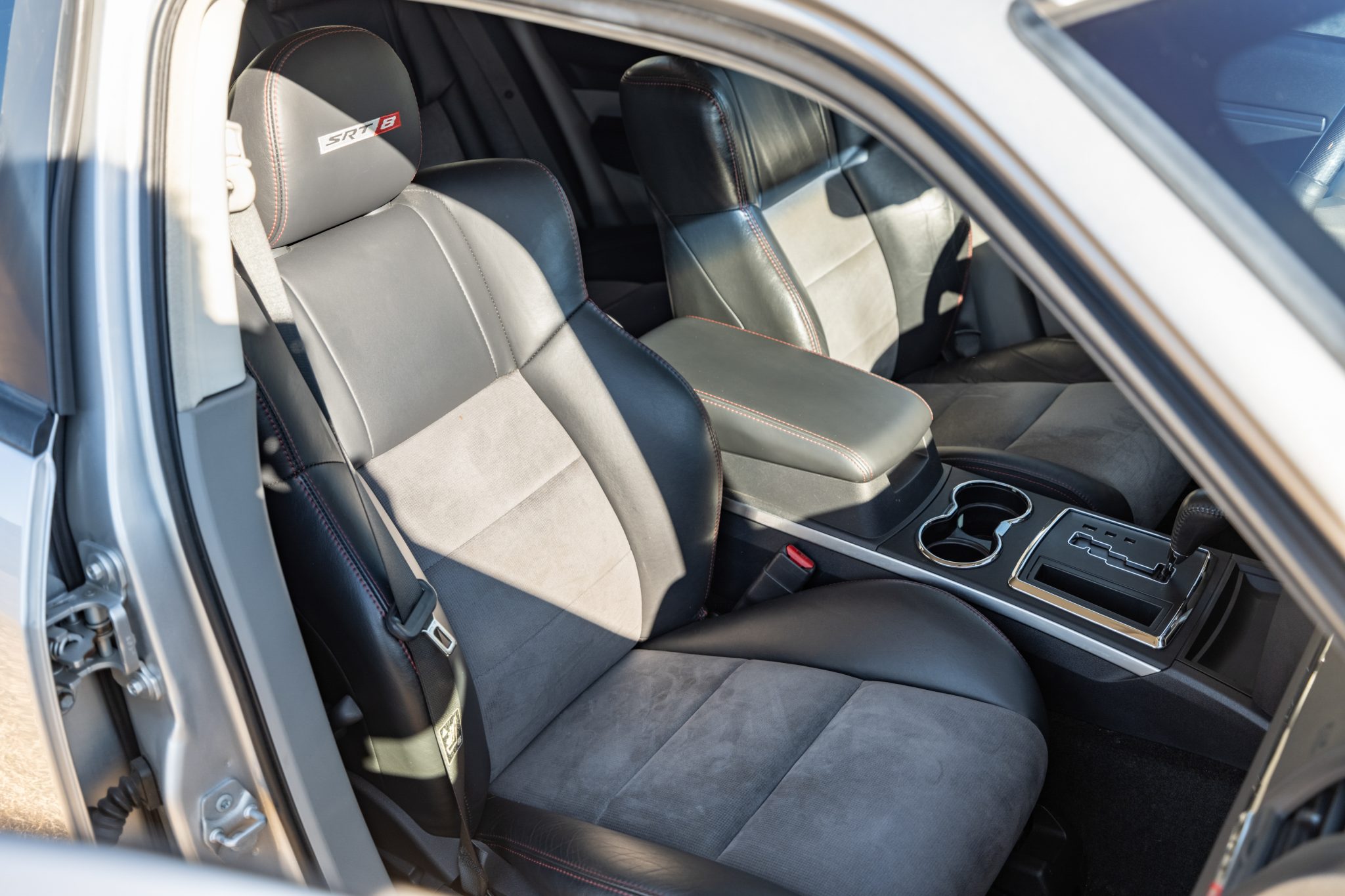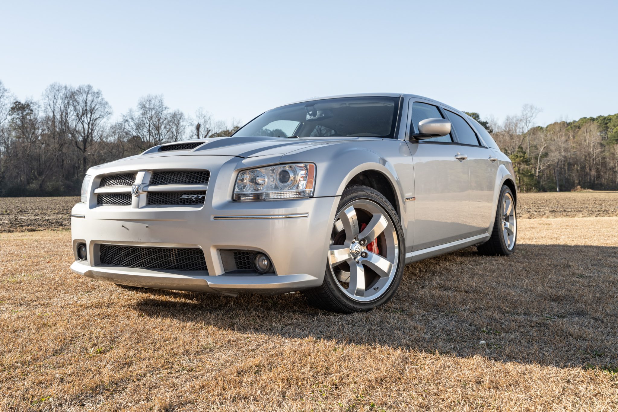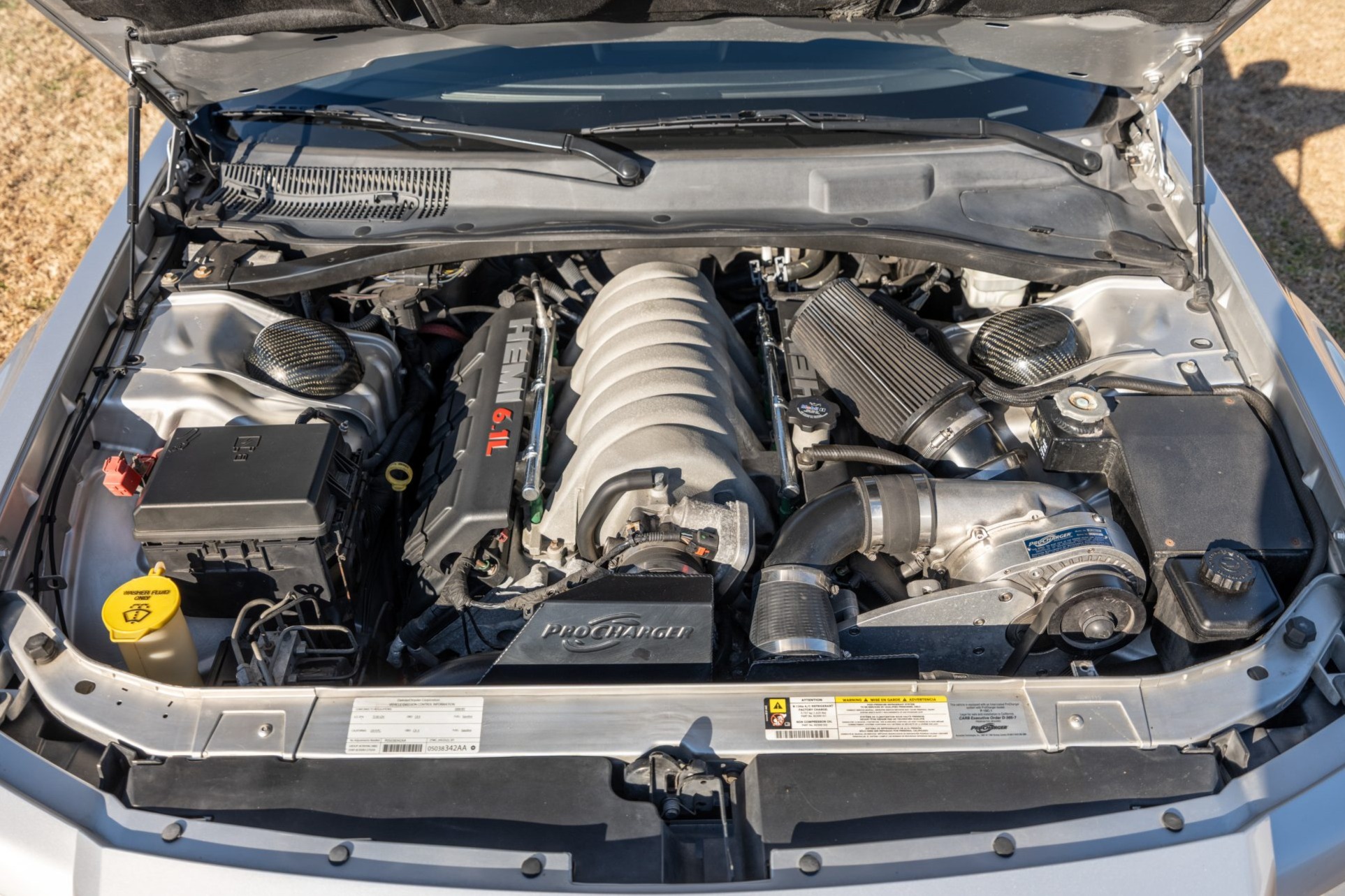Finished in Bright Silver Metallic over two-tone Slate Gray upholstery, the car is powered by a supercharged 6.1-liter Hemi V8 linked with a five-speed automatic transmission. Equipment includes the SRT Option Group III as well as a ProCharger supercharger, a Corsa Performance exhaust system, Eibach sway bars, Bilstein dampers, Brembo disc brakes, 20″ alloy wheels, xenon headlights, power-adjustable front seats, air conditioning, navigation, and a touchscreen infotainment system linked to a Boston Acoustics sound system.
