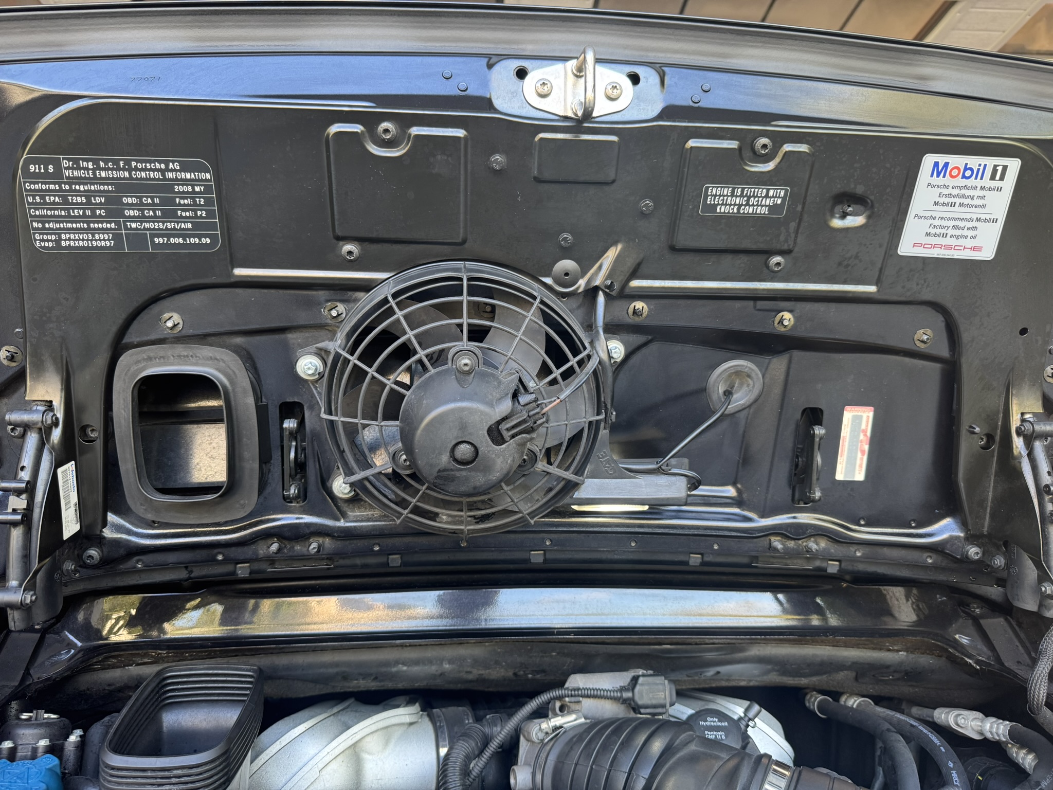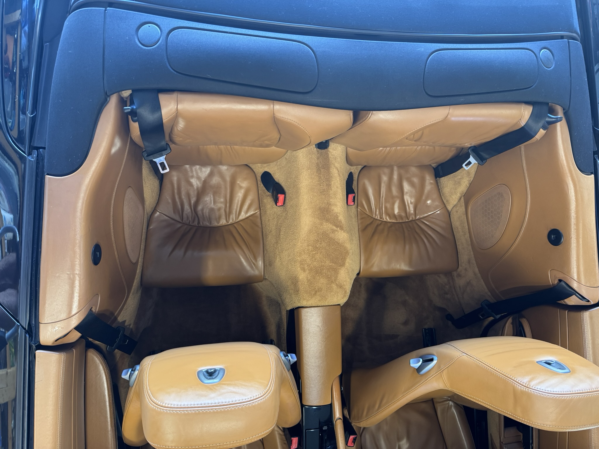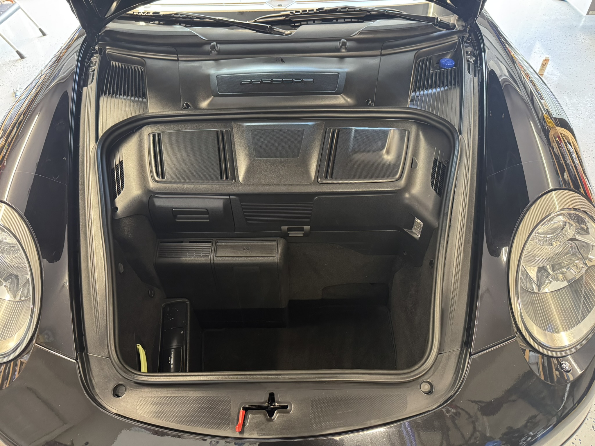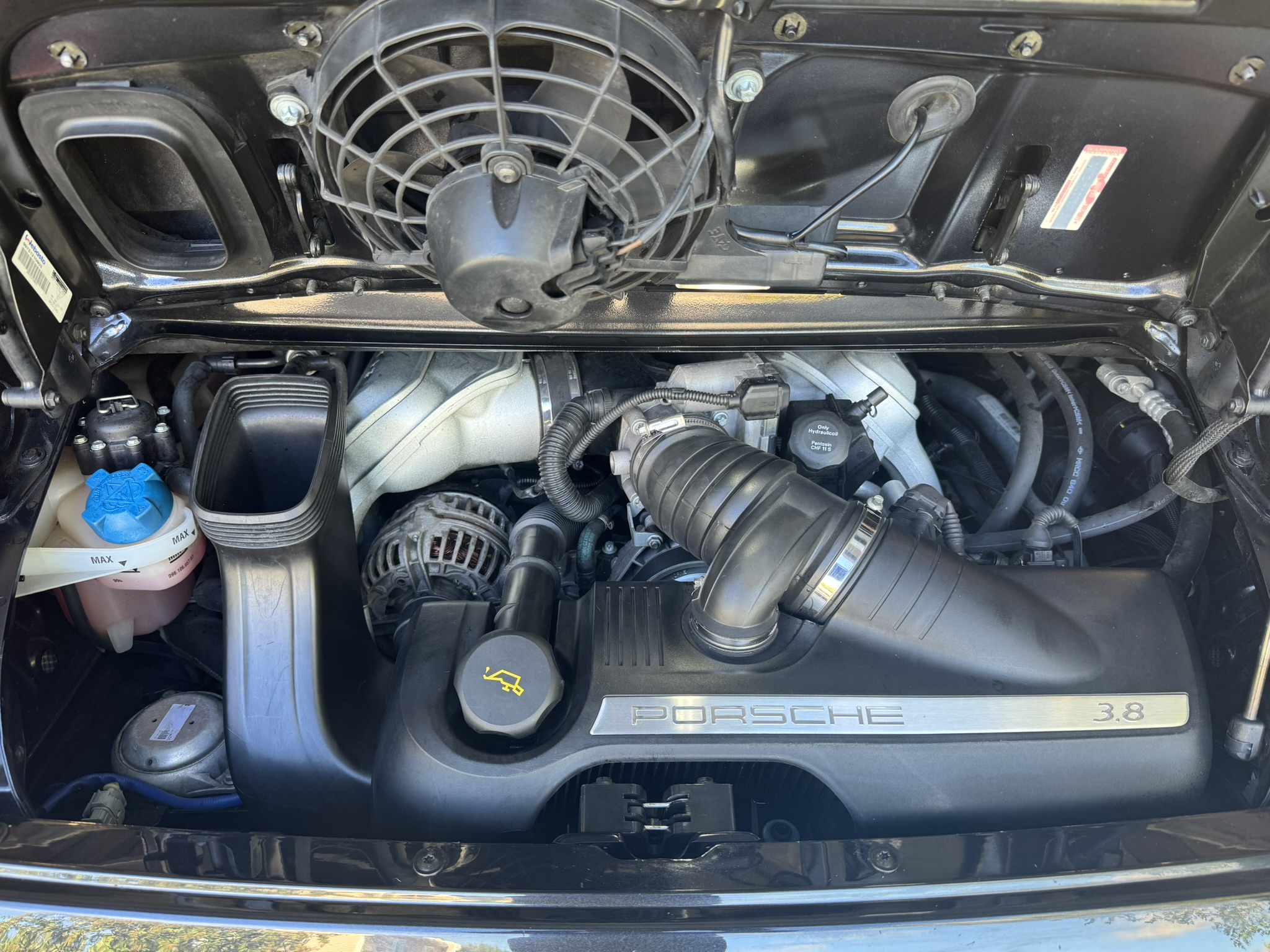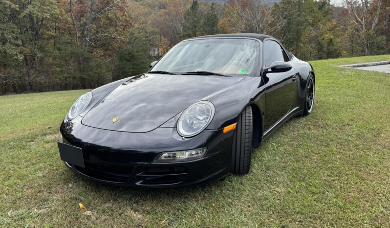 This 2008 Porsche 911 Carrera 4S cabriolet is finished in Basalt Black Metallic over Natural Brown Supple leather and is powered by a 3.8-liter flat-six that drives all four wheels through a six-speed manual transaxle. Equipment includes the Sport Chrono Plus, Bose High-End Sound, and Power Seat packages as well as H&R lowering springs, 19″ Carrera S wheels, PASM dampers, a Black soft top, heated front seats, and an Alpine touchscreen infotainment system with front and rear cameras. This 997.1 C4S cabriolet