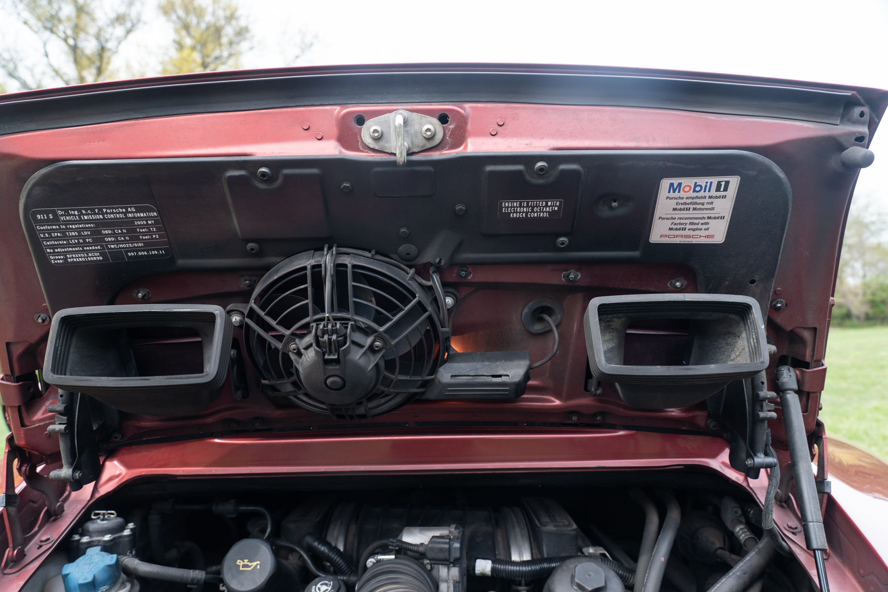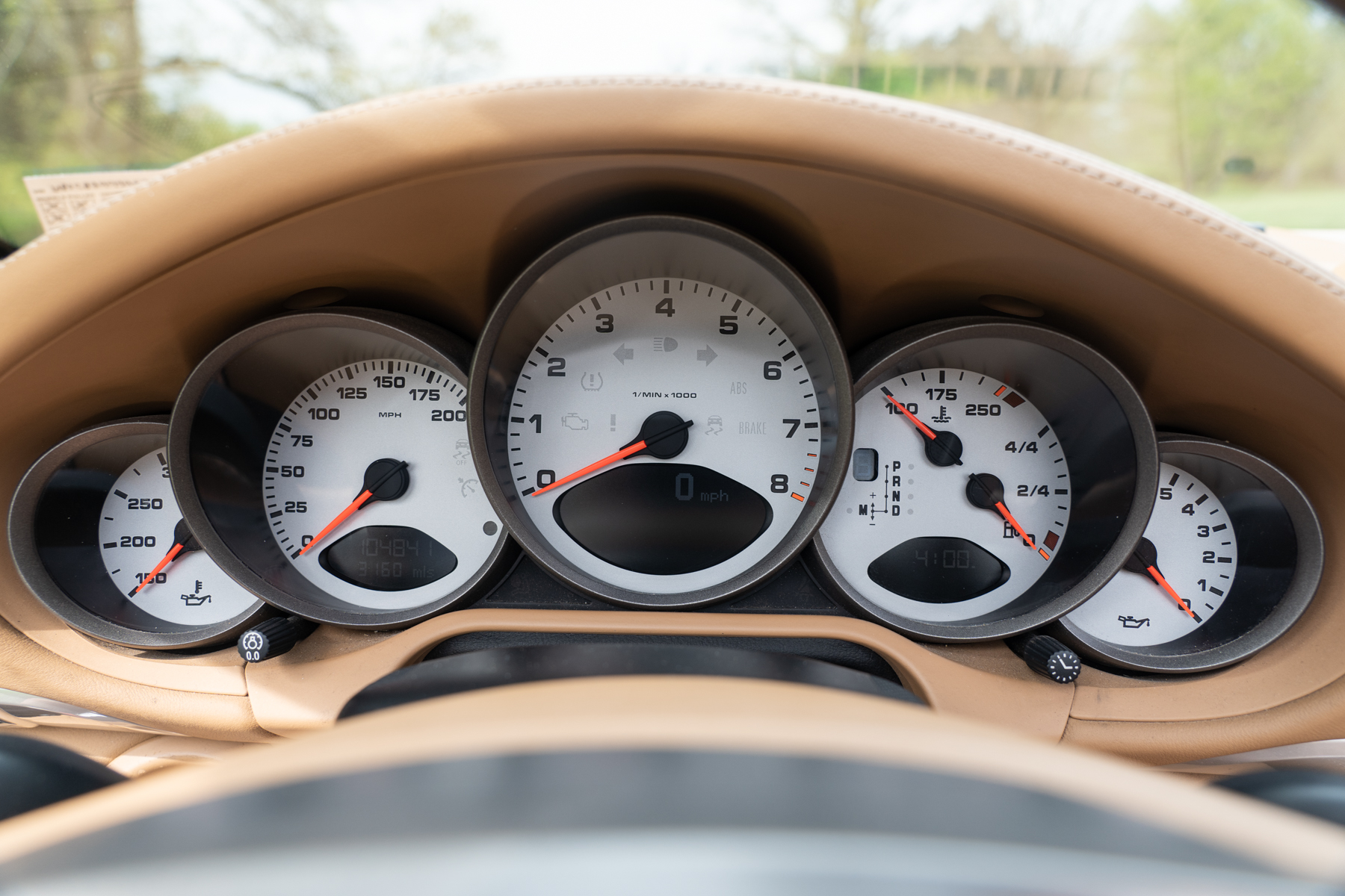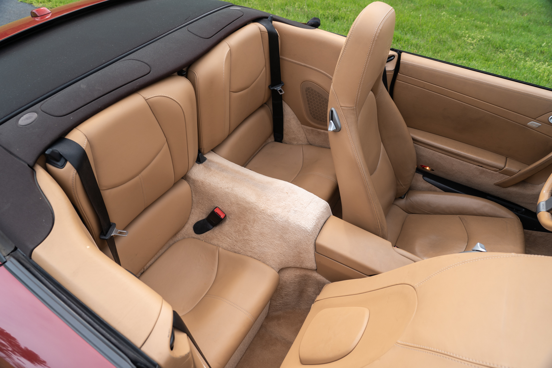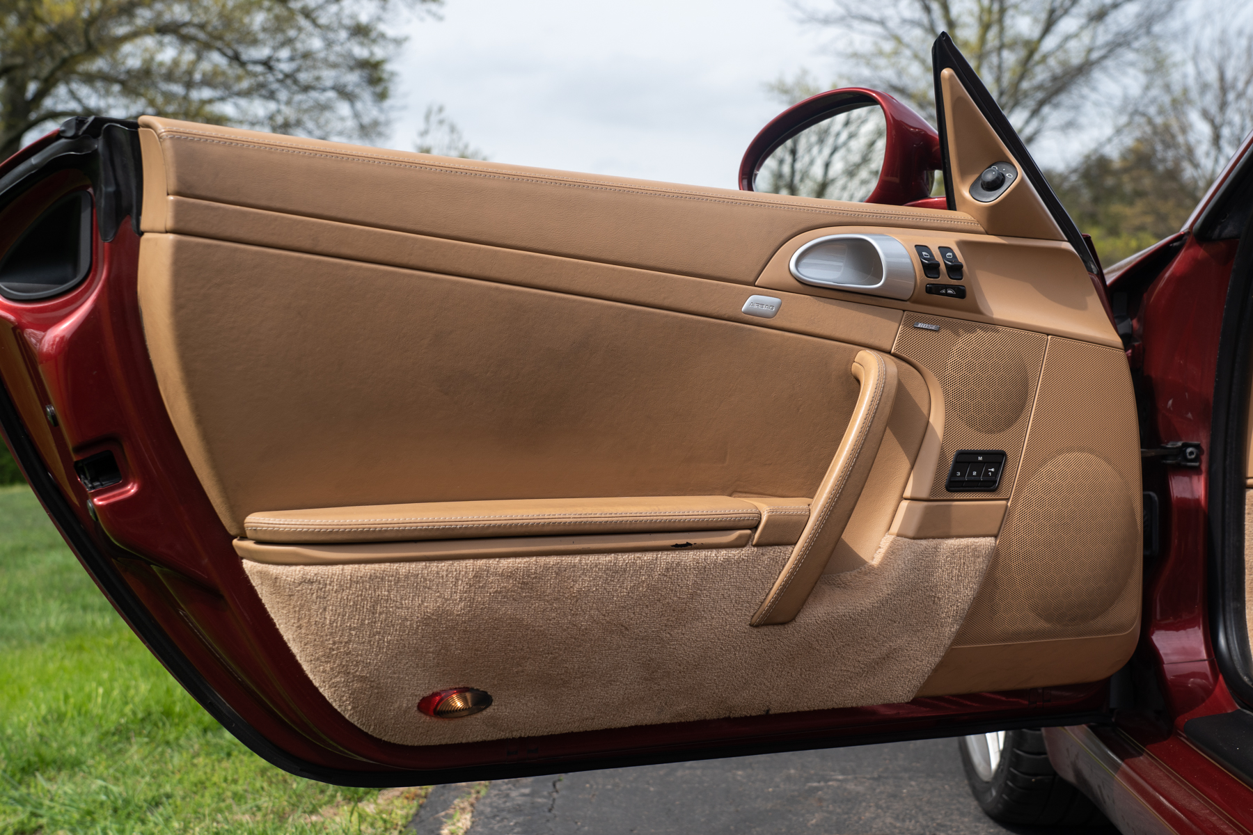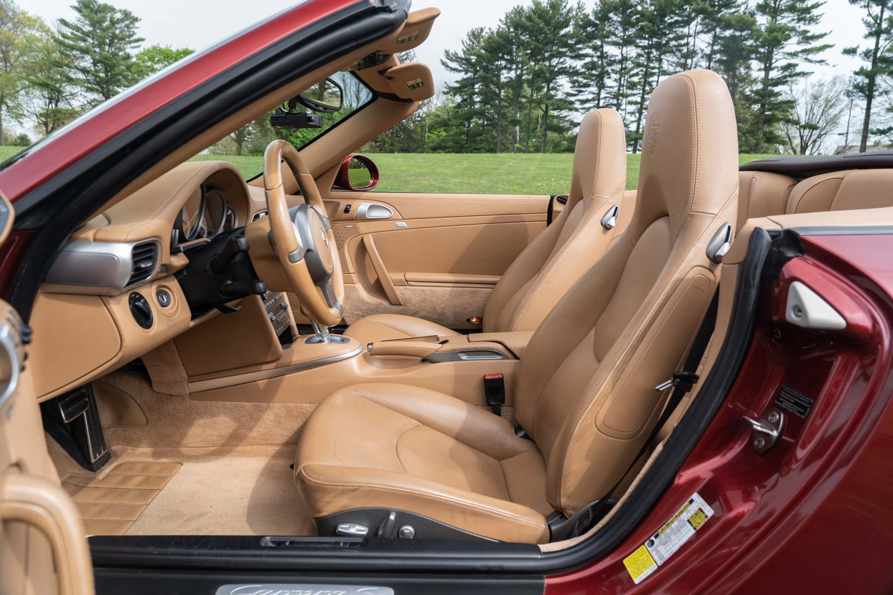 This 2009 Porsche 911 Carrera S cabriolet is powered by a 3.8-liter flat-six paired with a seven-speed PDK dual-clutch transaxle and is finished in Ruby Red Metallic over Sand Beige full leather. Equipment includes the Sport Chrono Package, a Cocoa soft top, 19” Carrera S II wheels, a deployable rear spoiler, bi-xenon headlights, PCM with navigation, a Bose High End sound system, heated and ventilated front seats, automatic climate control, and cruise control. Recent maintenance has included fluids services and replacing the spark plugs.