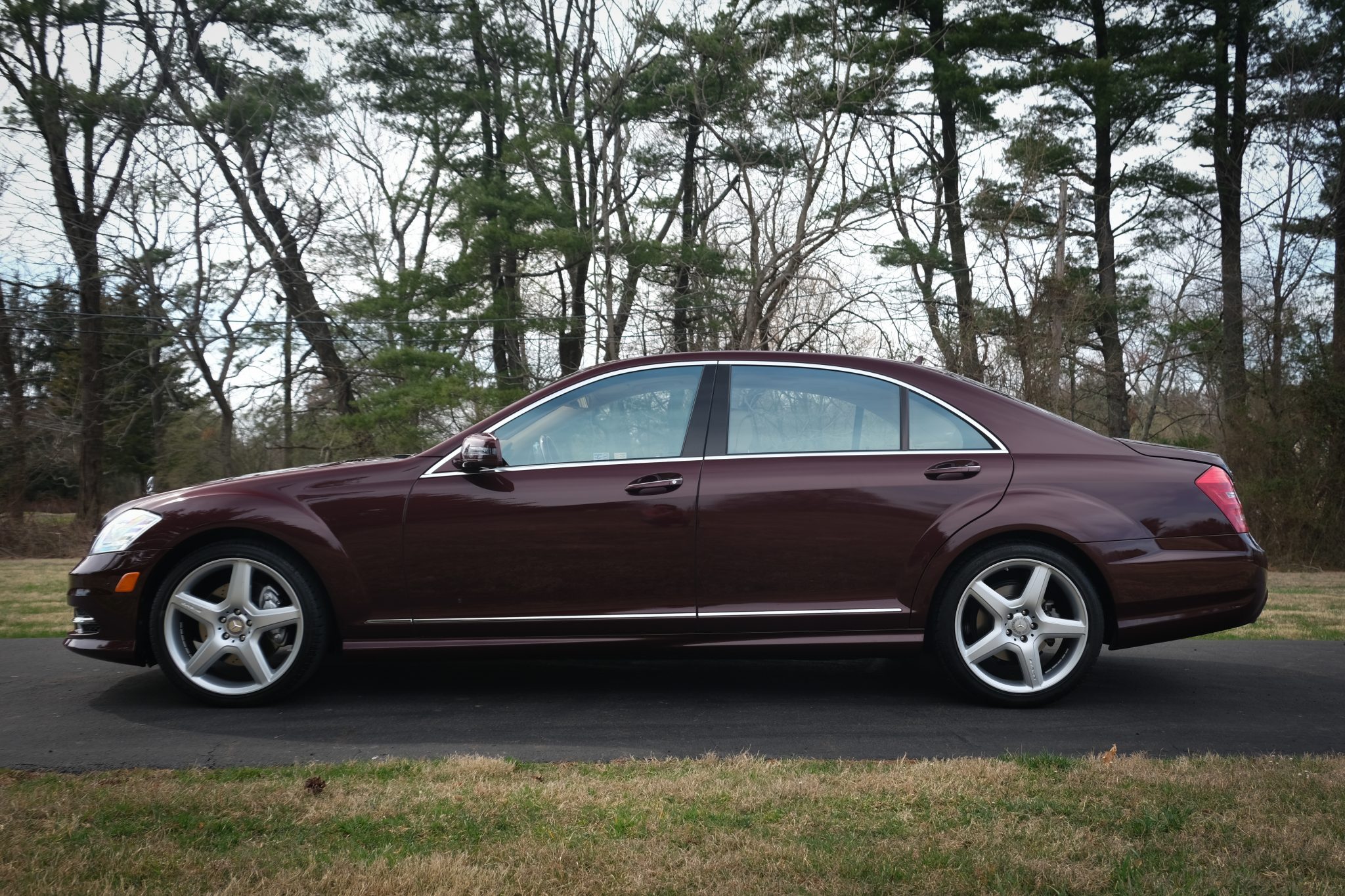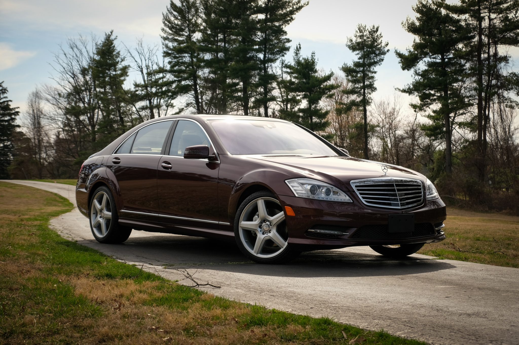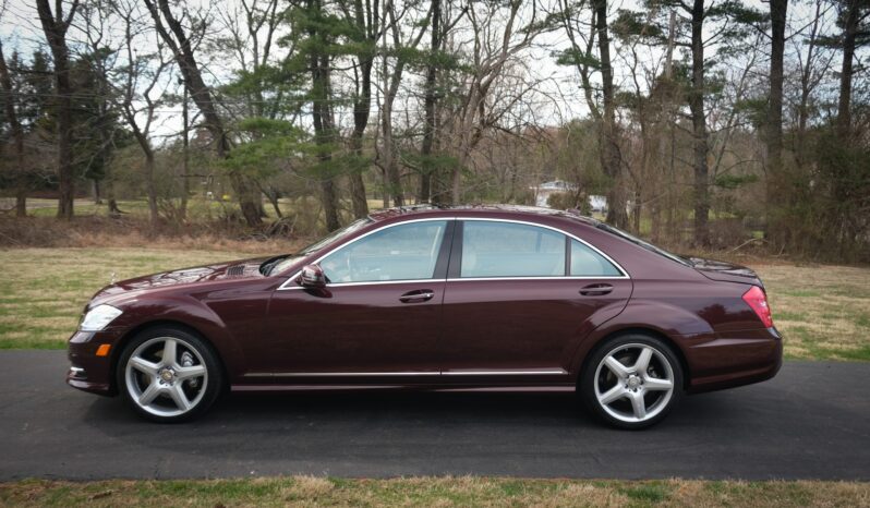 The car is powered by a 5.5-liter V8 paired with a seven-speed automatic transmission and is finished in Barolo Red Metallic over Savanna and Cashmere leather upholstery. Equipment includes the Sport Package Plus One, 20″ five-spoke AMG wheels, bi-xenon headlights, a sunroof, Parktronic, soft-close doors, Keyless-Go, Distronic Plus adaptive cruise control, a backup camera, COMAND with navigation, a Harman Kardon sound system, and heated power-adjustable front seats.