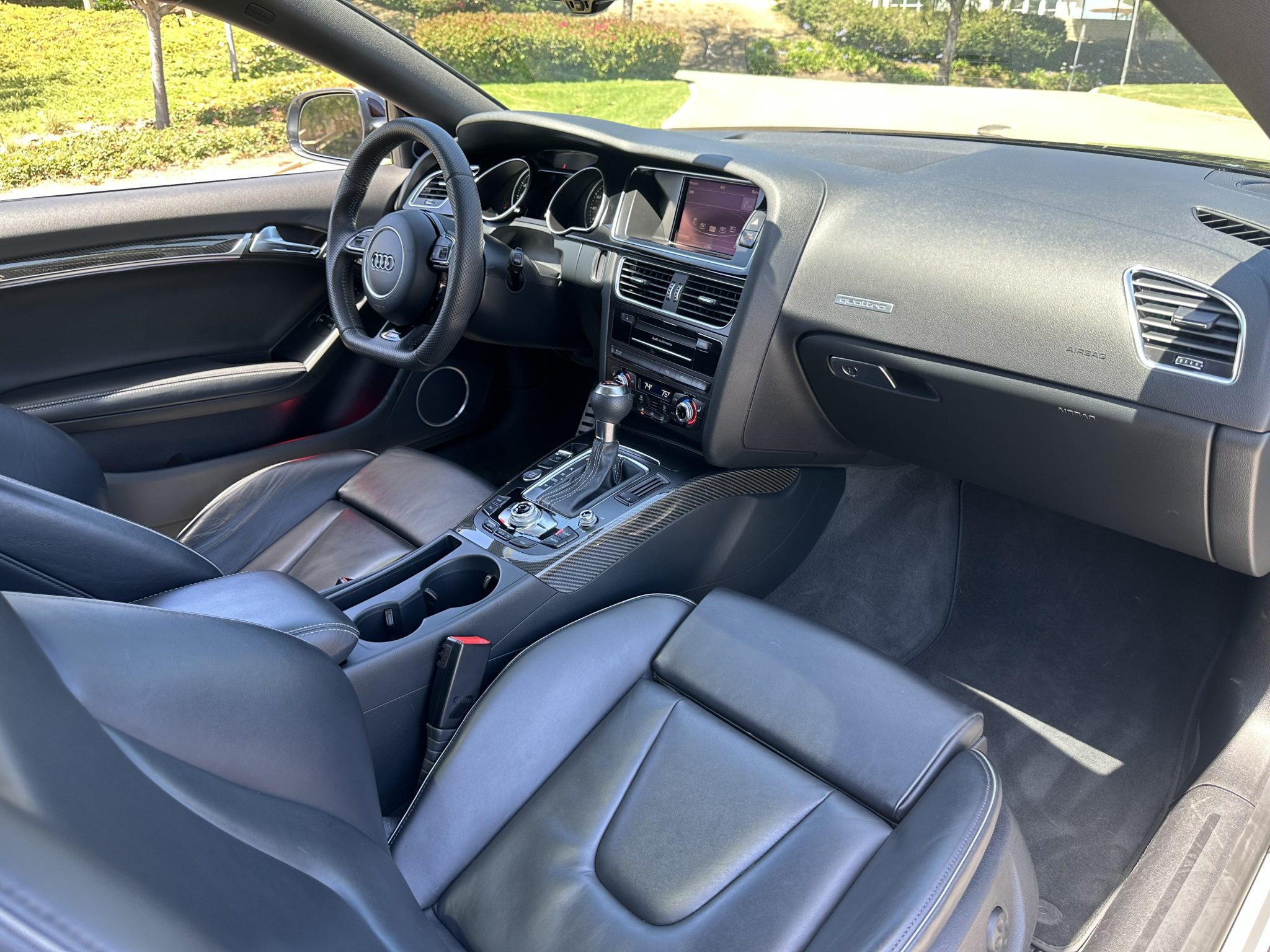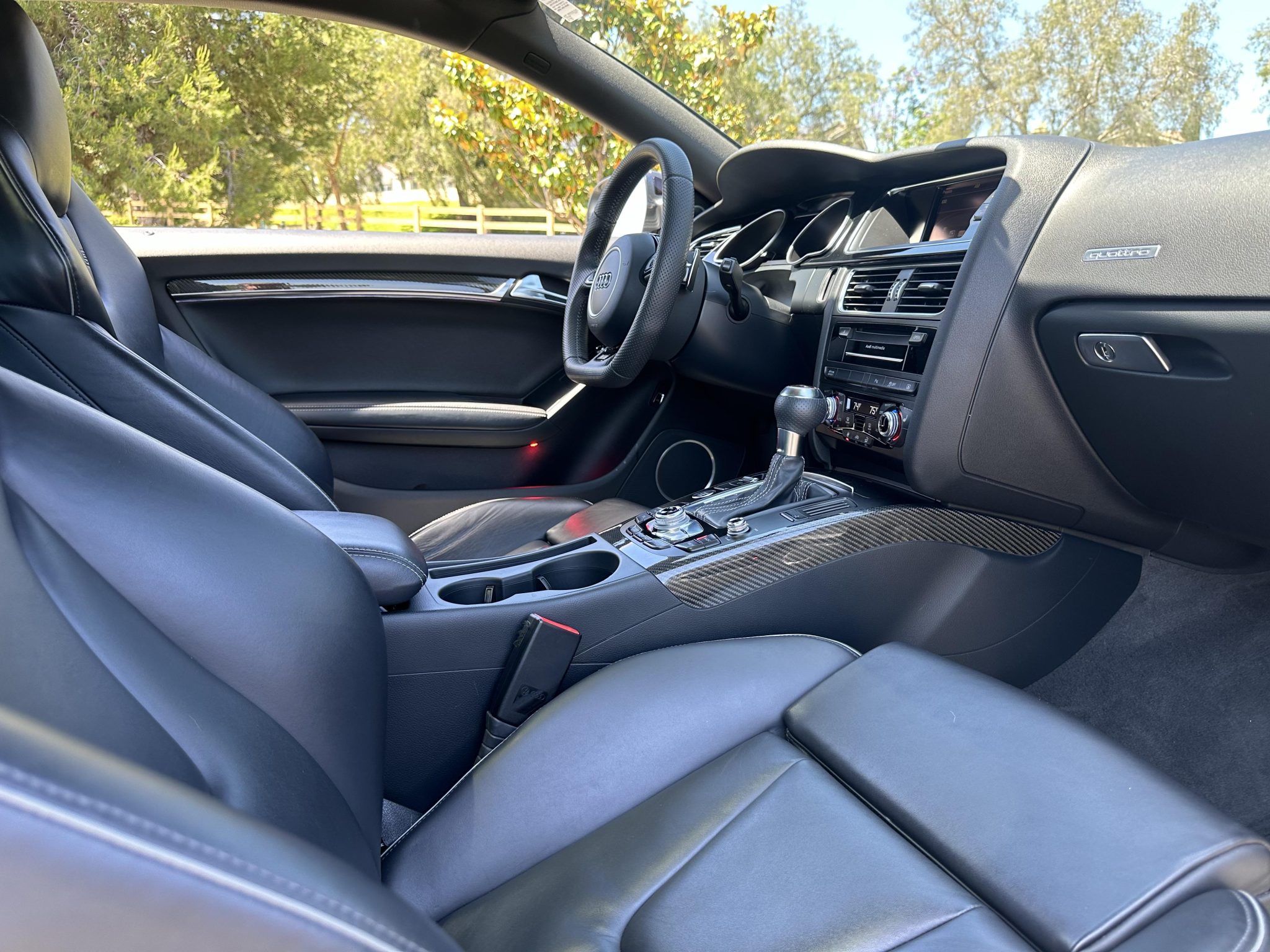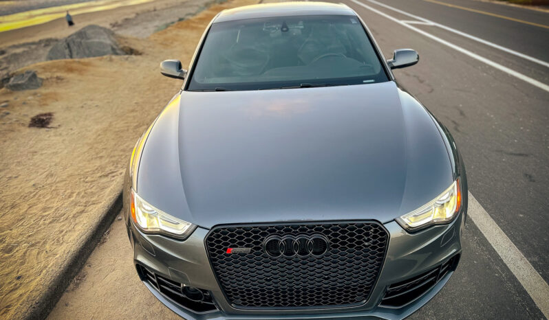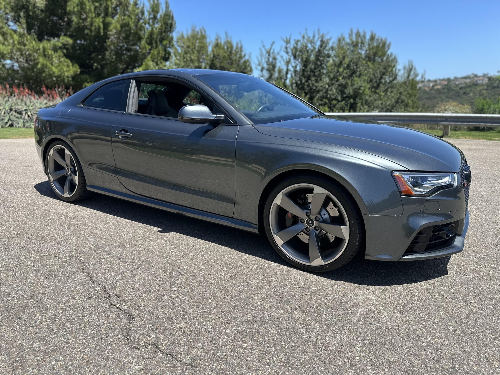 This 2013 Audi RS5 coupe is finished in Daytona Gray Pearl Effect over black Nappa leather and is powered by a 4.2-liter V8 that sends power to all four wheels through a seven-speed S tronic dual-clutch transaxle and Quattro all-wheel-drive with a sports rear differential. The car was optioned with the Audi MMI Navigation Plus, Driver Assist, and Titanium packages, and additional equipment includes a sport exhaust system, a glass sunroof, adaptive xenon headlights, parking sensors, 20″ five-arm rotor wheels, heated power-adjustable front seats, adaptive cruise control, and a Bang & Olufsen sound system.